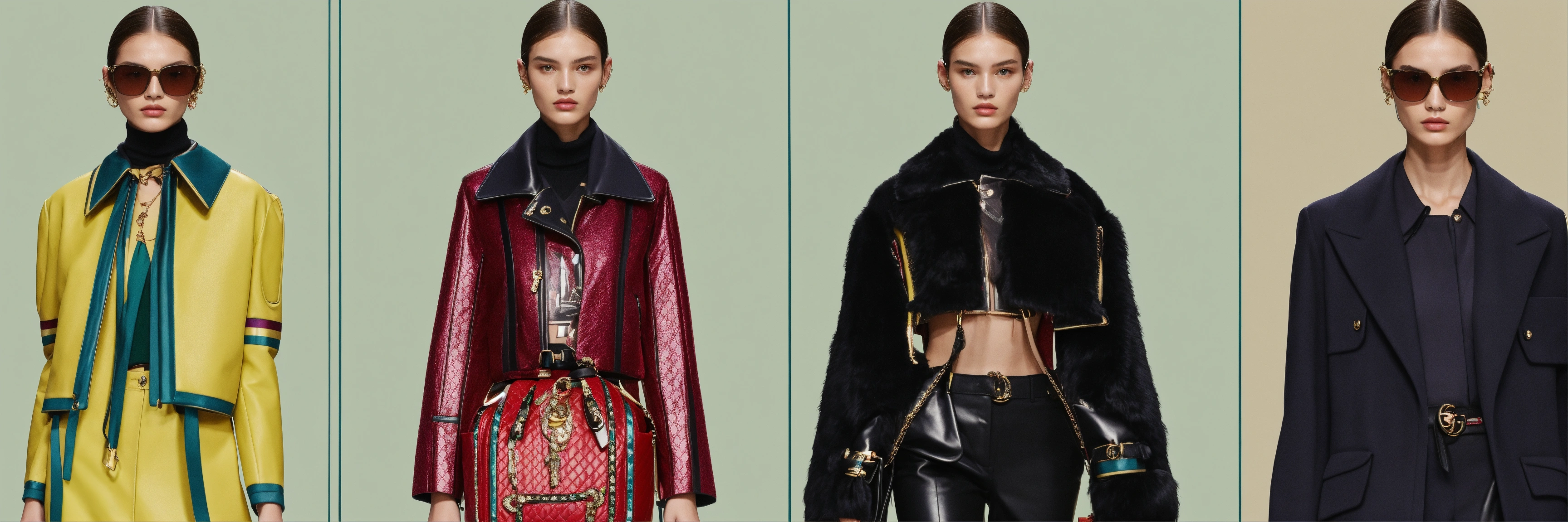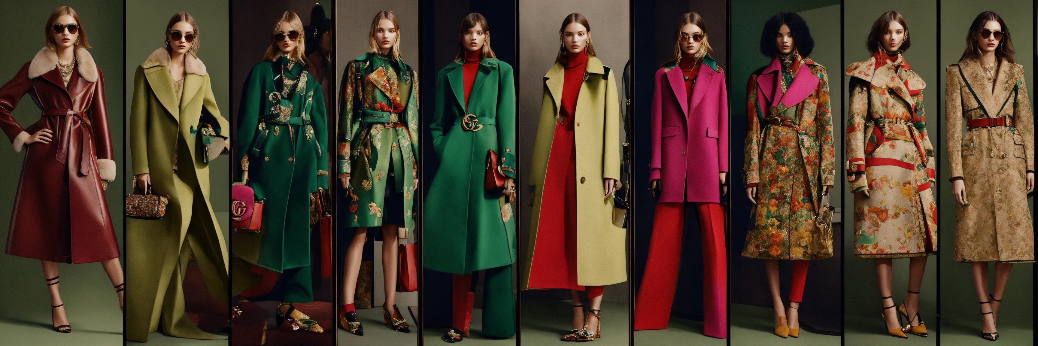 Create a new outerwear collection for women for 2024 based with handbags on the example of gucci