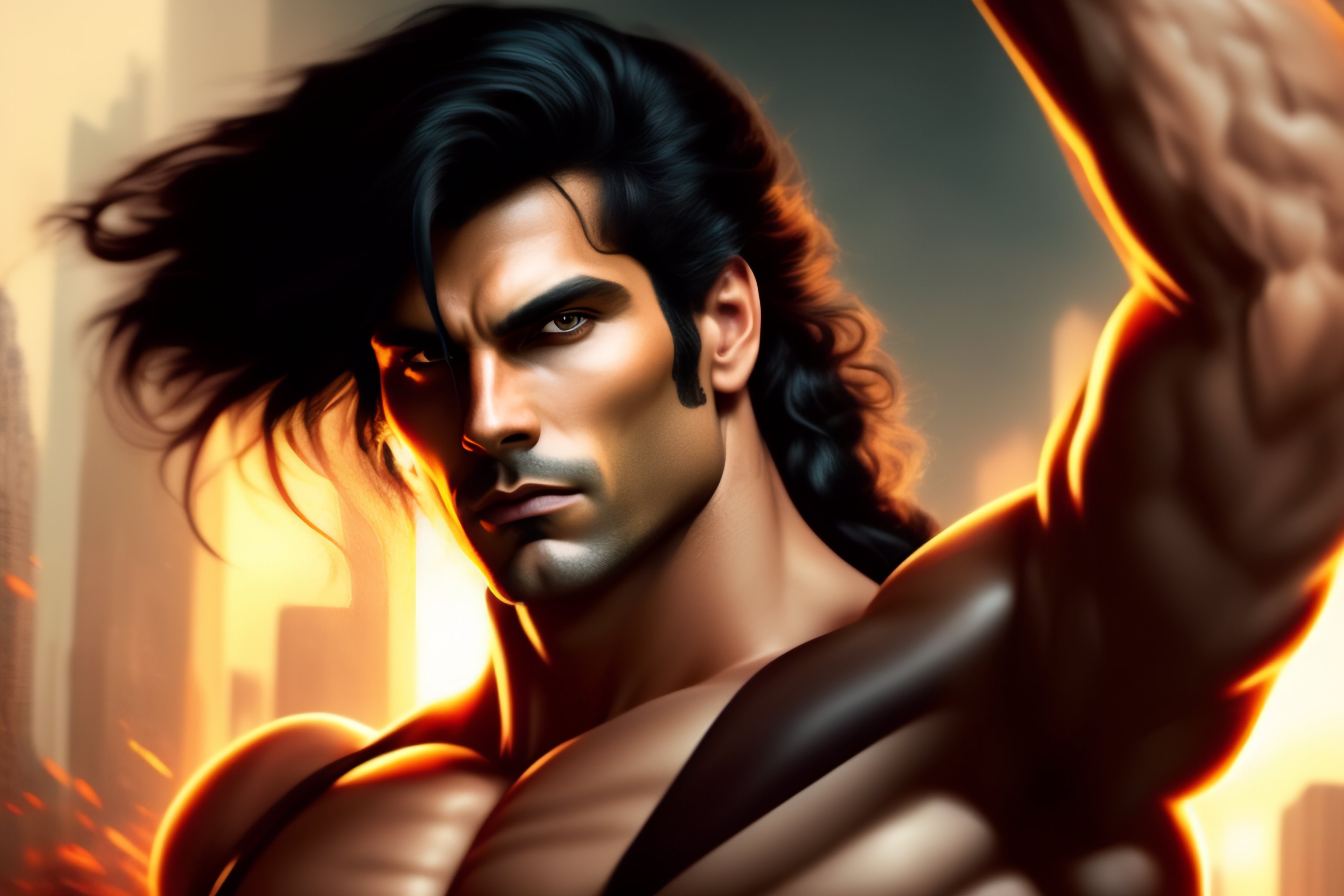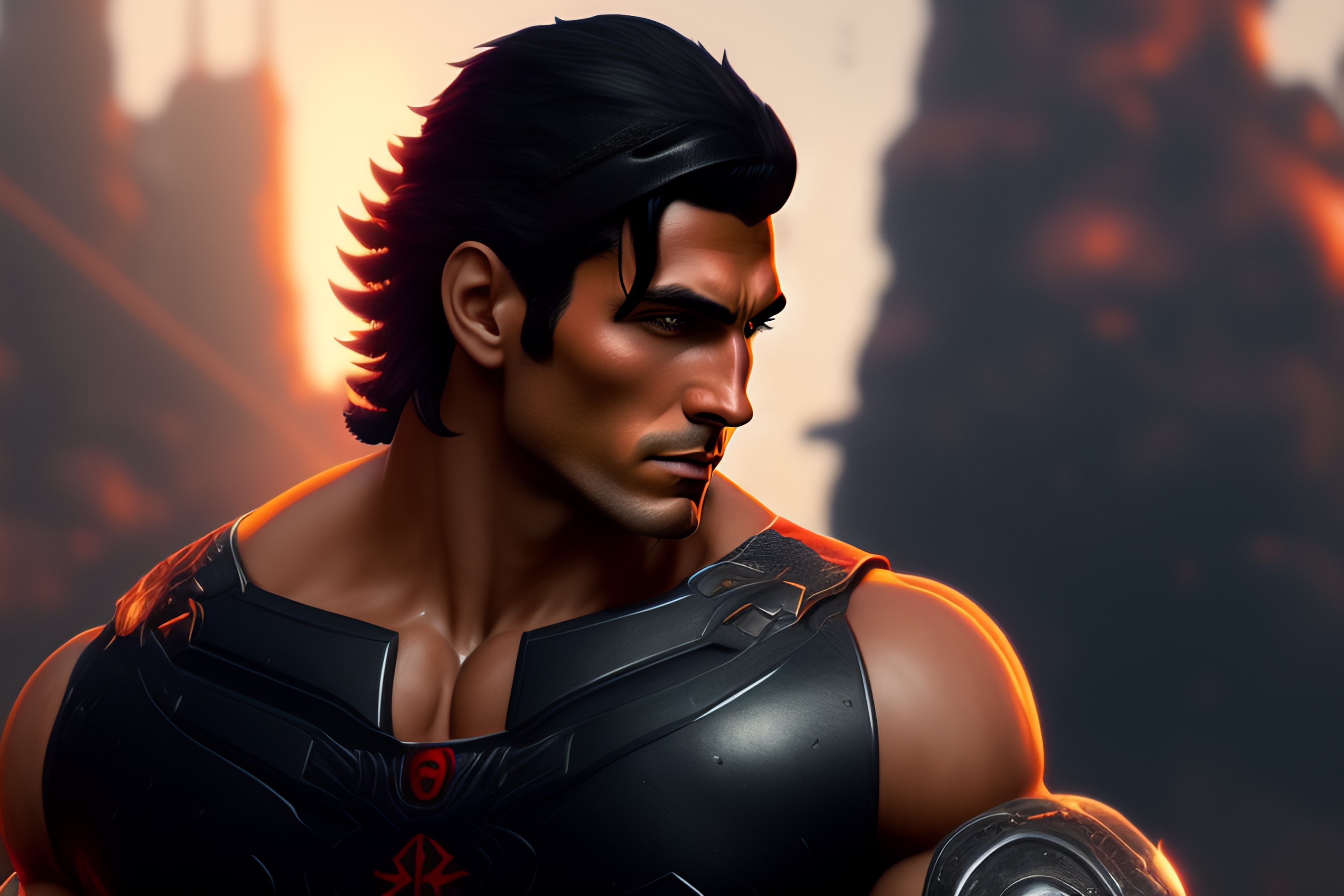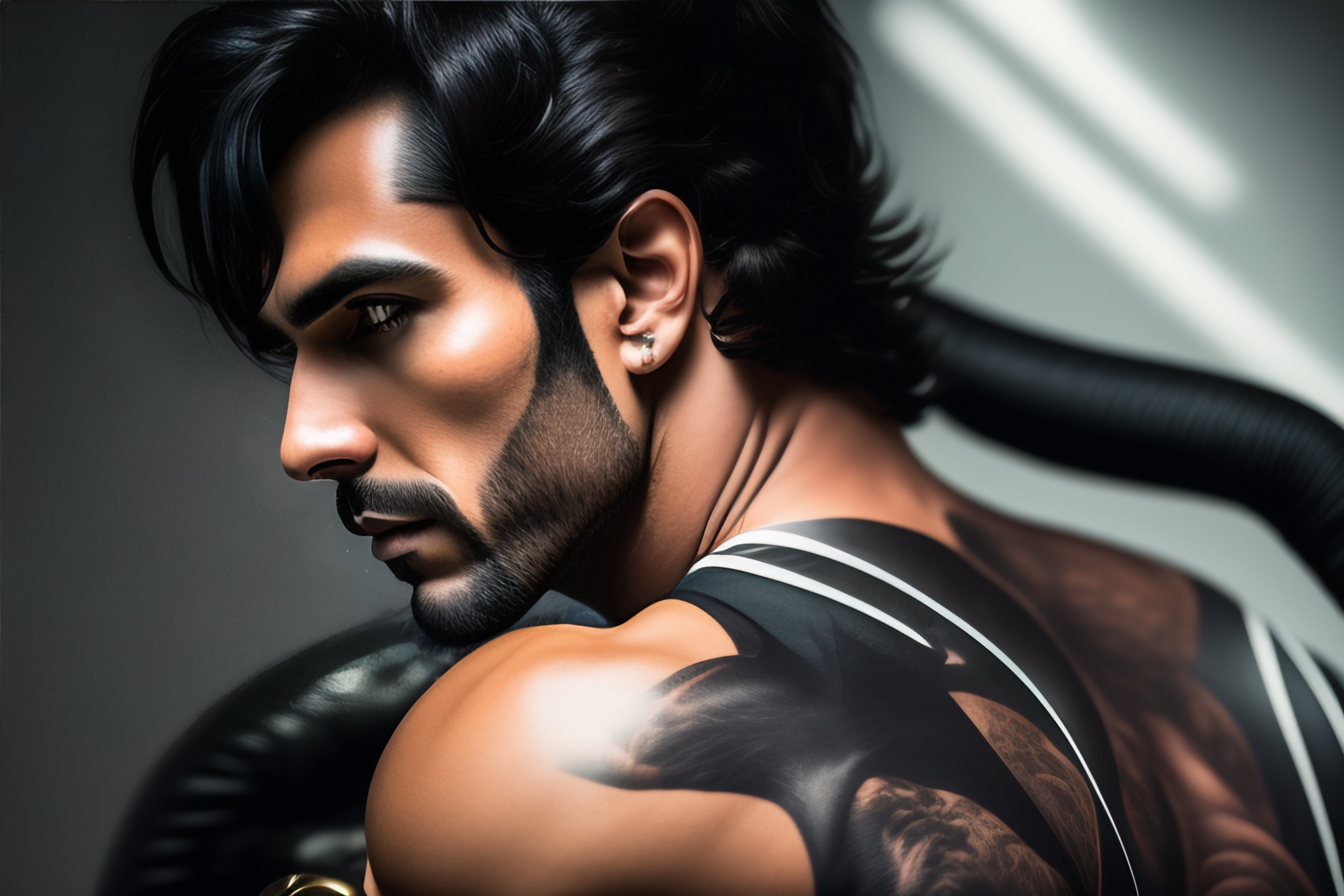 A dark haired man with an enormous mutated black arm with claws attached to him at the shoulder