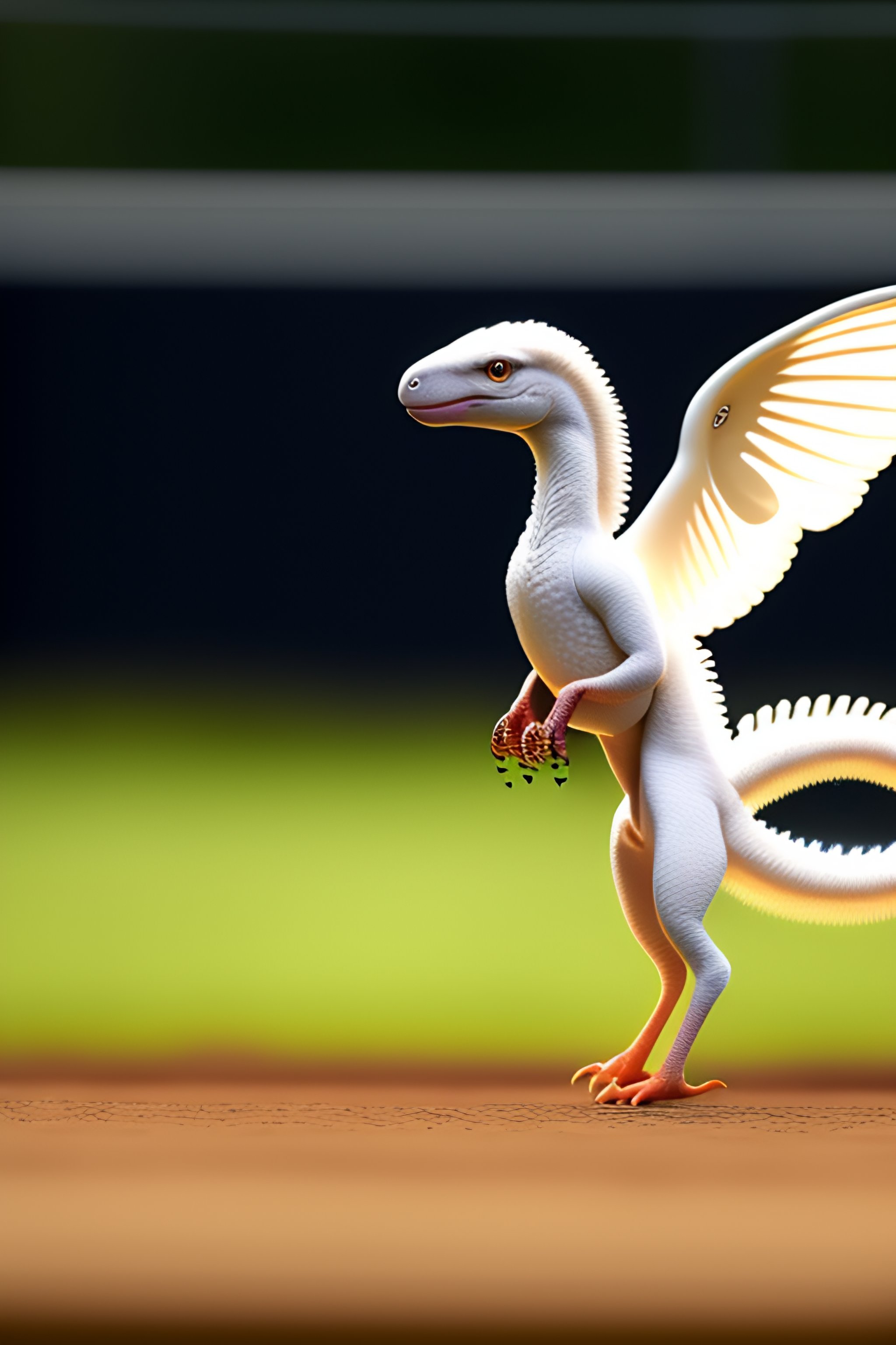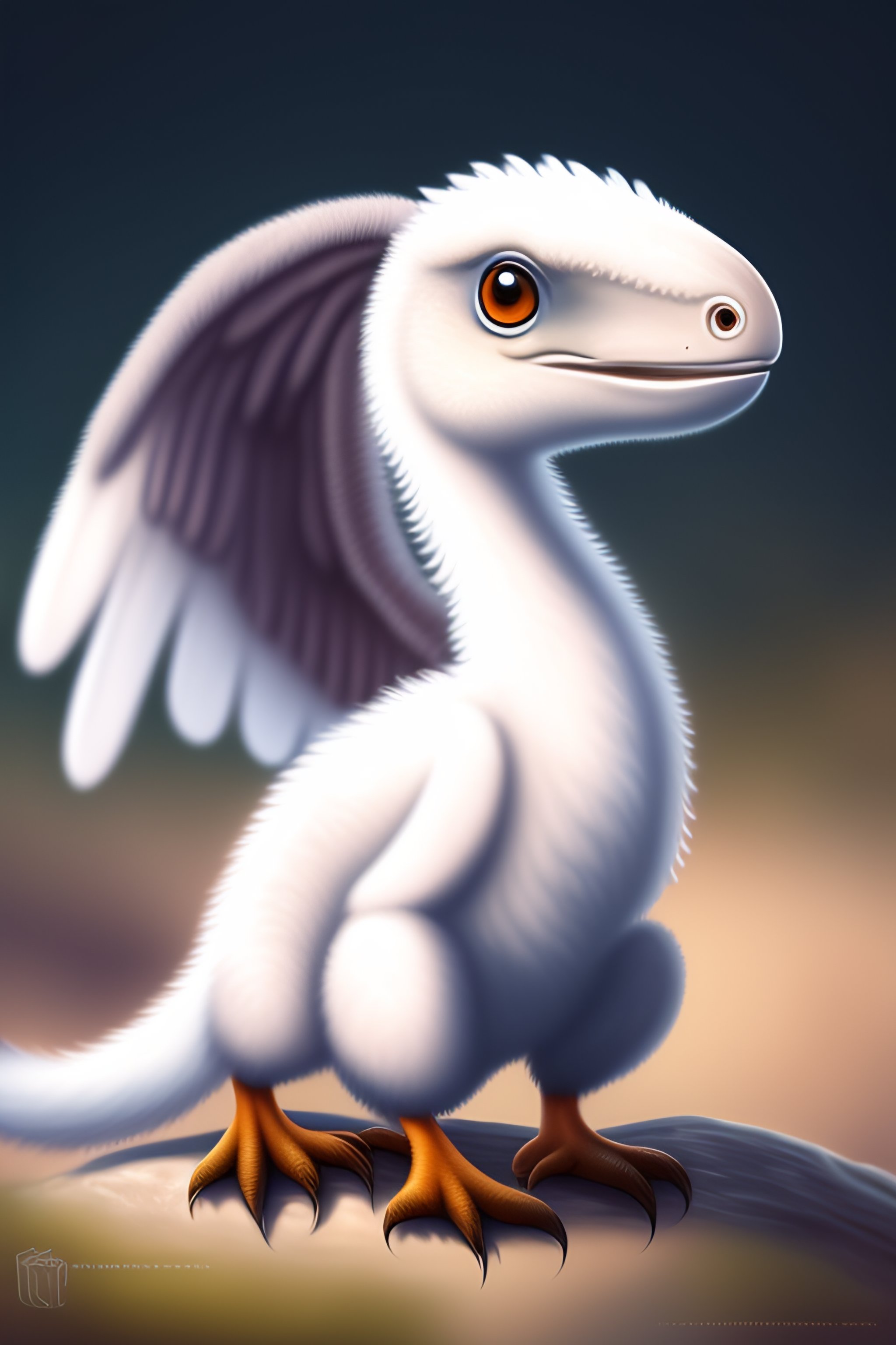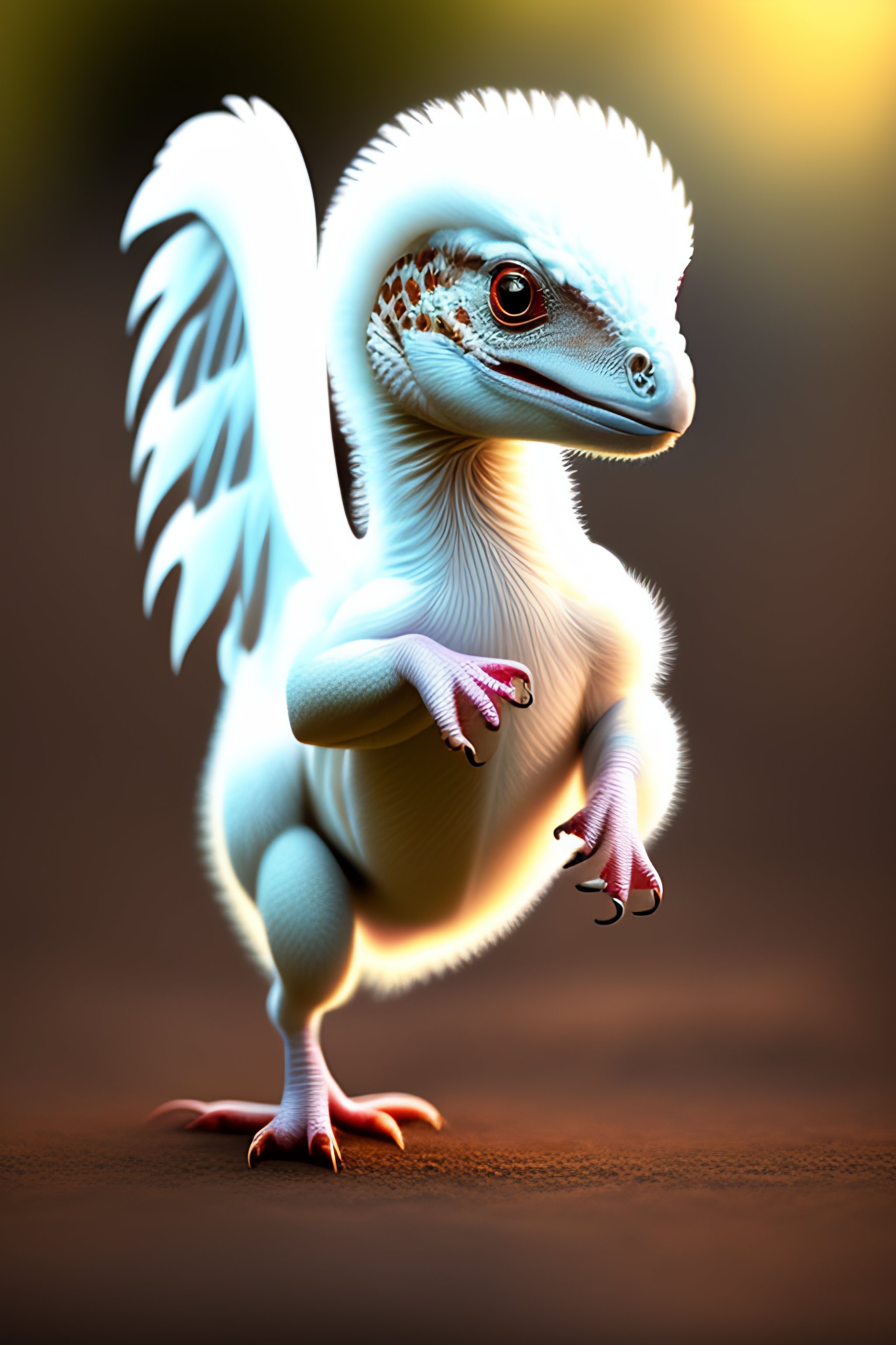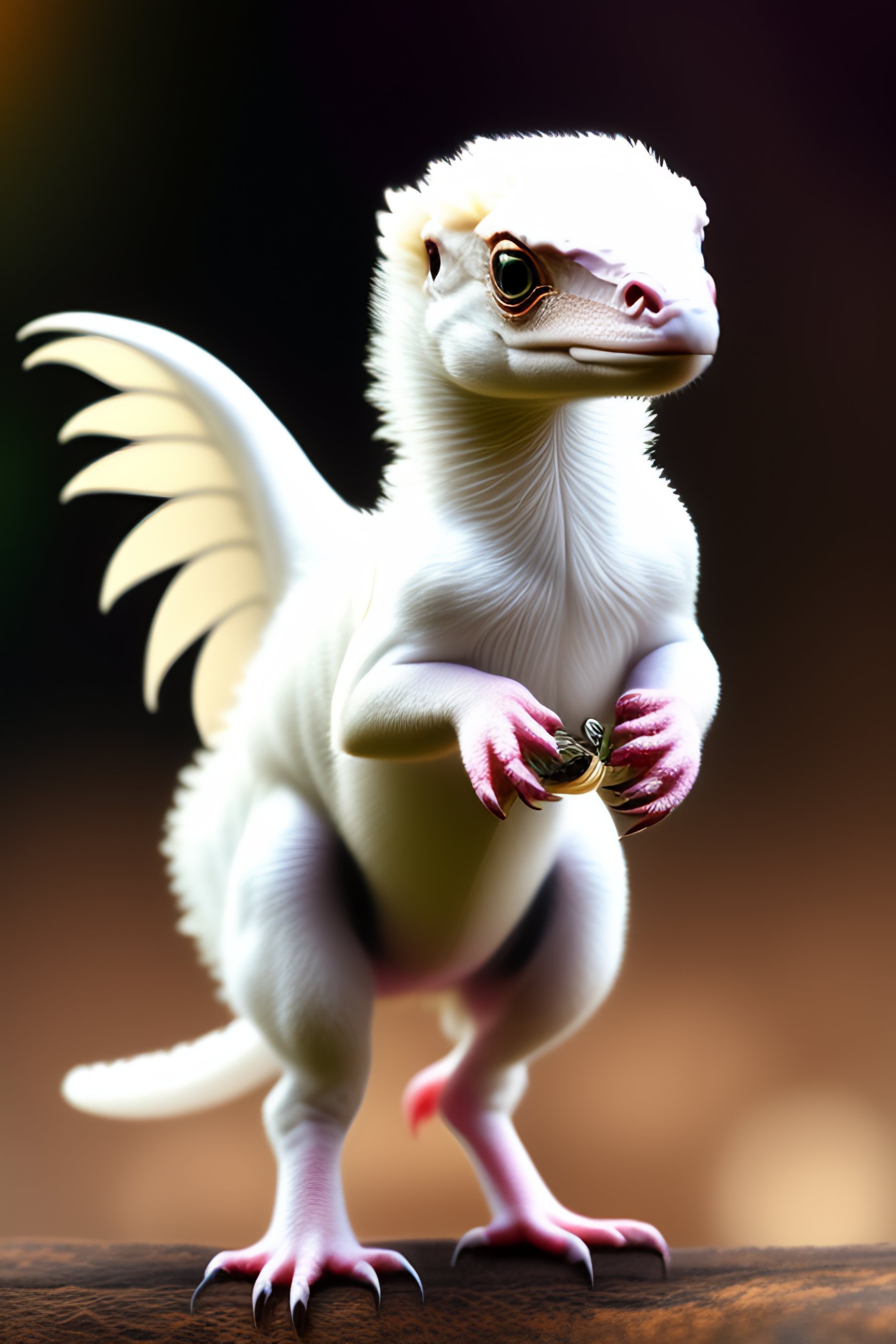 White baby velociraptor with wings and white fur