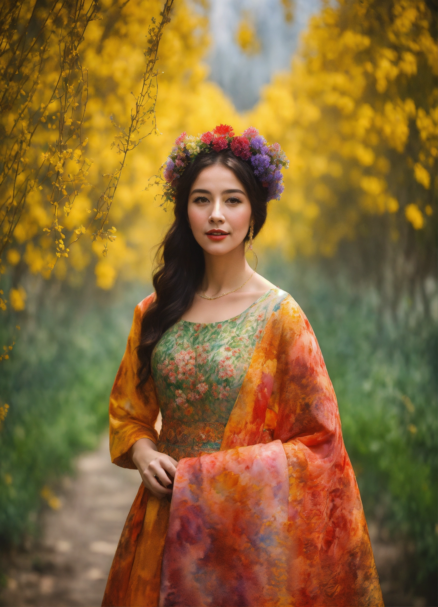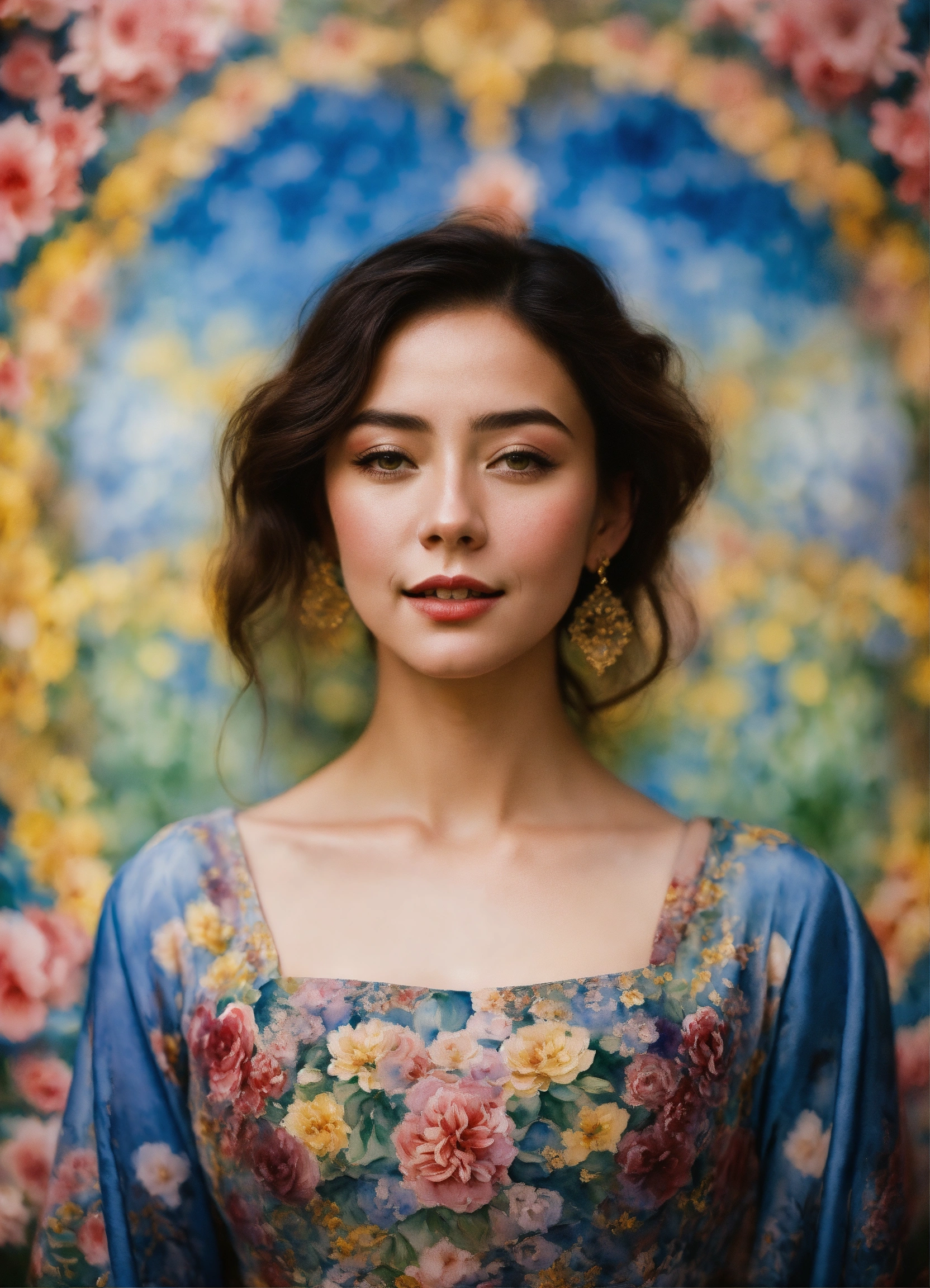 Real happiness, on a woman’s face, beautiful, intricate, in perfect symmetry, contrast, watercolor, and photography by claude monet, backdrops perfectly paired a cinematic photograph.