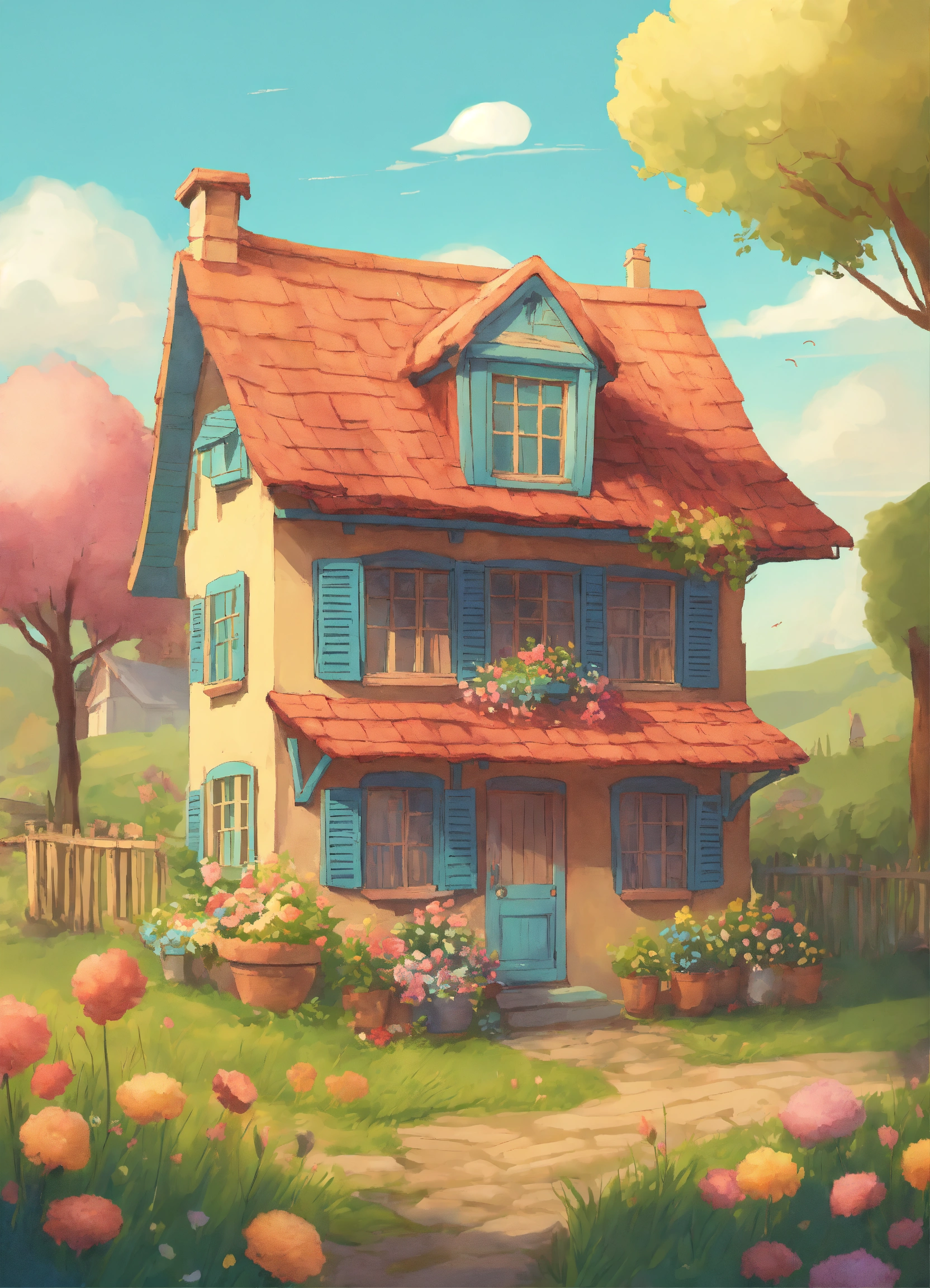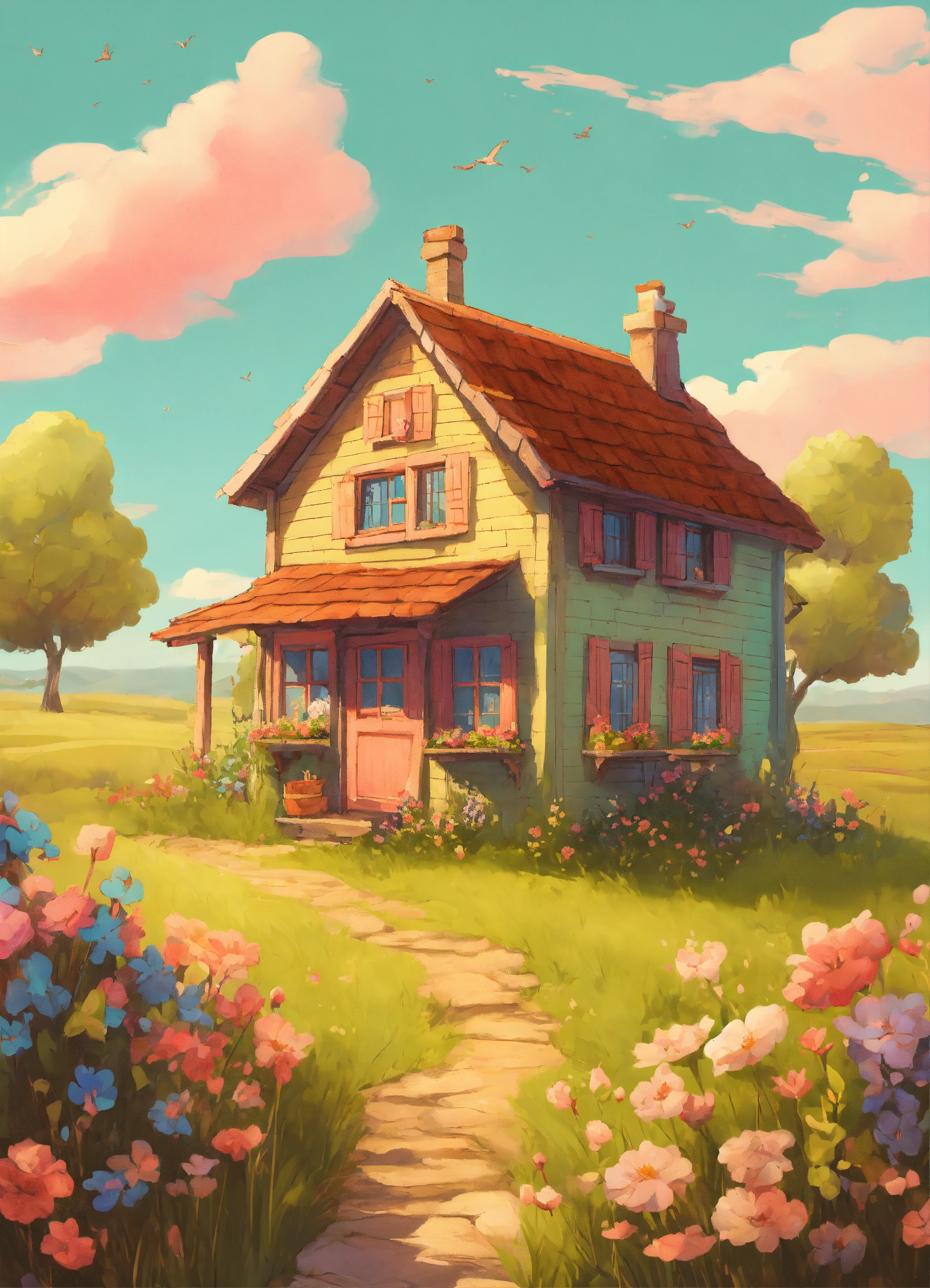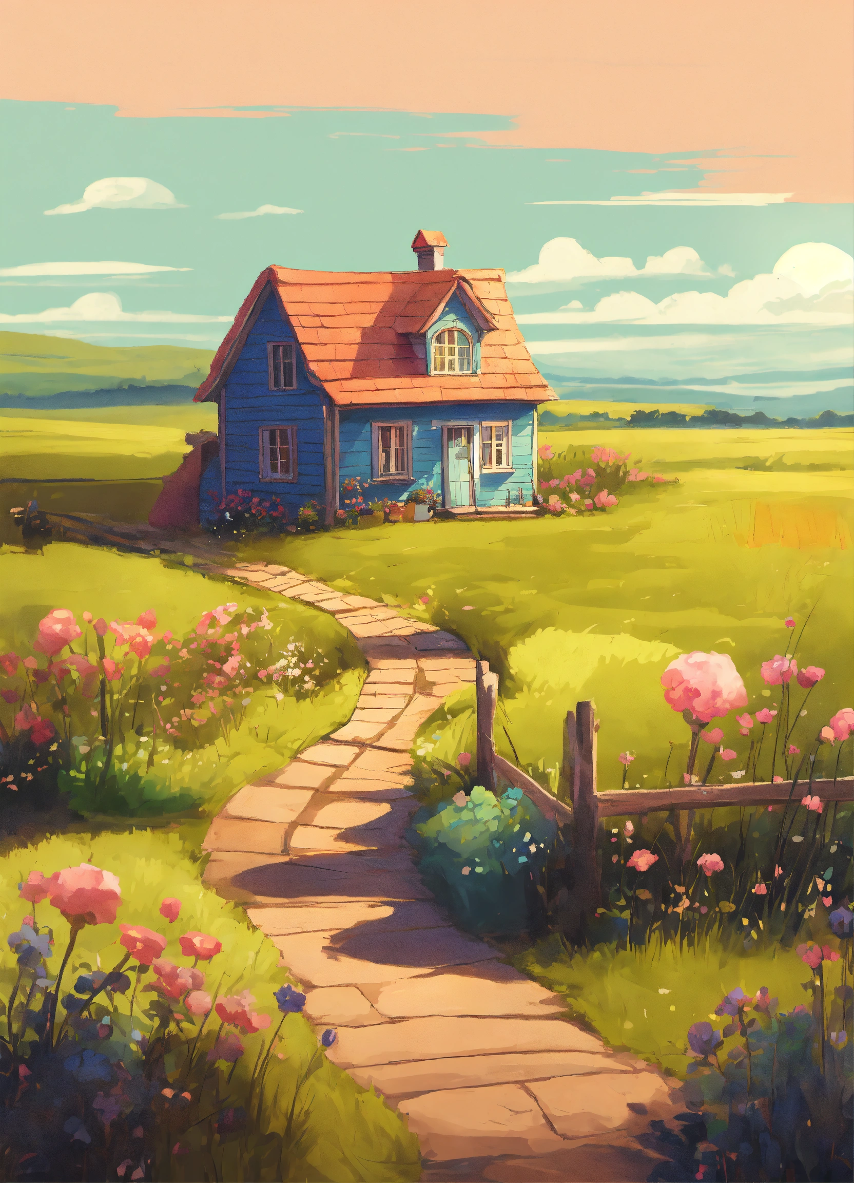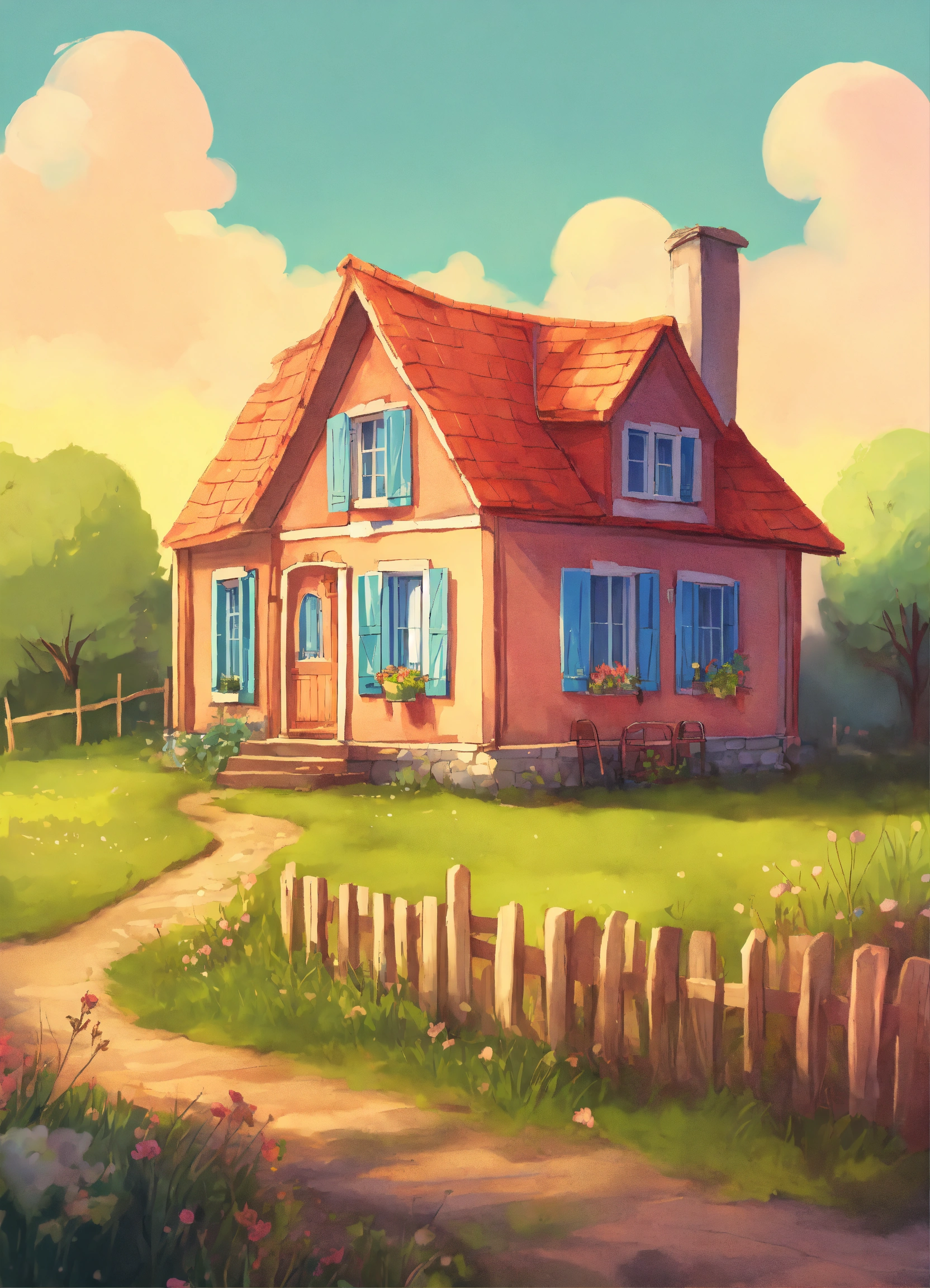 La petite maison dans la prairie style cartoon style vieille photo avec des couleurs pastel