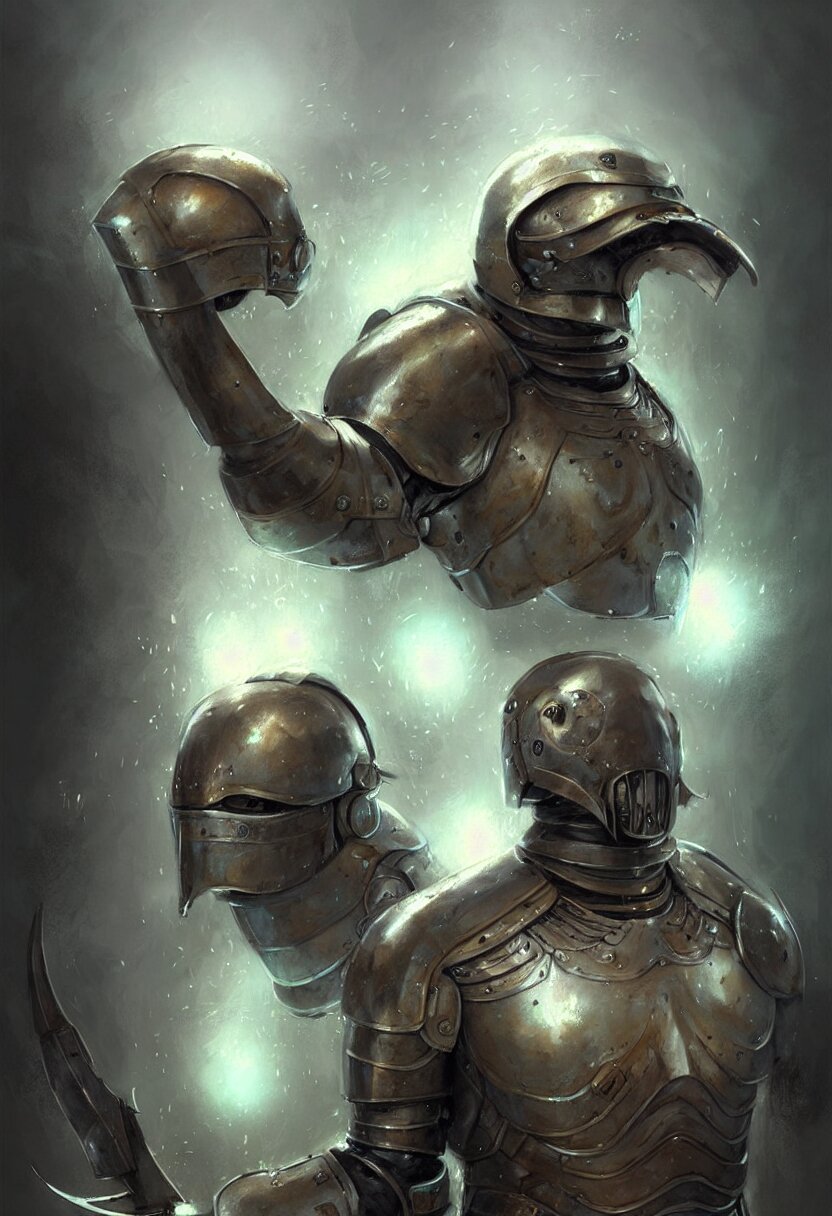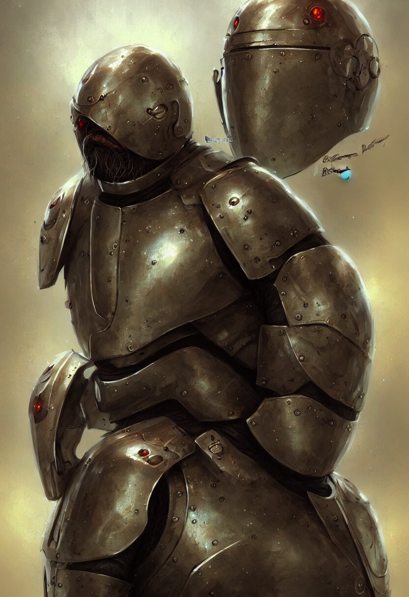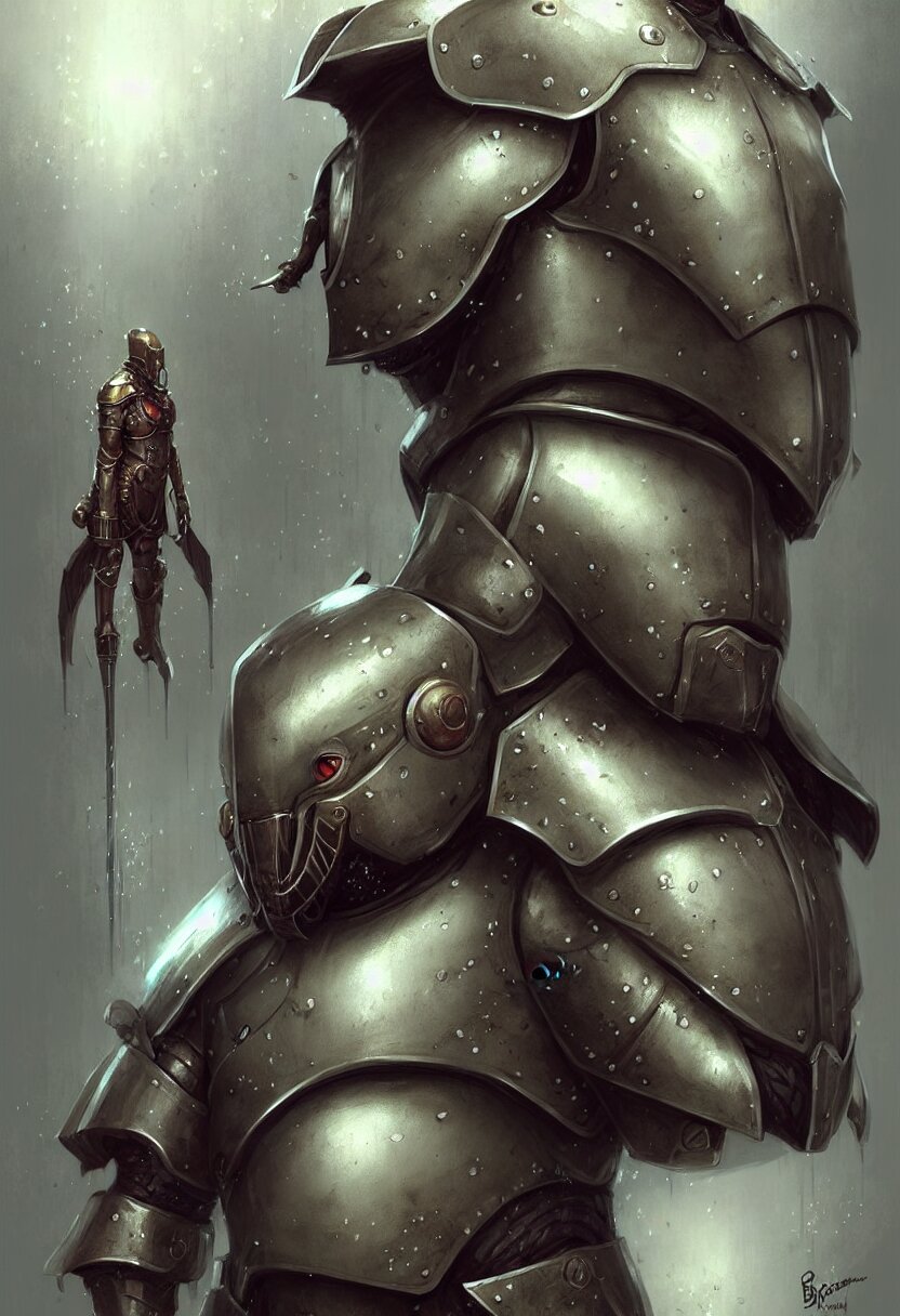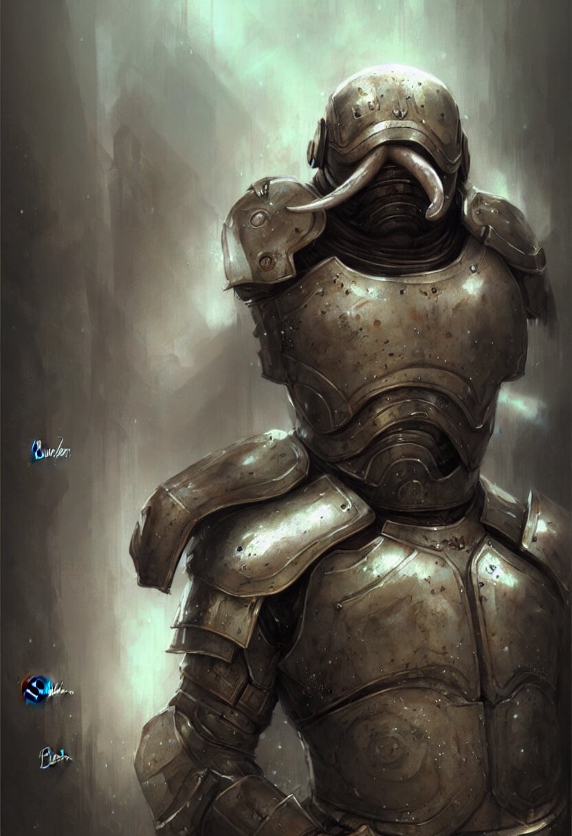 Concept art portrait illustration of a walrus in a suit of armour by bastien lecouffe deharme and greg staples