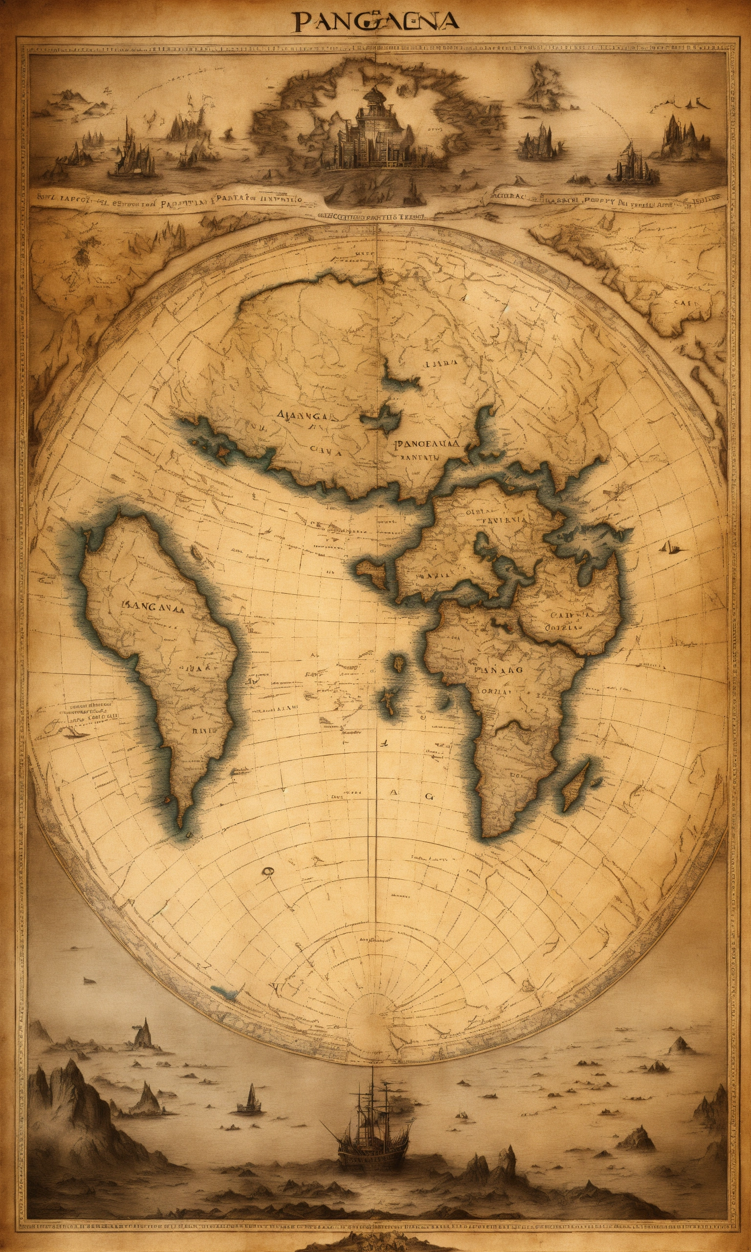 An old map of pangea continent