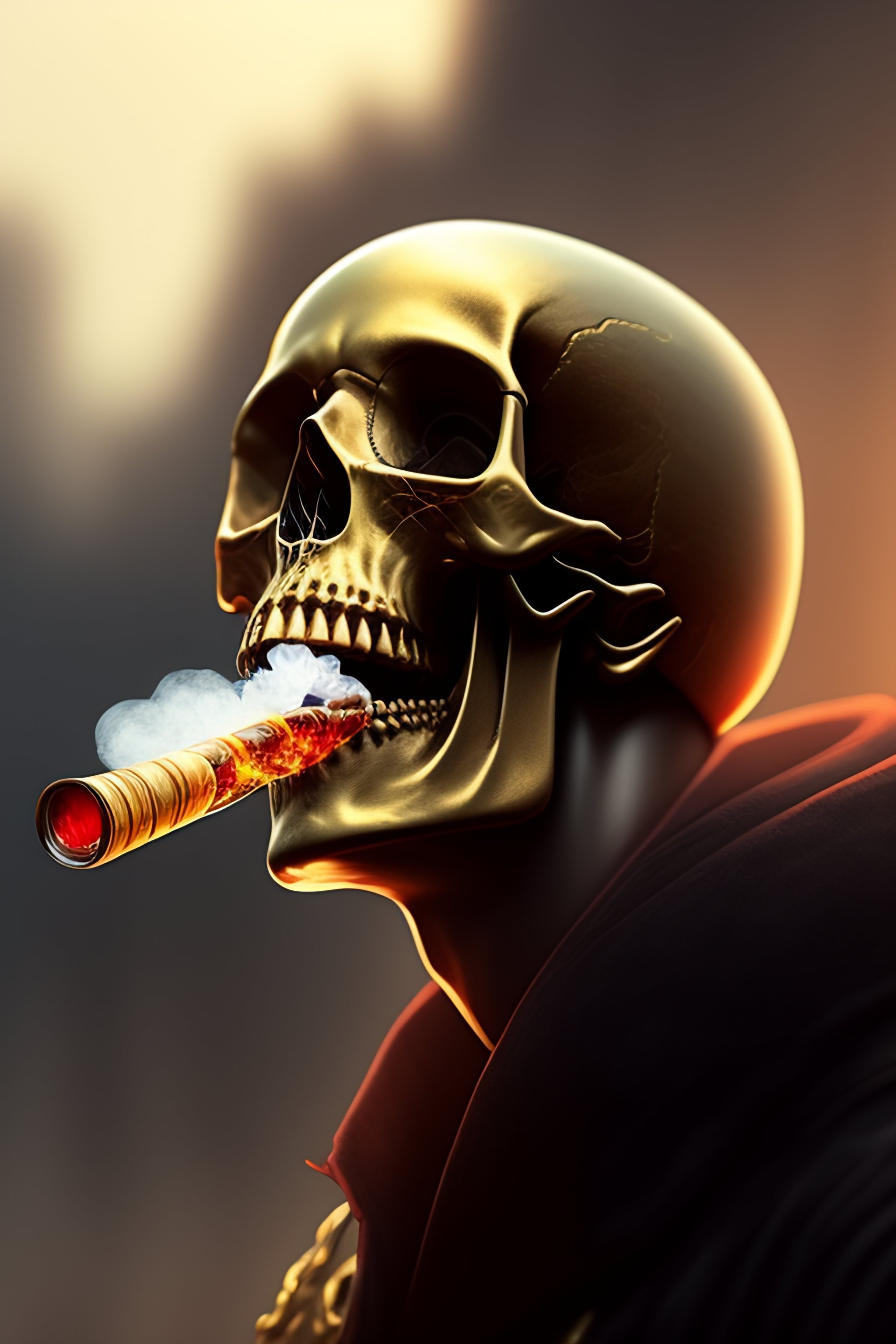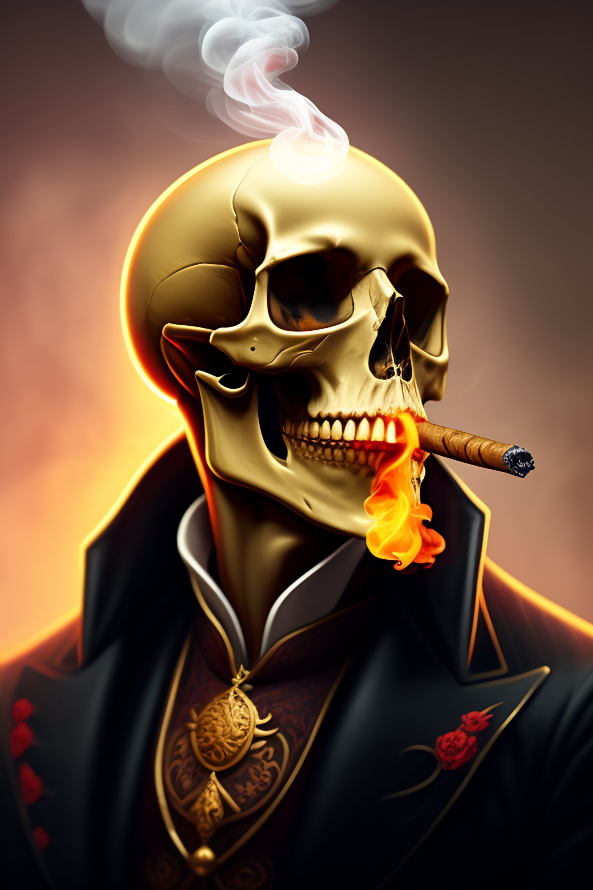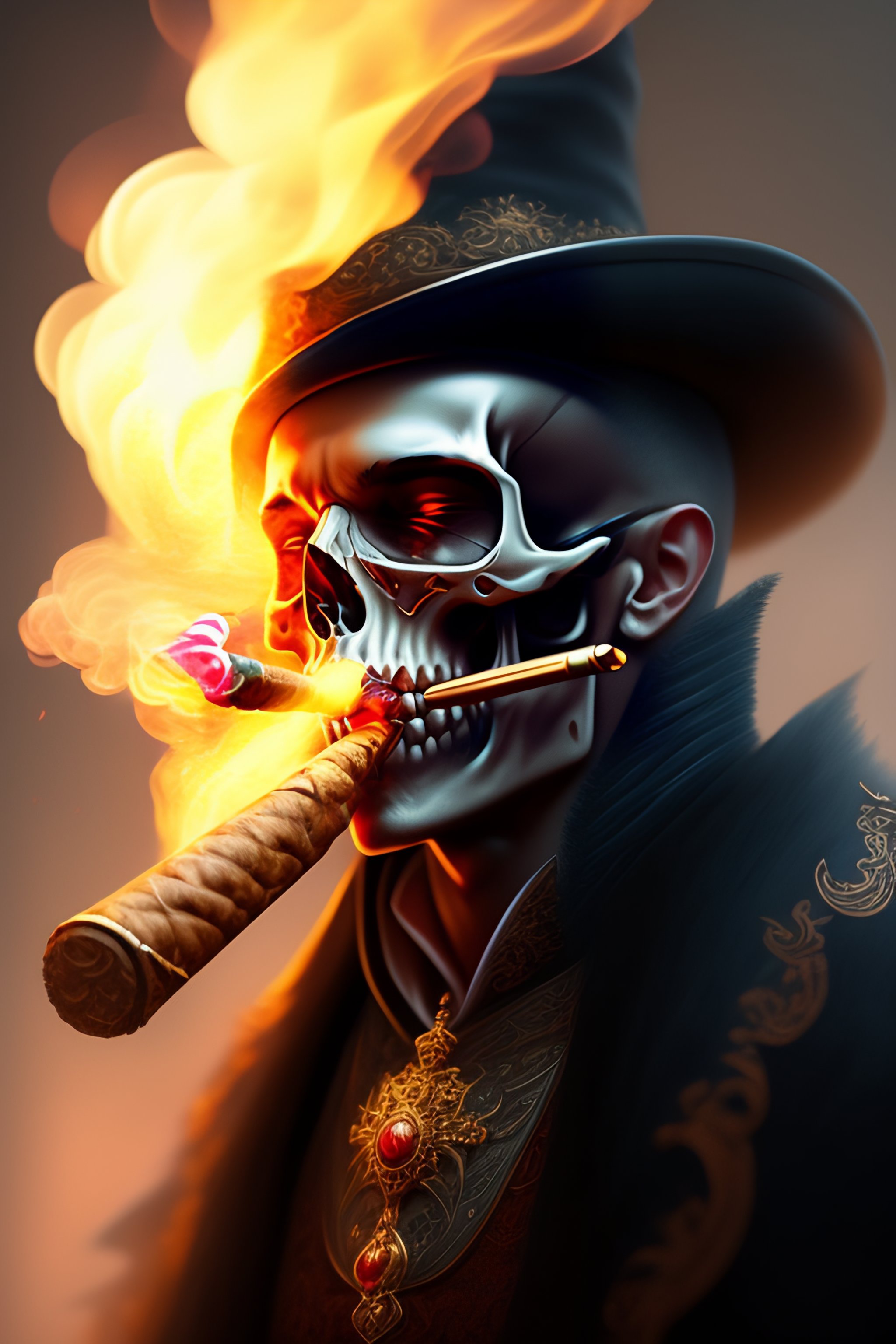 A skull smoking a cigar, fantasy, intricate, elegant, highly detailed, digital painting, artstation, concept art, smooth, sharp focus, illustration, art by ilja repin
