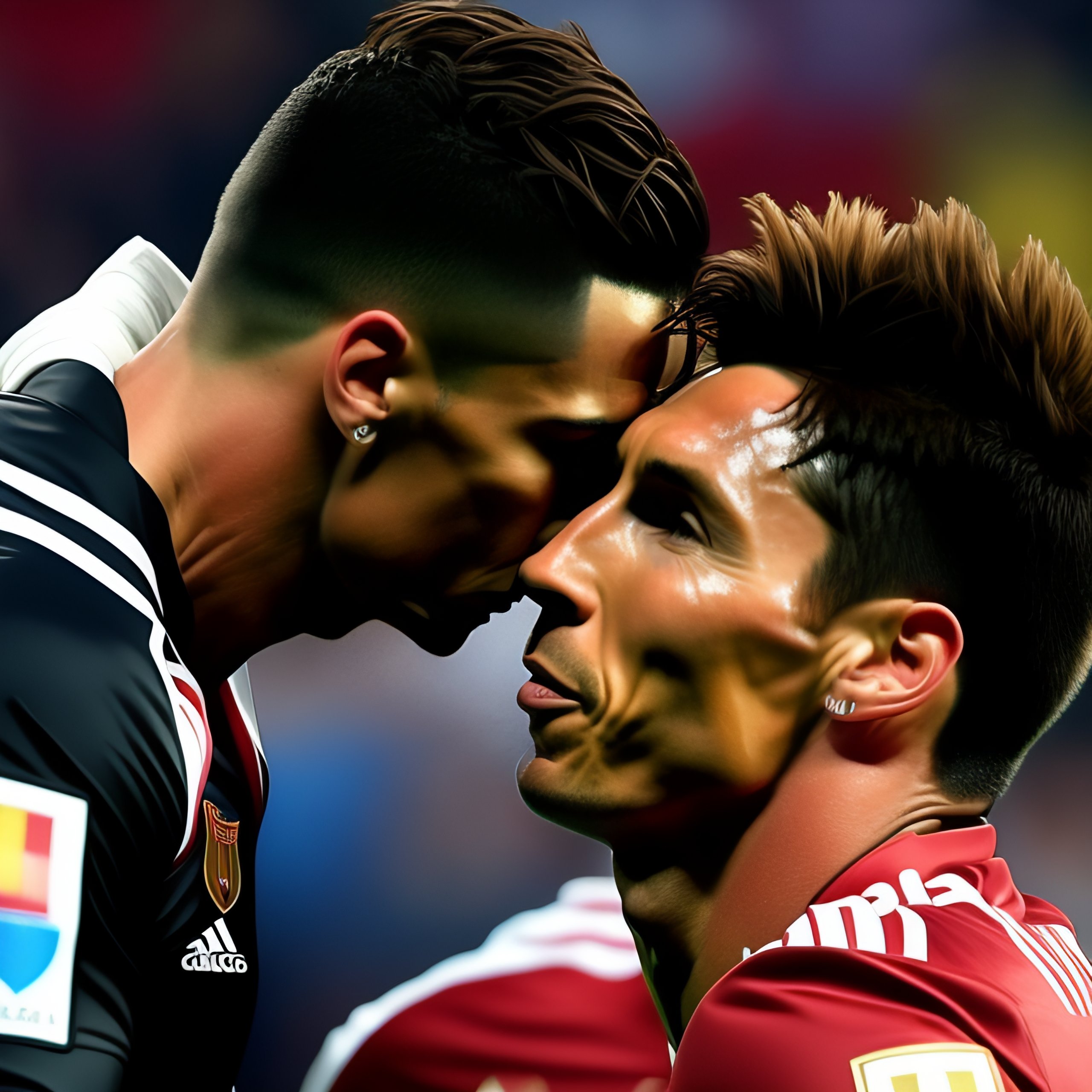 Cristiano ronaldo kissing lionel messi