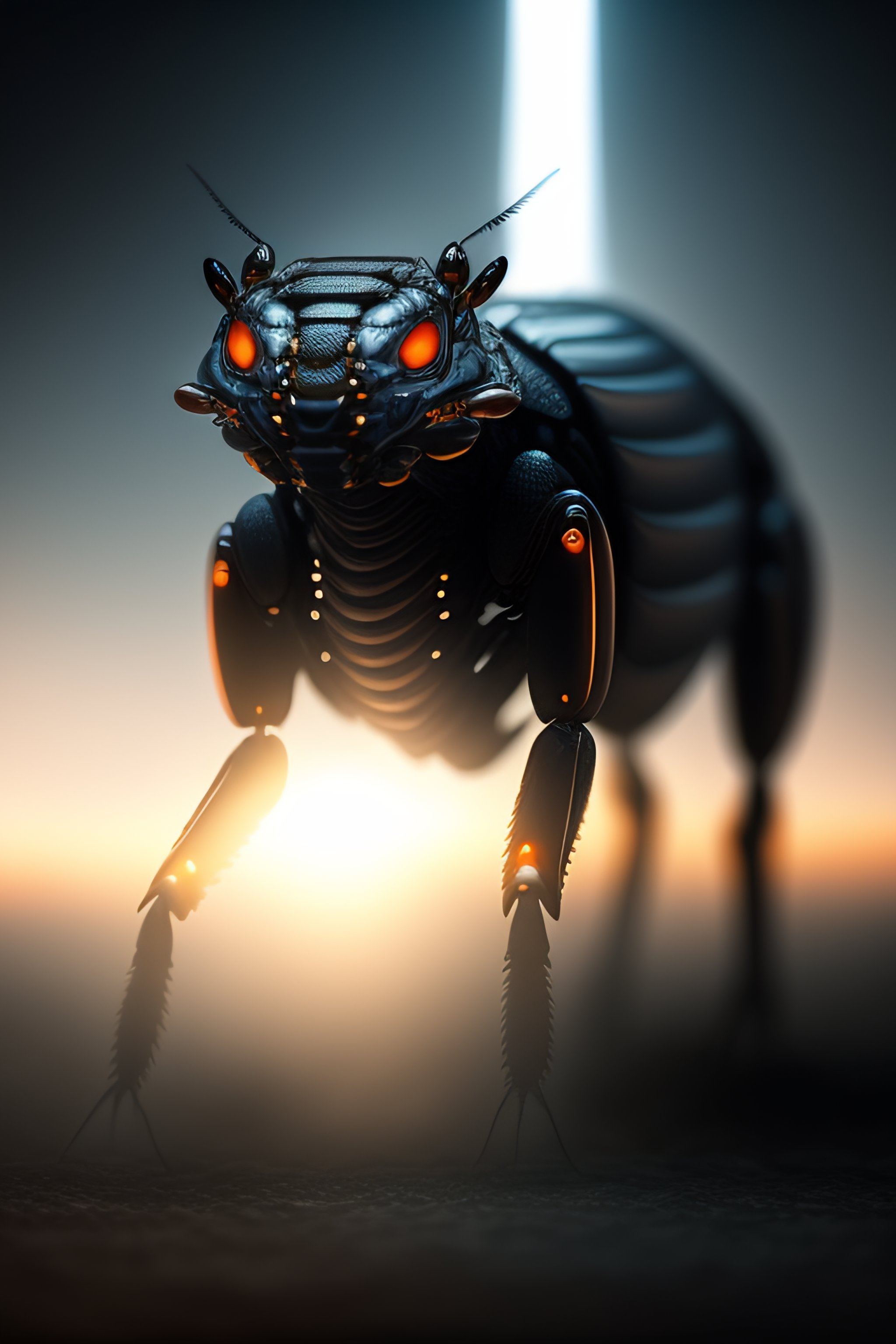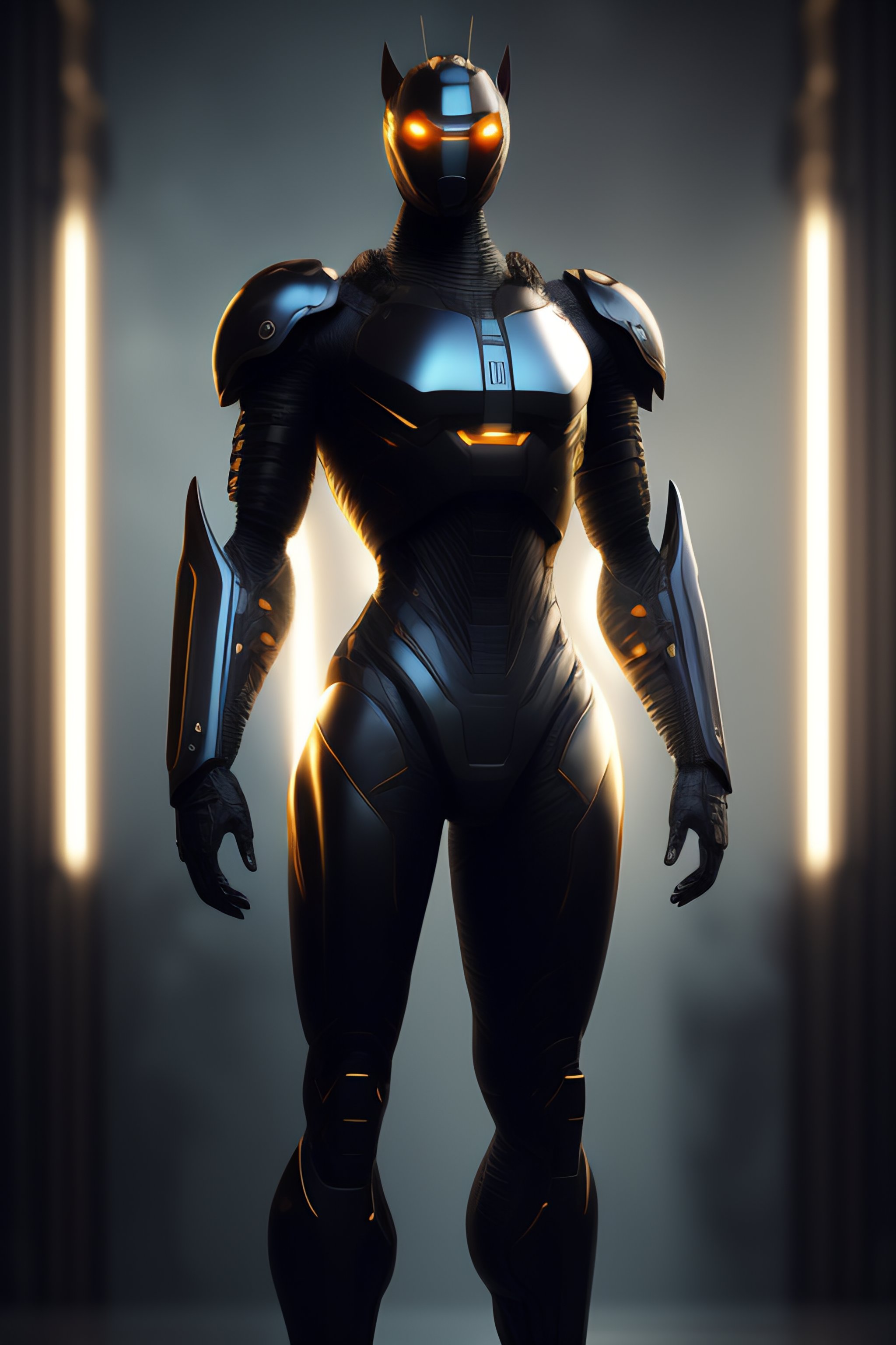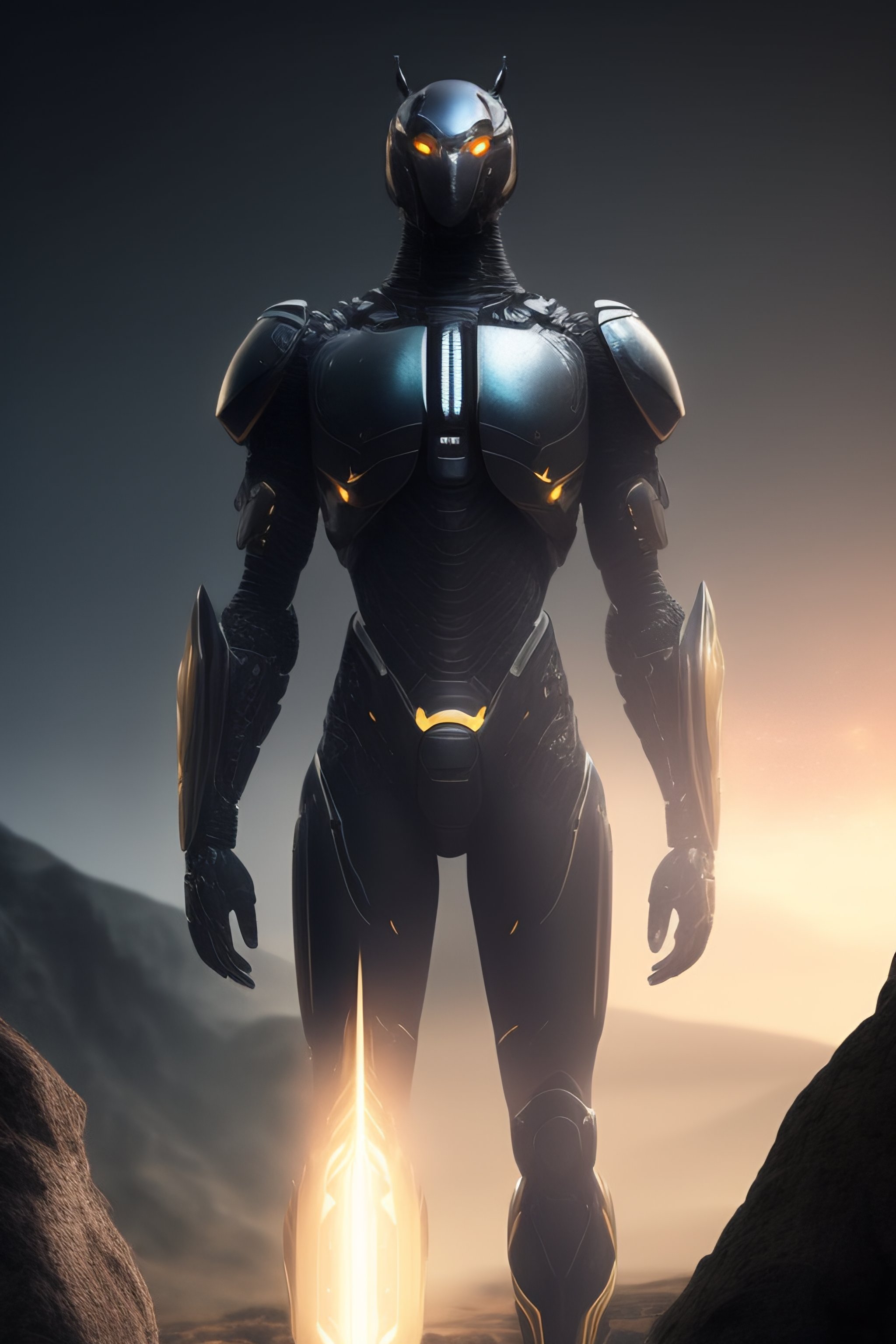 Humanoid with 4 arms, grey skin, black eyes, insect like features, and a lean body. using light energy