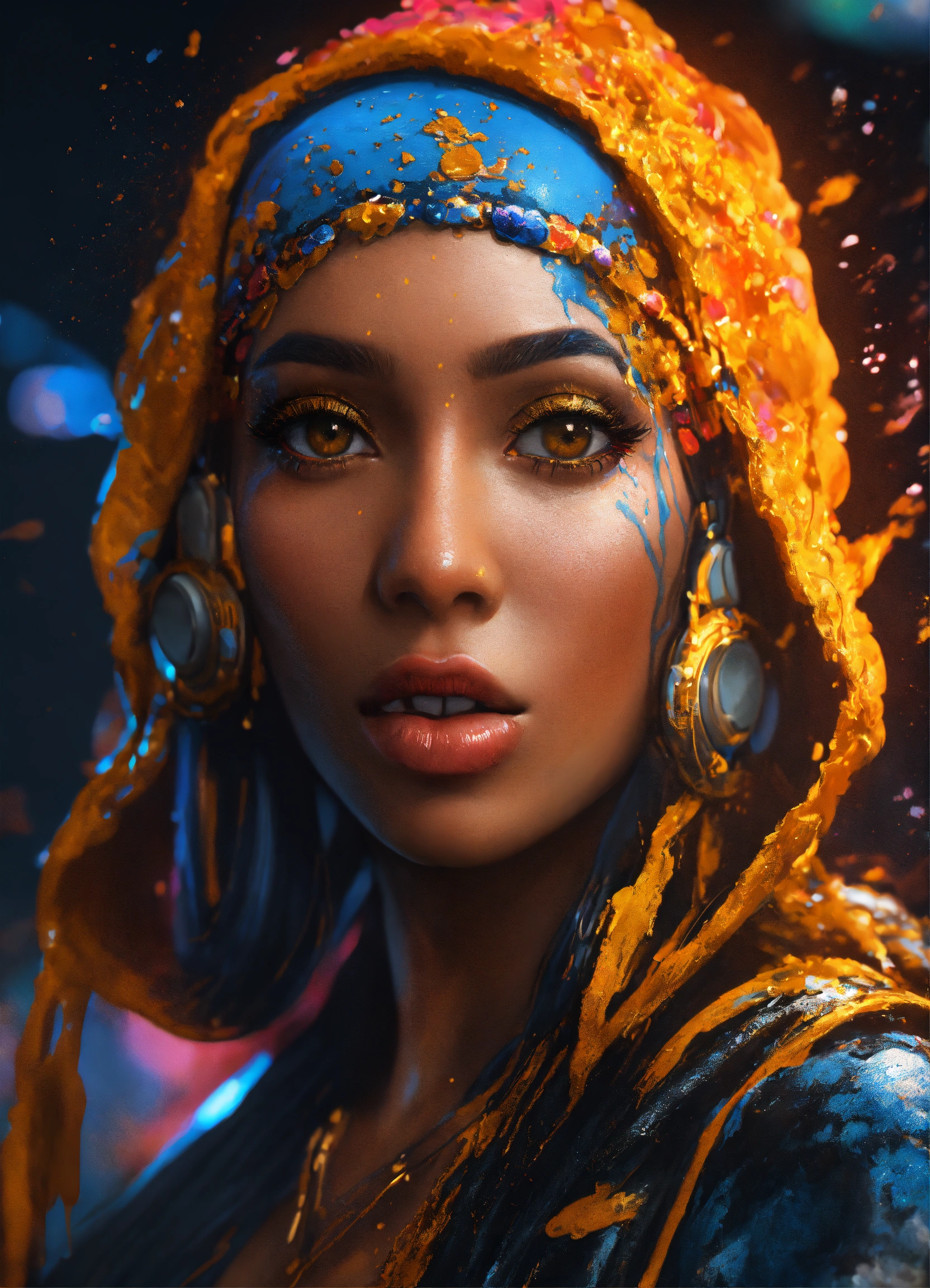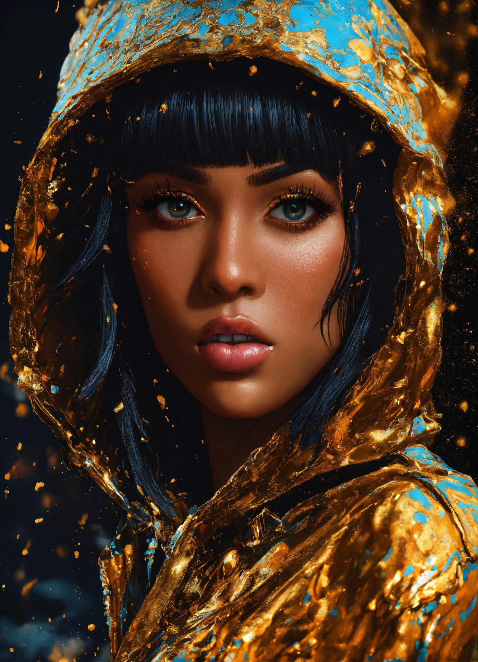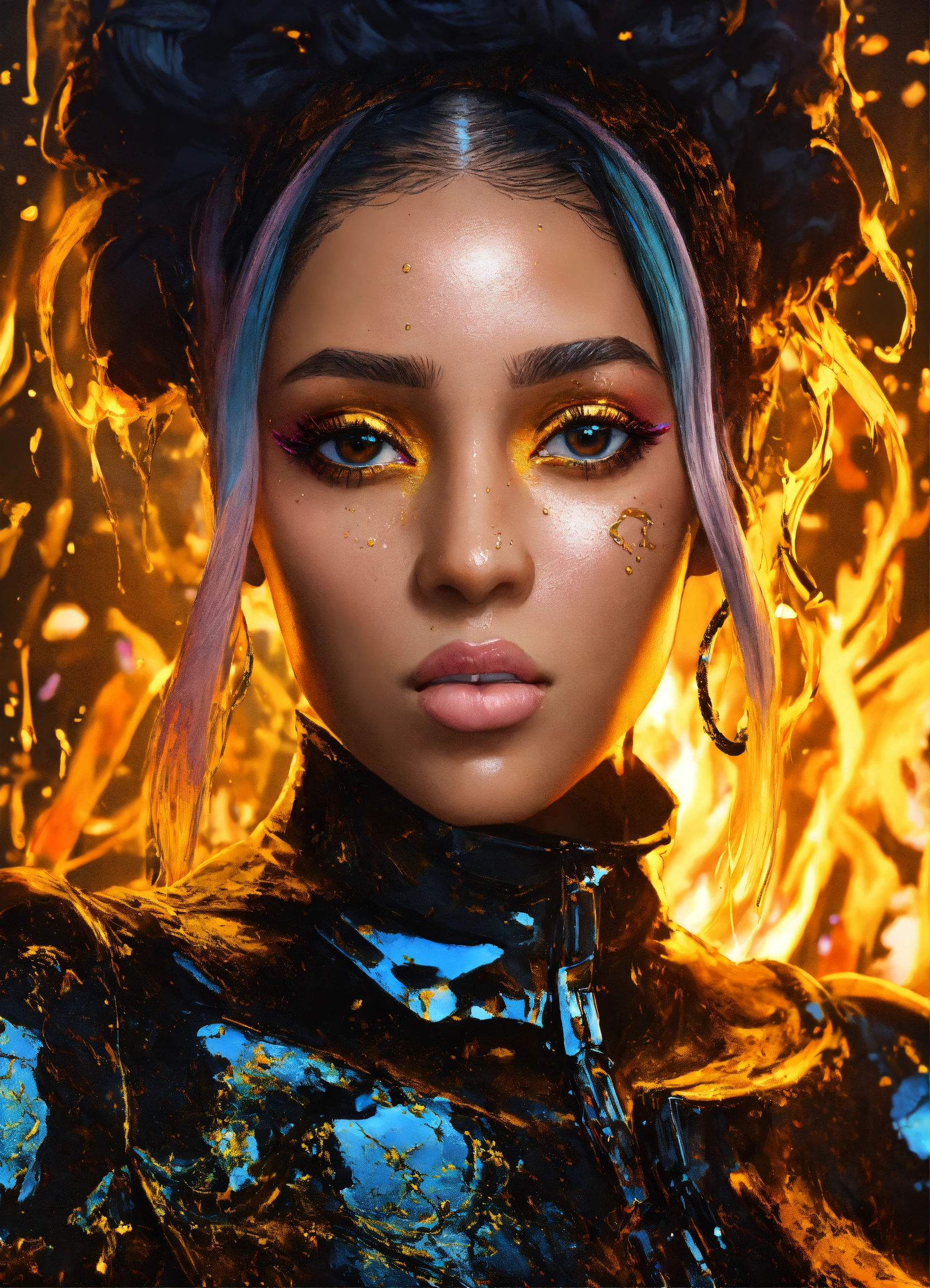 Cardi b hyperdetailed eyes, tee-shirt design, line art, black background, ultra detailed artistic, detailed gorgeous face, natural skin, water splash, colour splash art, fire and ice, splatter, black ink, liquid melting, dreamy, glowing, glamour, glimmer, shadows, oil on canvas, brush strokes, smooth, ultra high definition, 8k, unreal engine 5, ultra sharp focus, intricate artwork masterpiece, ominous, golden ratio, highly detailed, vibrant, production cinematic character render, ultra high quality model