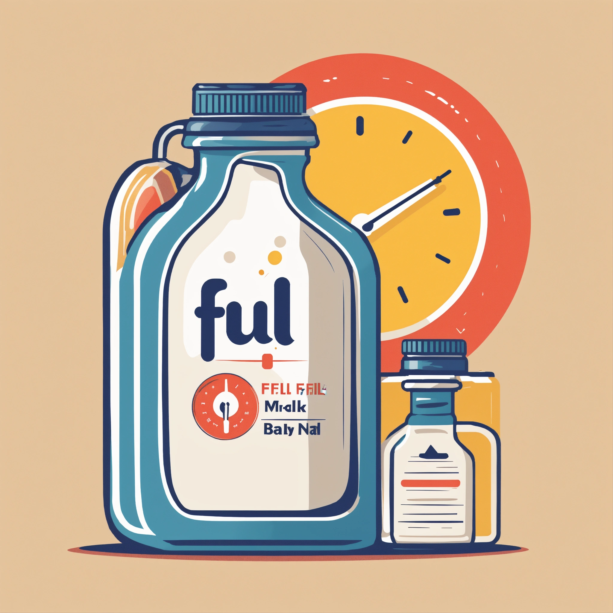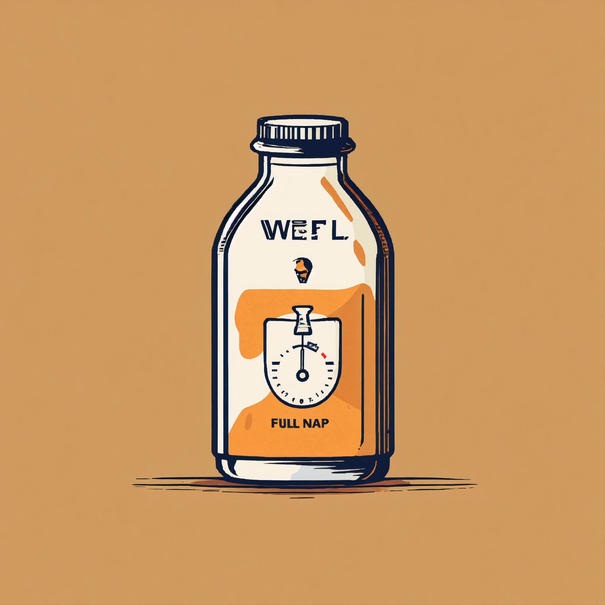 T-shirt vector illustration, centered design of a minimalist milk bottle with a fuel gauge reading "full", capturing the essence of a well-fed baby ready for a nap. simplistic, centered vector illustration, solid background color.