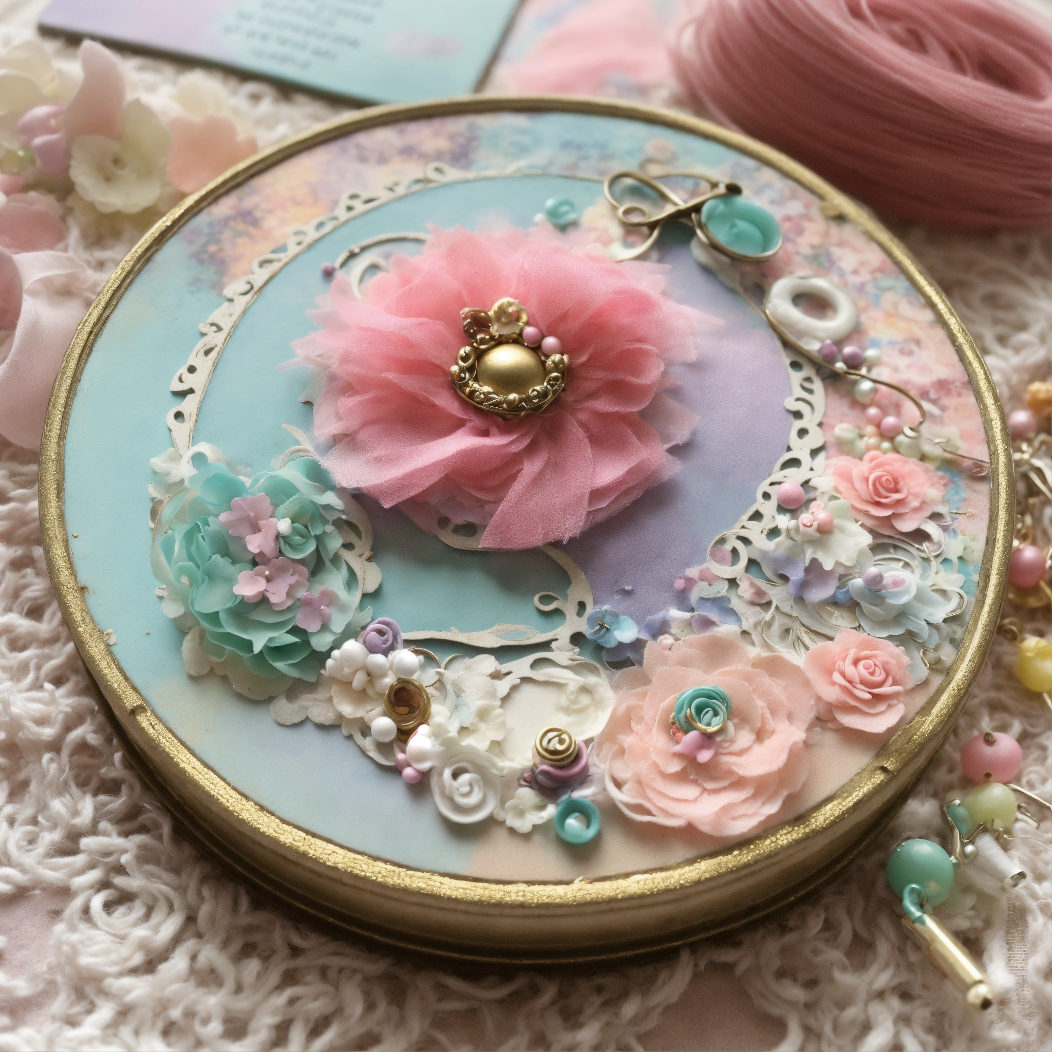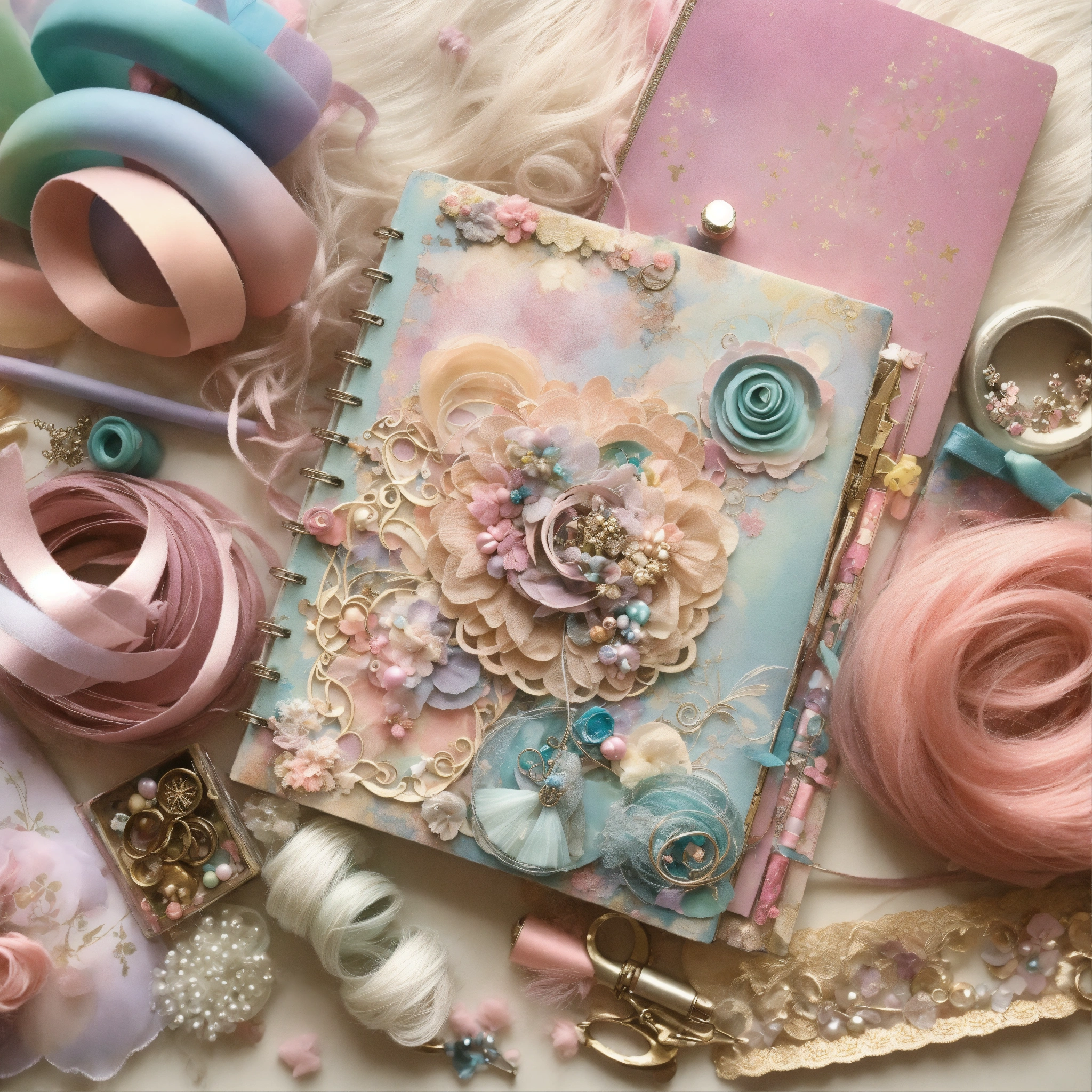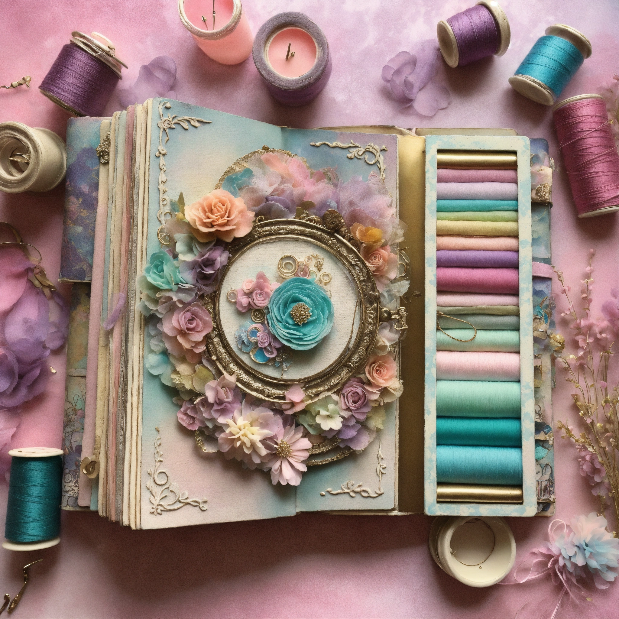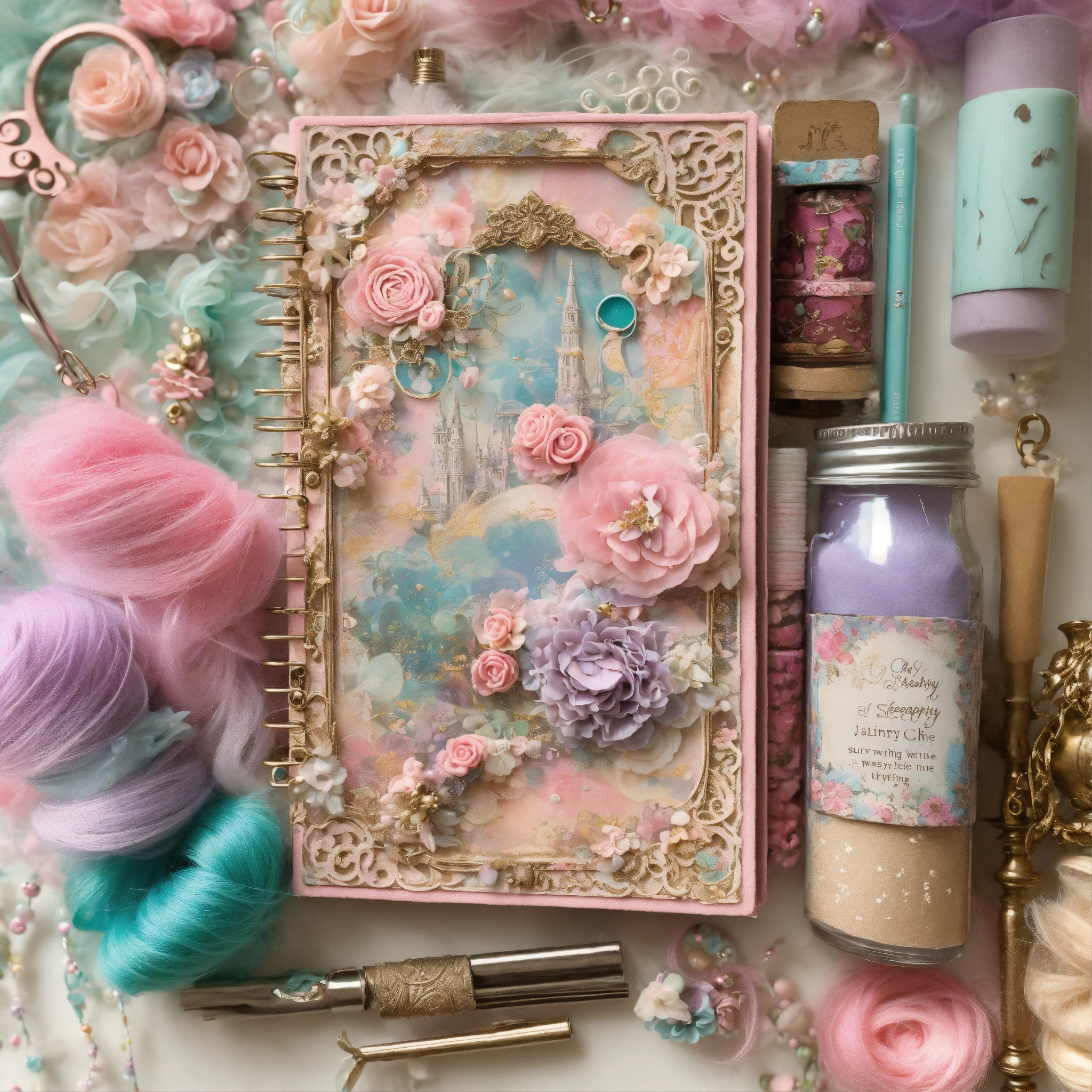 Shabby chic dreamy mist pastel junk journals sewing kit accessories swirling magical fairytale abstract art style