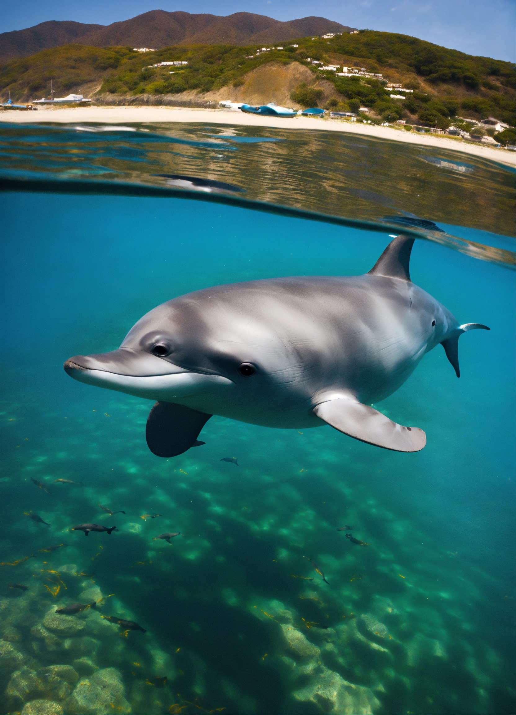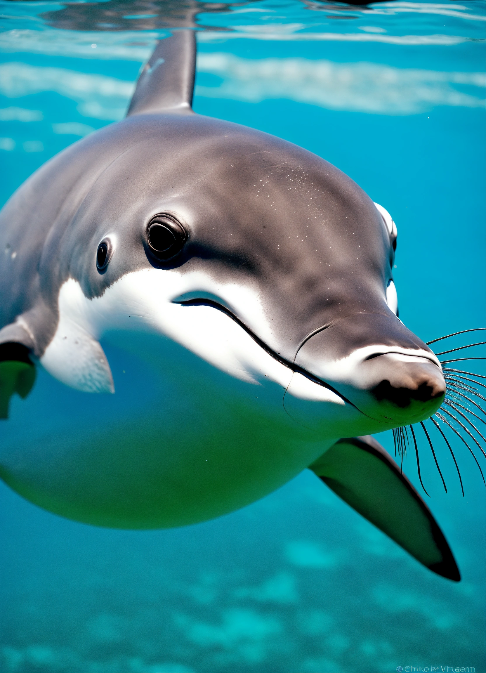dolphin, mustache, hair, pointed nose