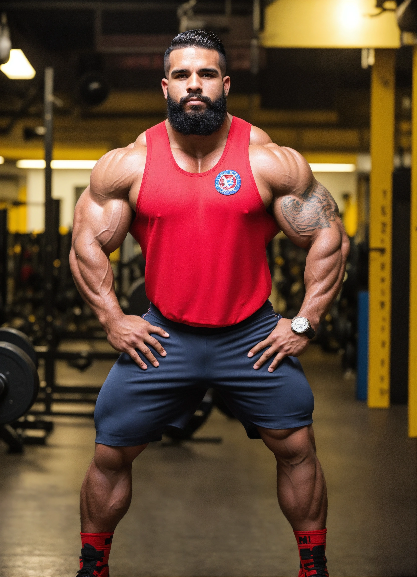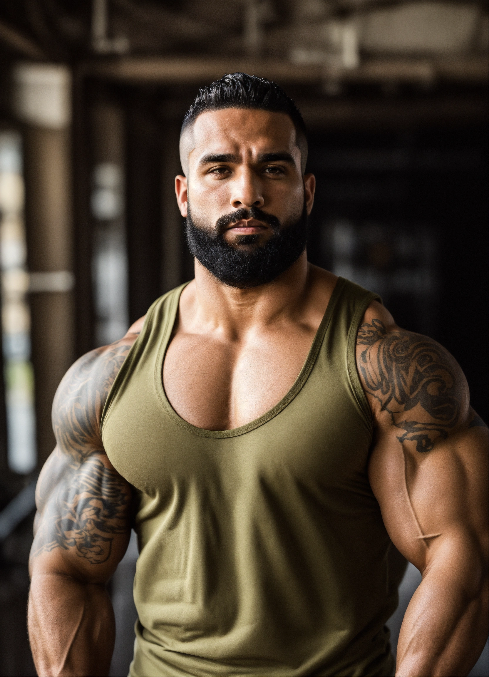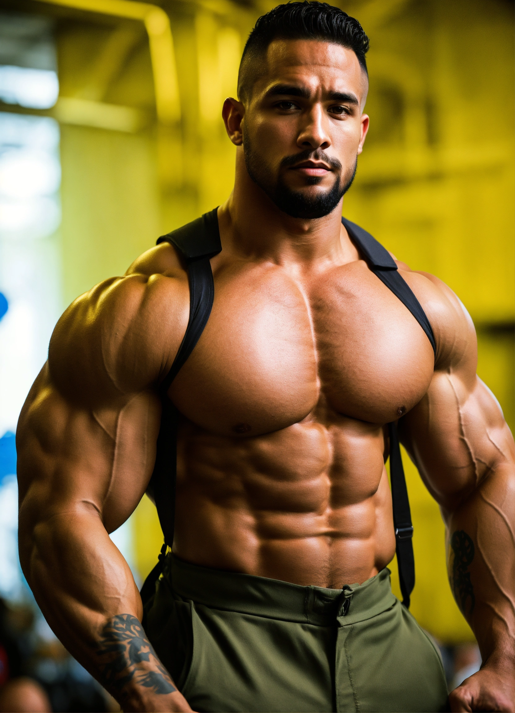 30-year-old puerto rican man with big muscles, big bodybuilder, body like a wrestler, in the military