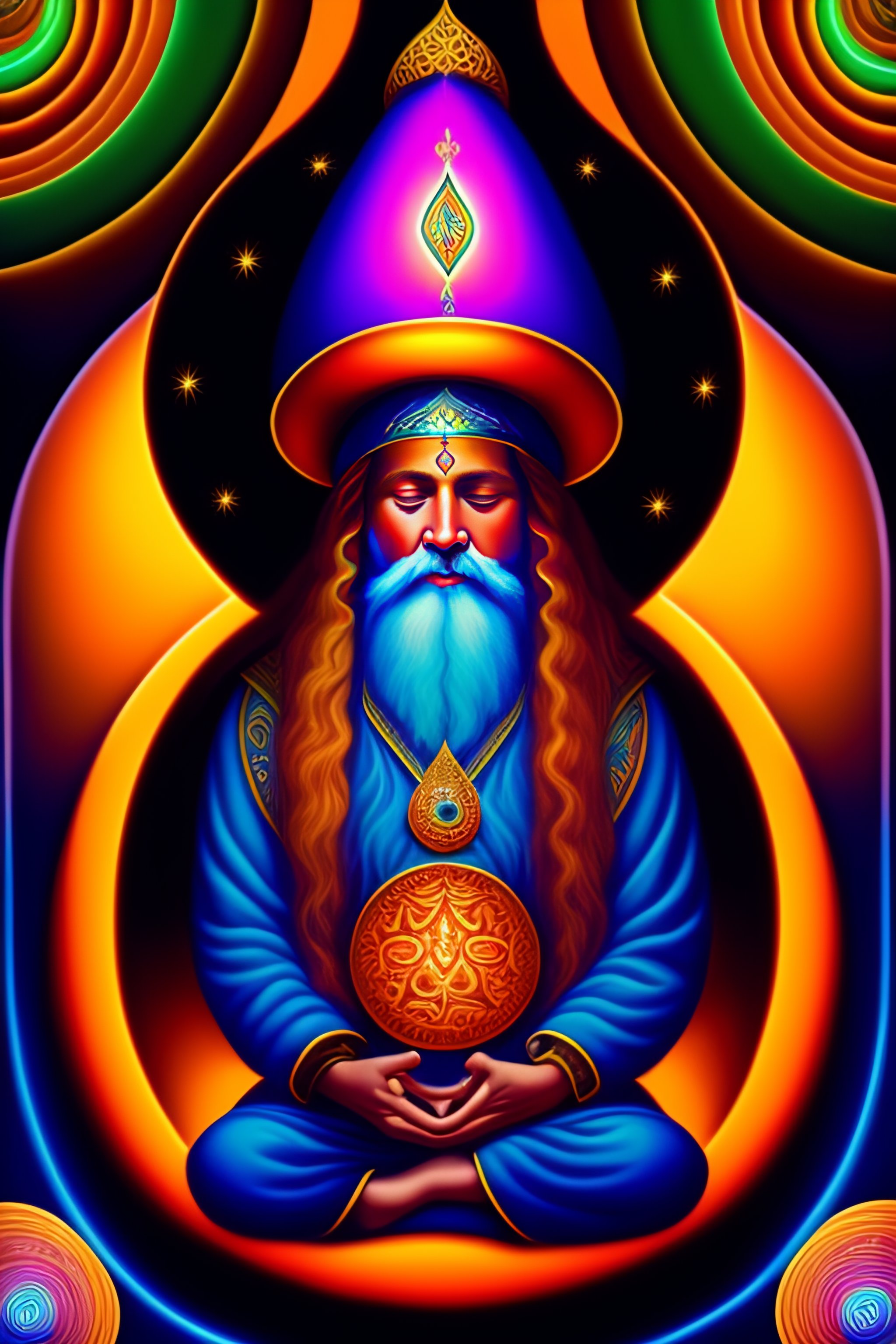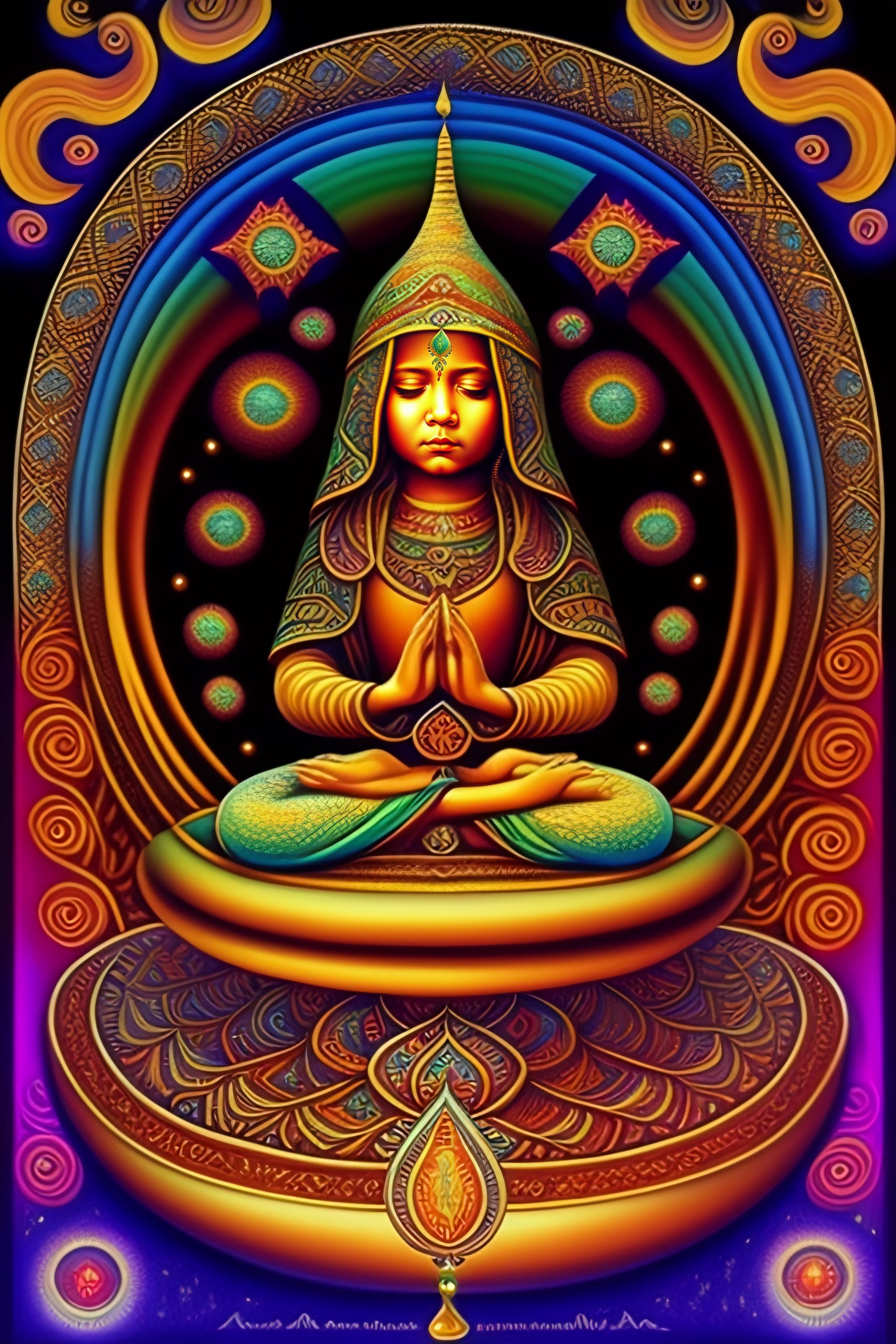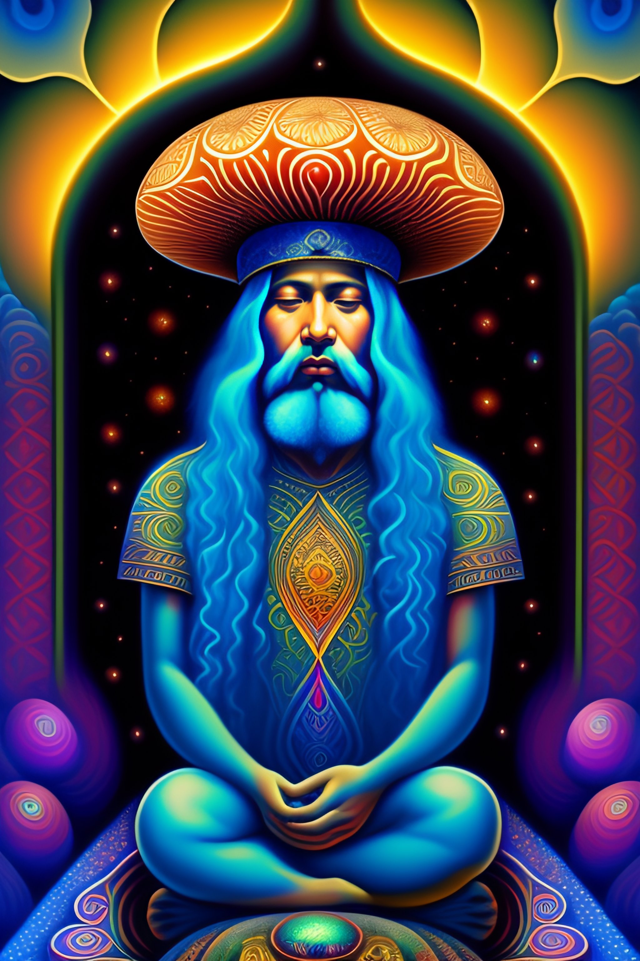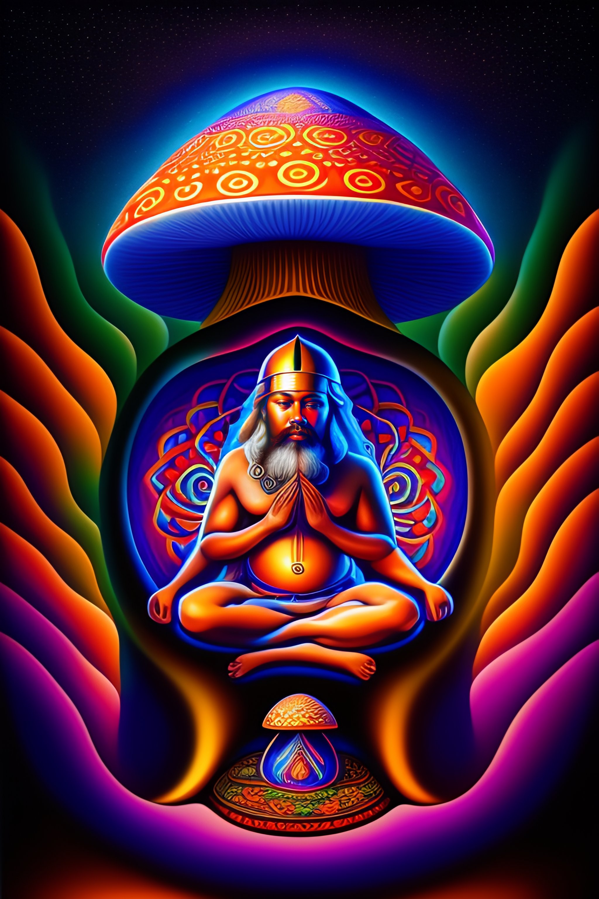 gnome meditating sitting on mushroom