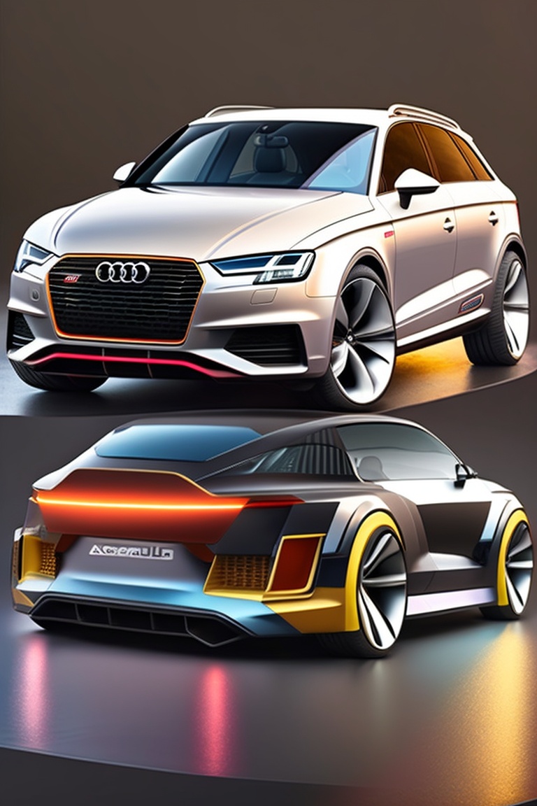 An audi car with a 3d hmi design, featuring a vibrant array of buttons and modules that can be clicked to open different functions.a 3d car with a futuristic hmi design, featuring a complex array of buttons and modules that can be clicked to access different features.