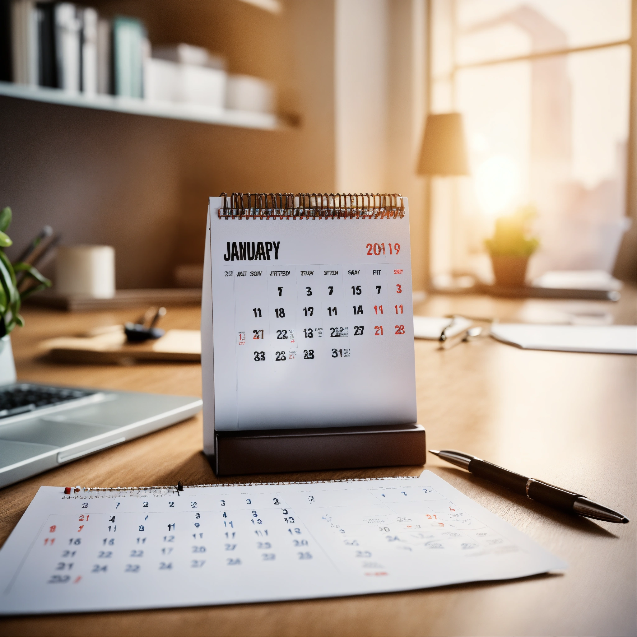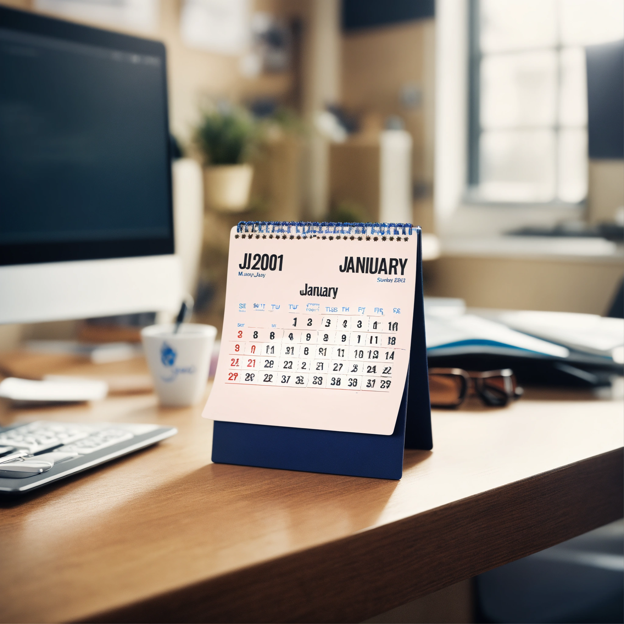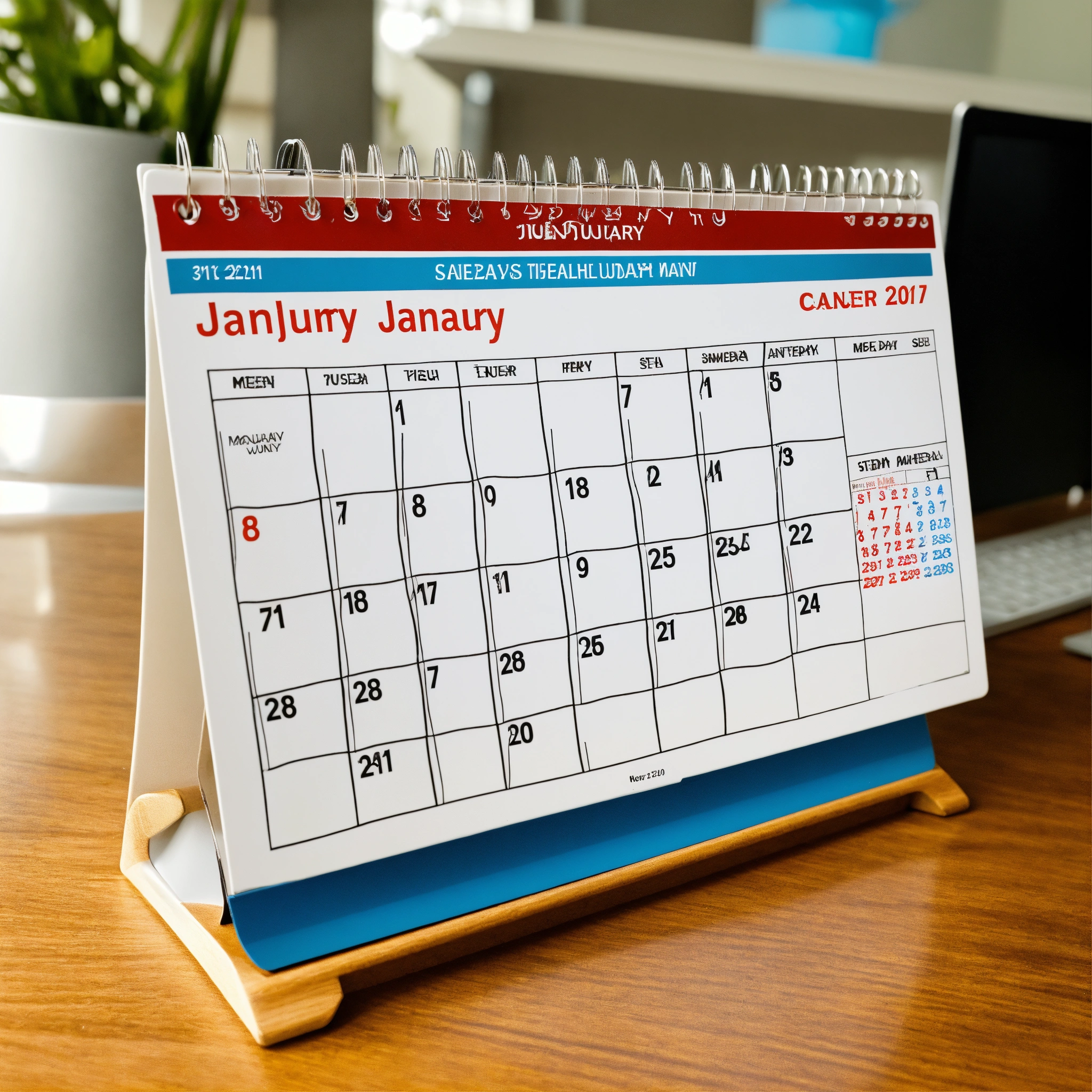 A photo of a desk calendar, the calendar is open to the month of january, the calendar is on a desk in an office