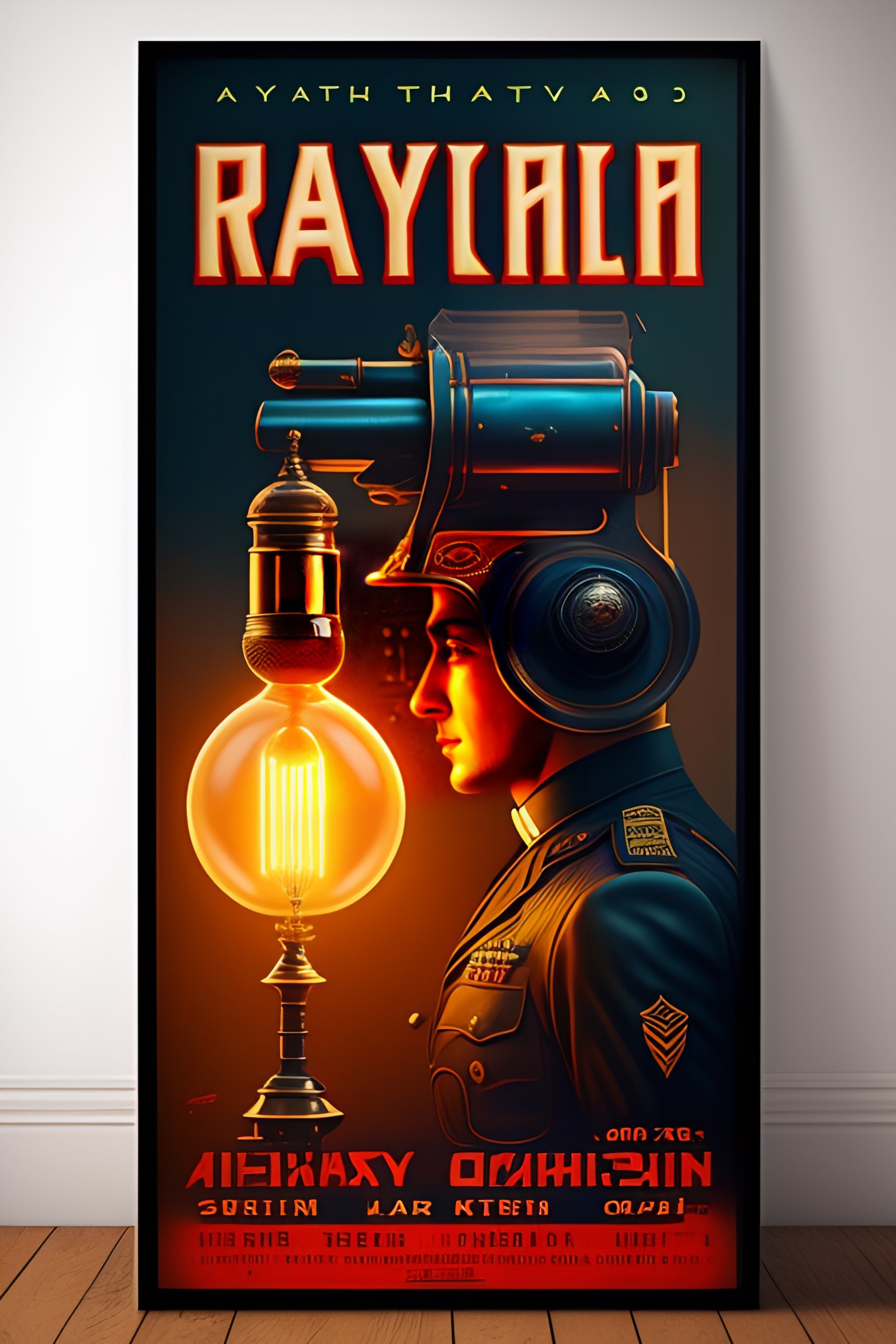 Vintage medium shot 1920's poster, object, raygun pistol, vintage, robotic, 1820s movie poster, cozy interior lighting, artstation, ultra detailed, cinematic, drugs, hyper realistic, octane, netflix lighting, 8k