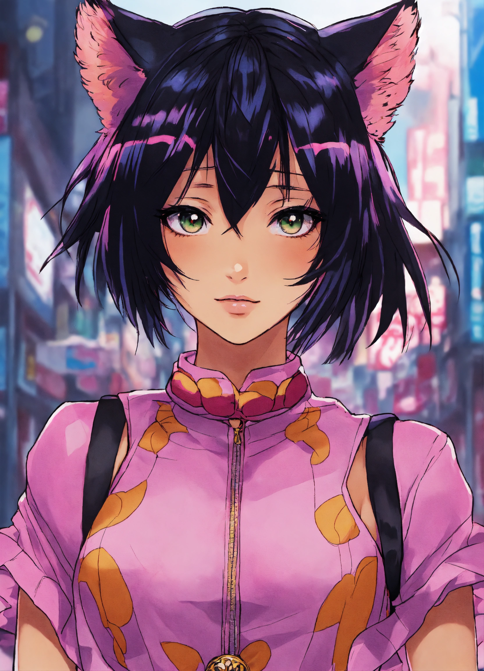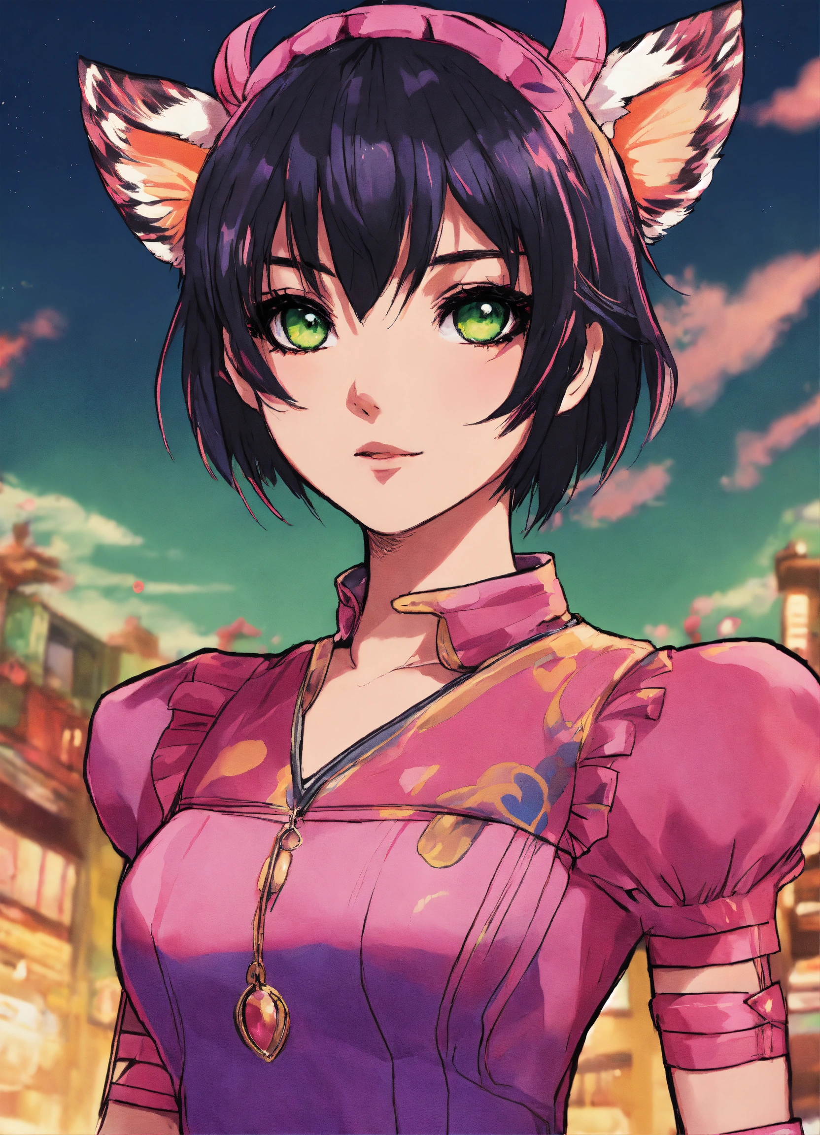 A transgender woman with emo cut black hair, streak in front of her eyes, in magical girl tiger mode, in the style of the manga "tokyo mew mew"