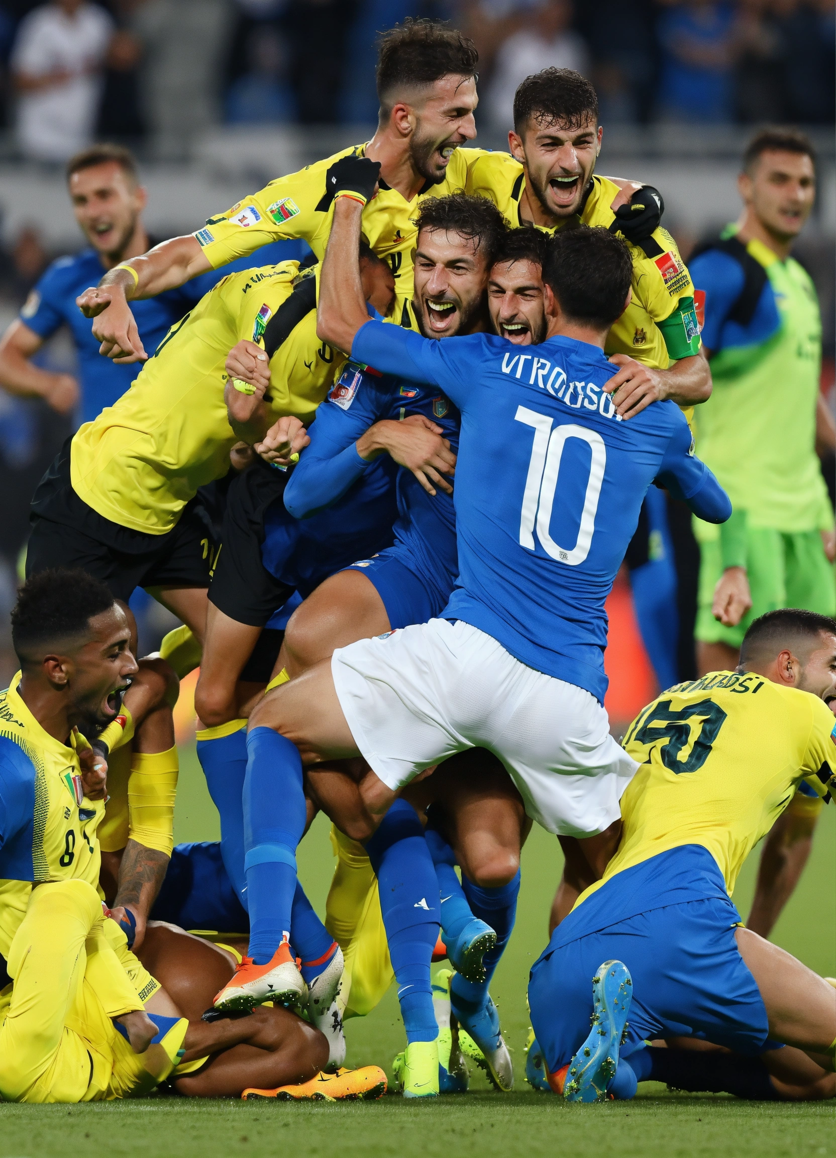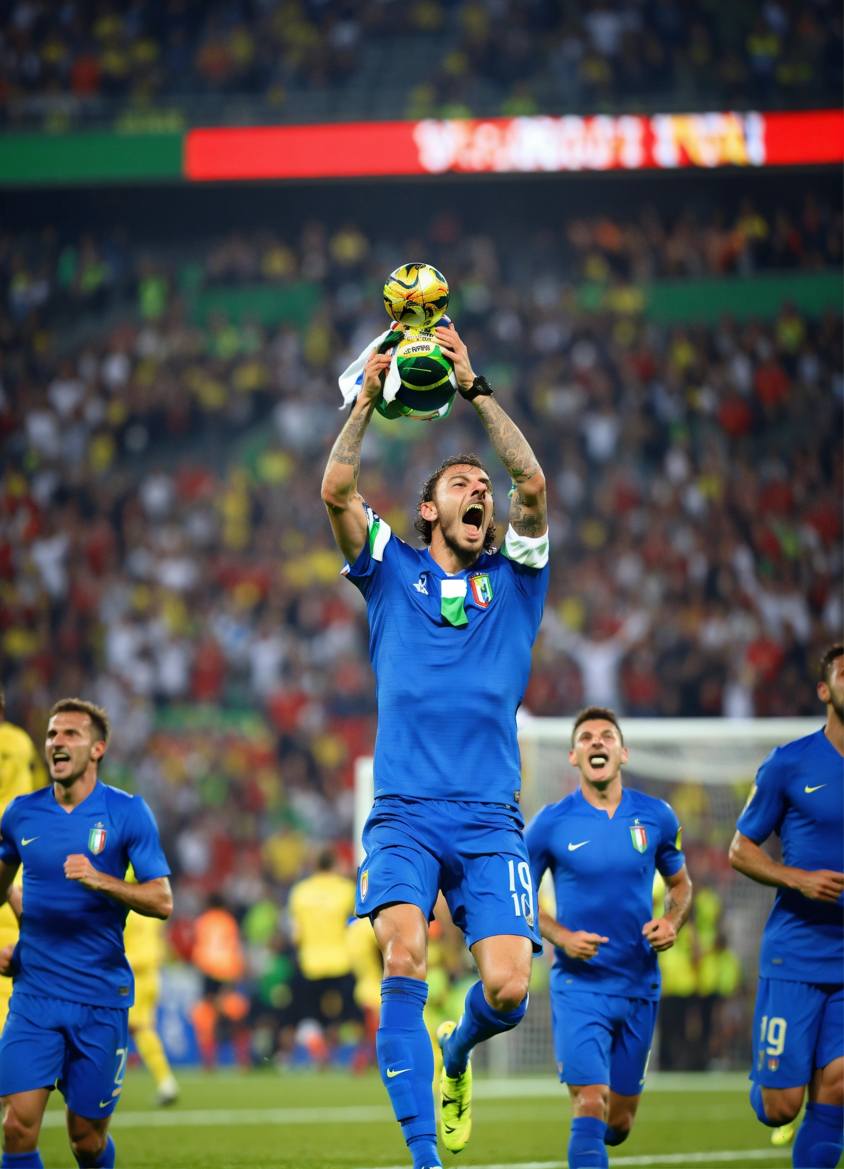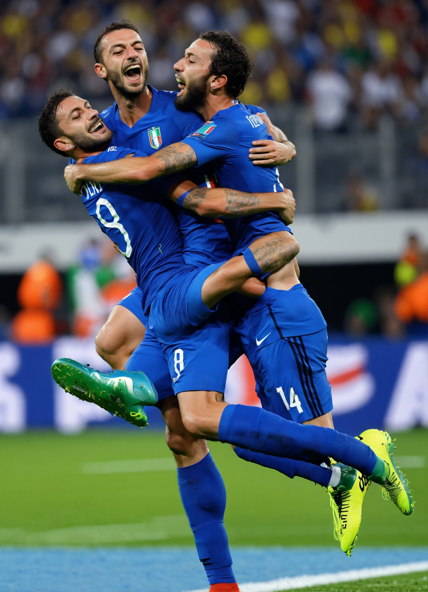 Italian victory in the world football championships, rossi's goal, team mates rejoice, the public goes crazy
