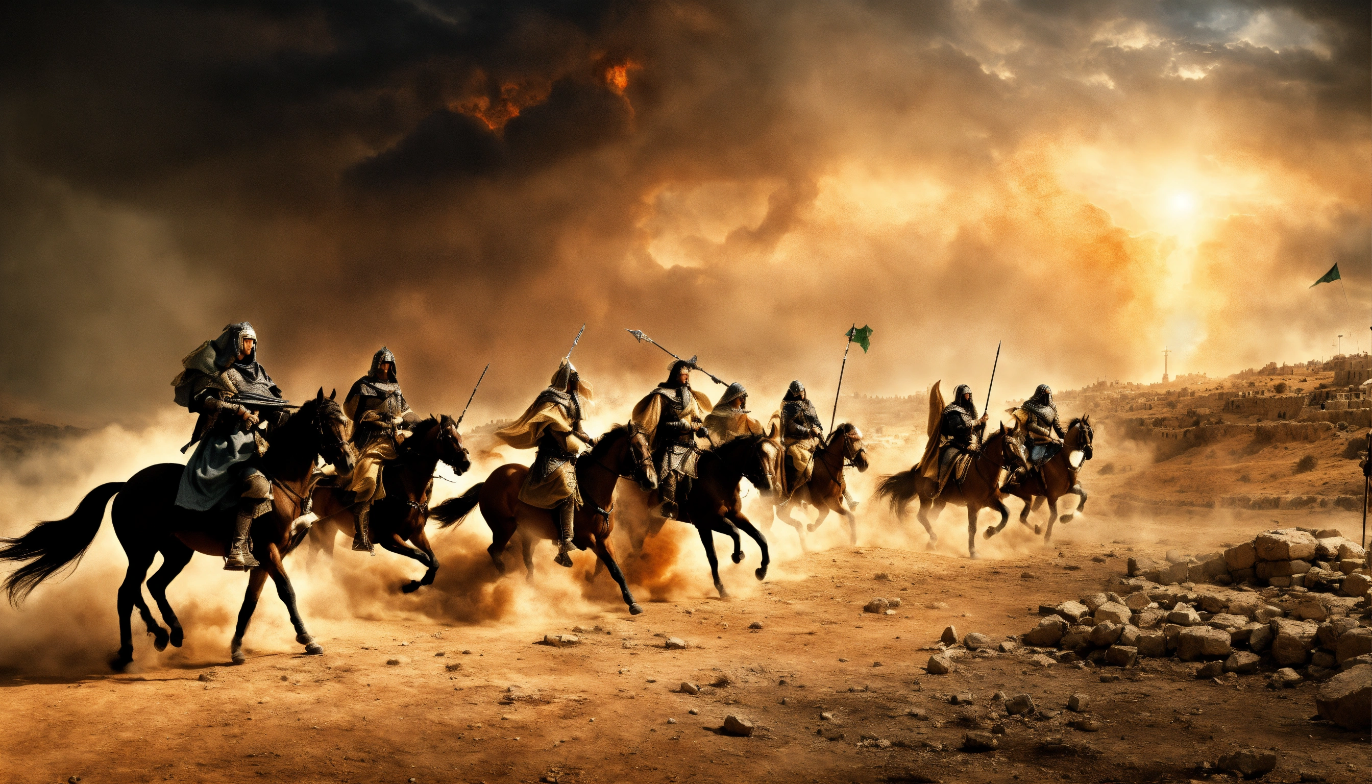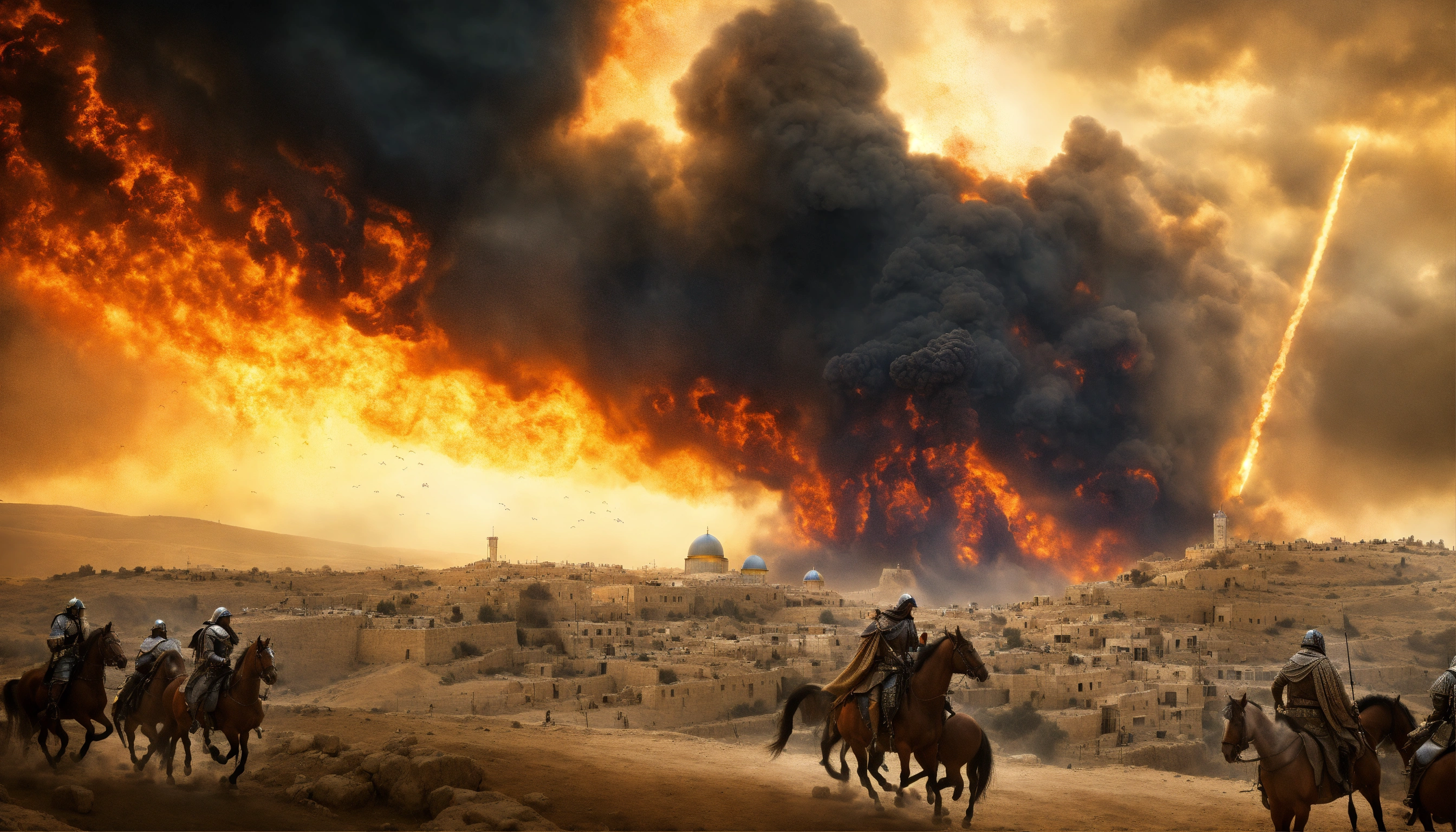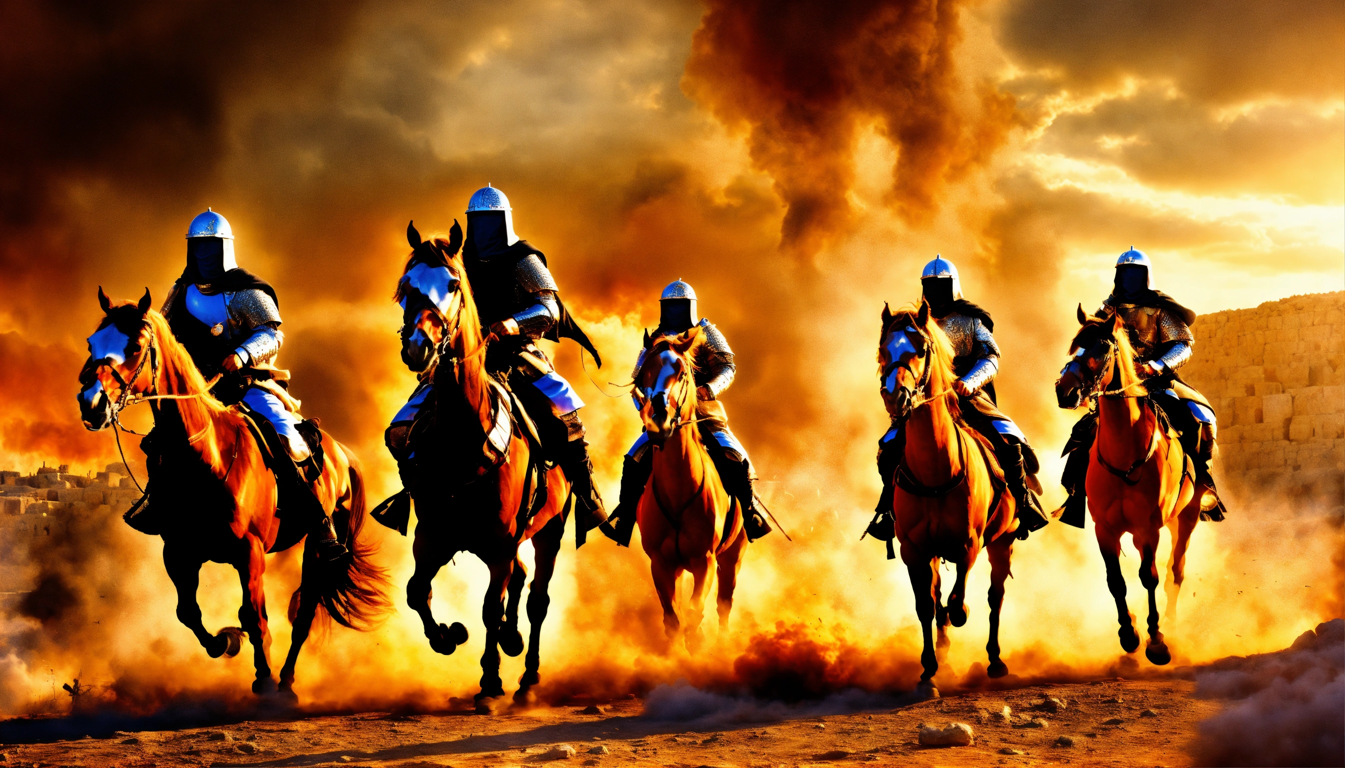 Biblical armageddon of israel, extremely ominous, very creative, divine, highly detailed and realistic, inspired by apollyon, 4 horsemen of the apocalypse at jerusalem
