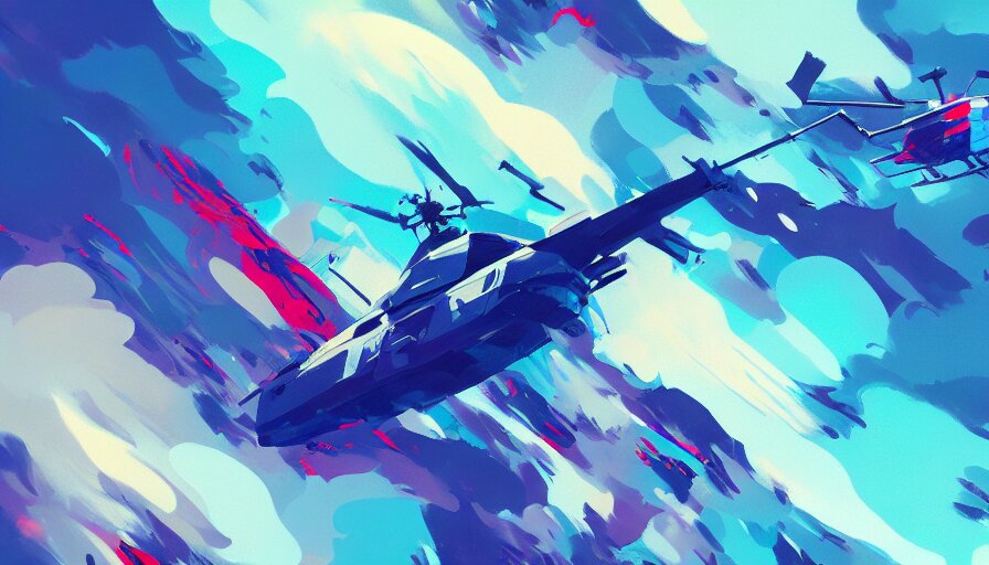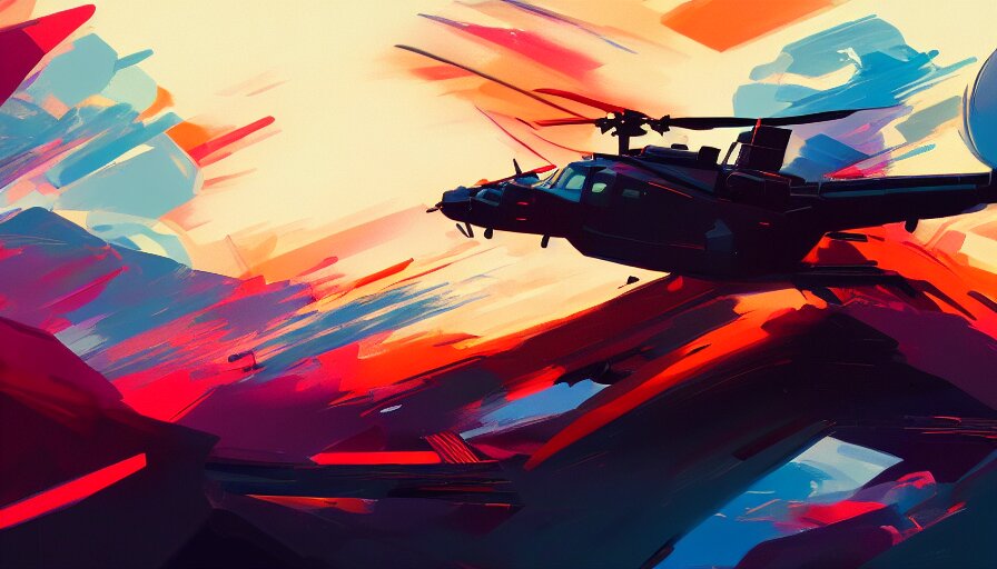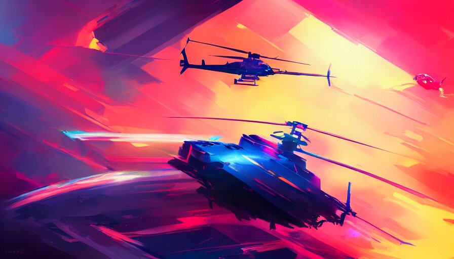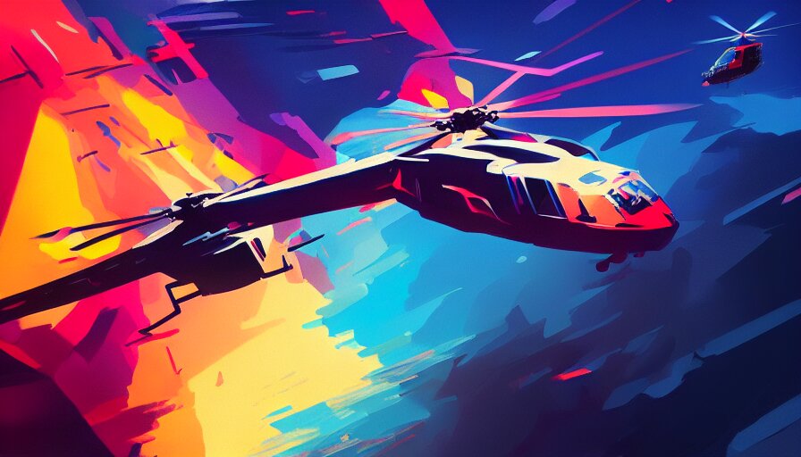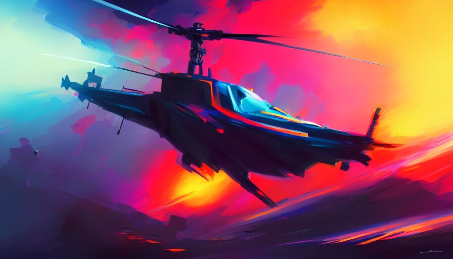 Concept art by jama jurabaev, cinematic shot, trending on artstation, high quality, brush stroke, hyperspace, vibrant colors, helicopter