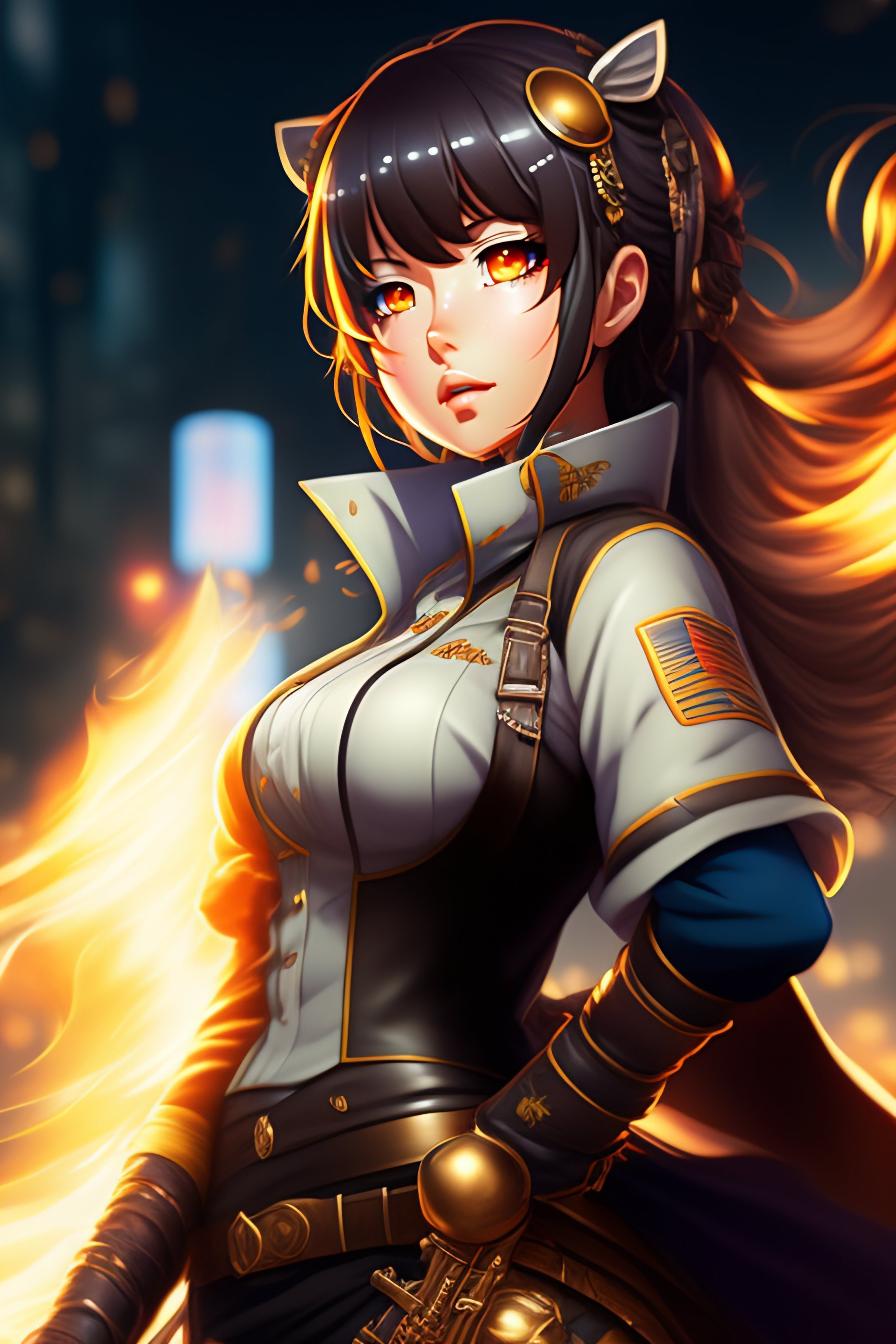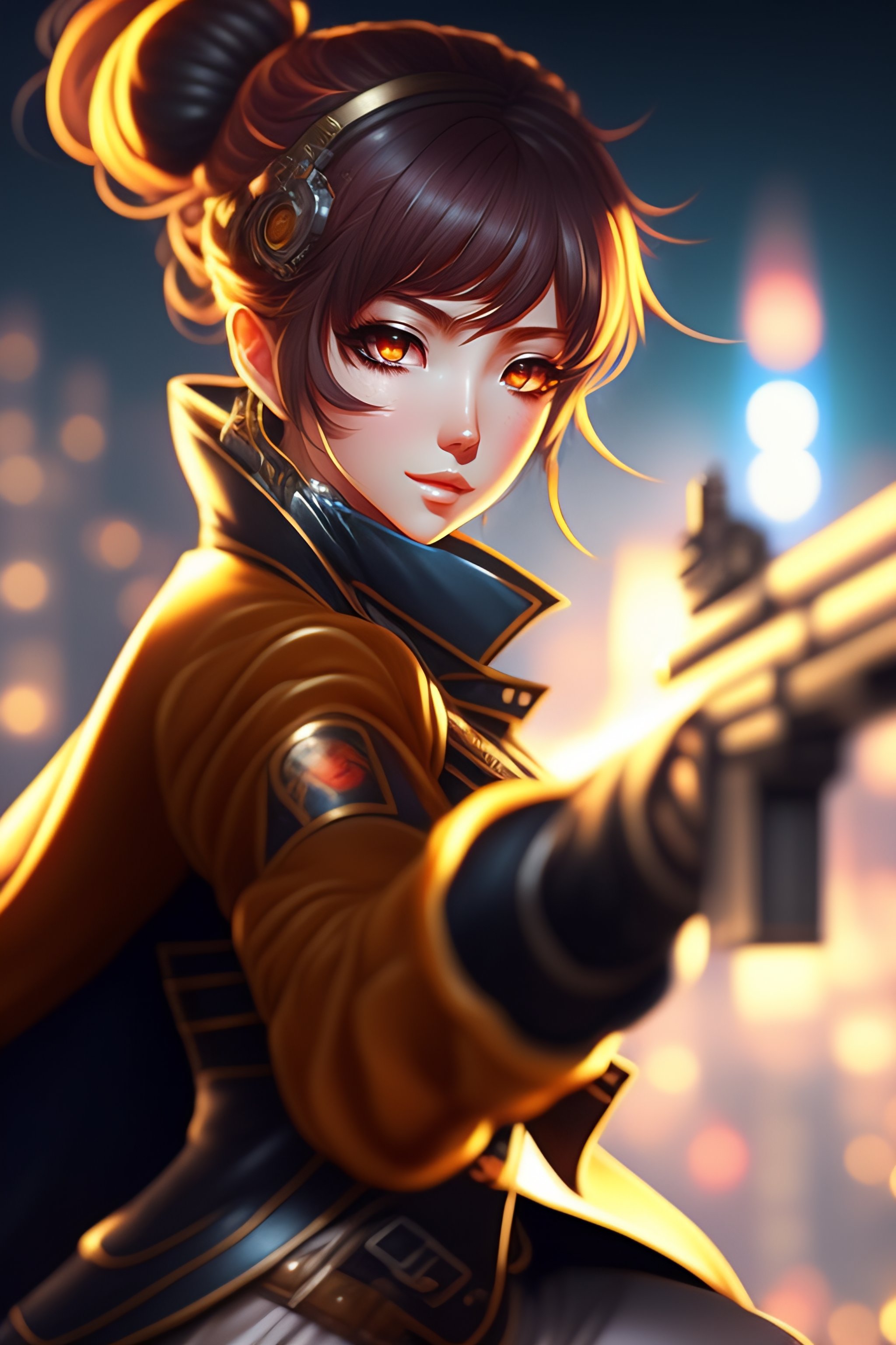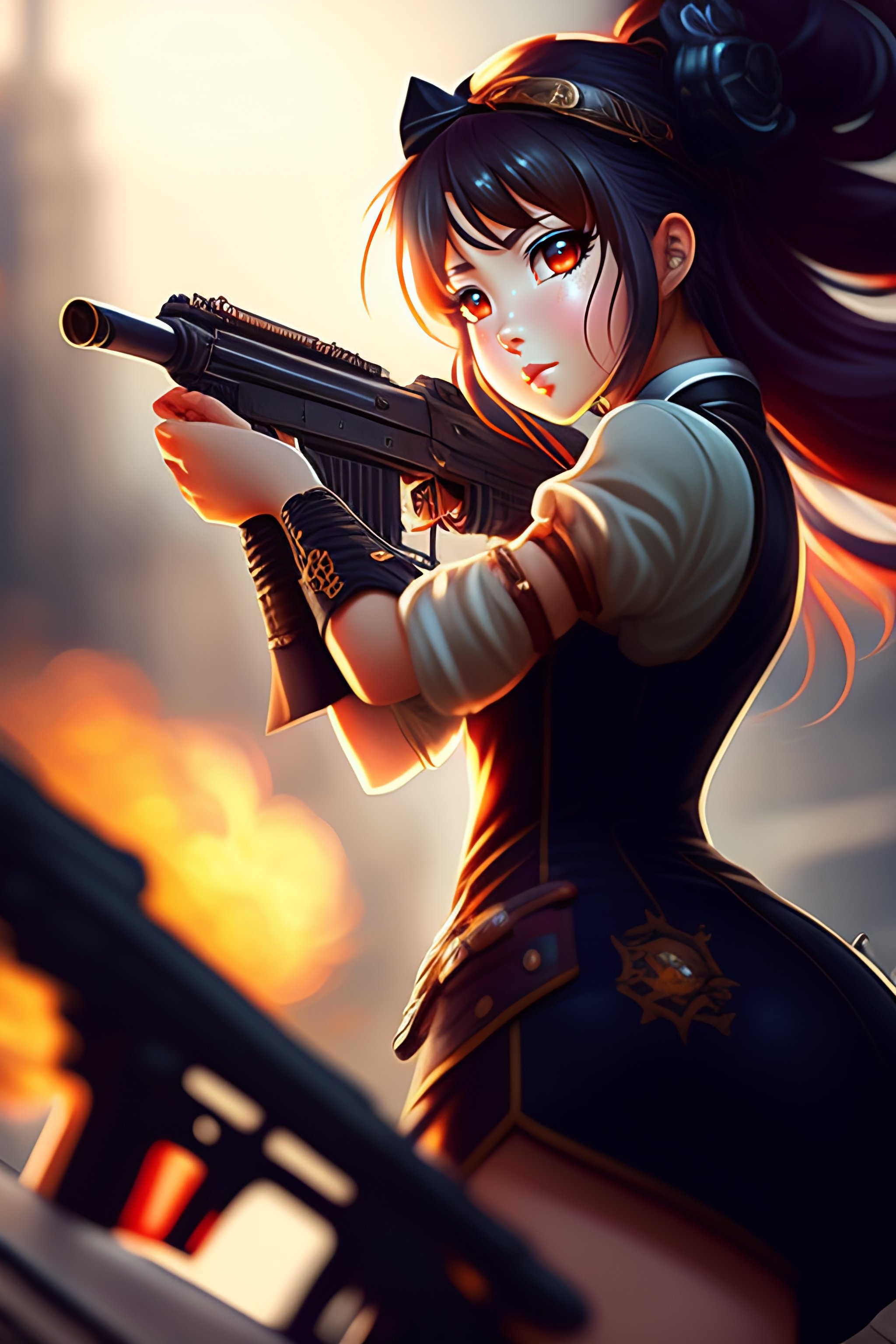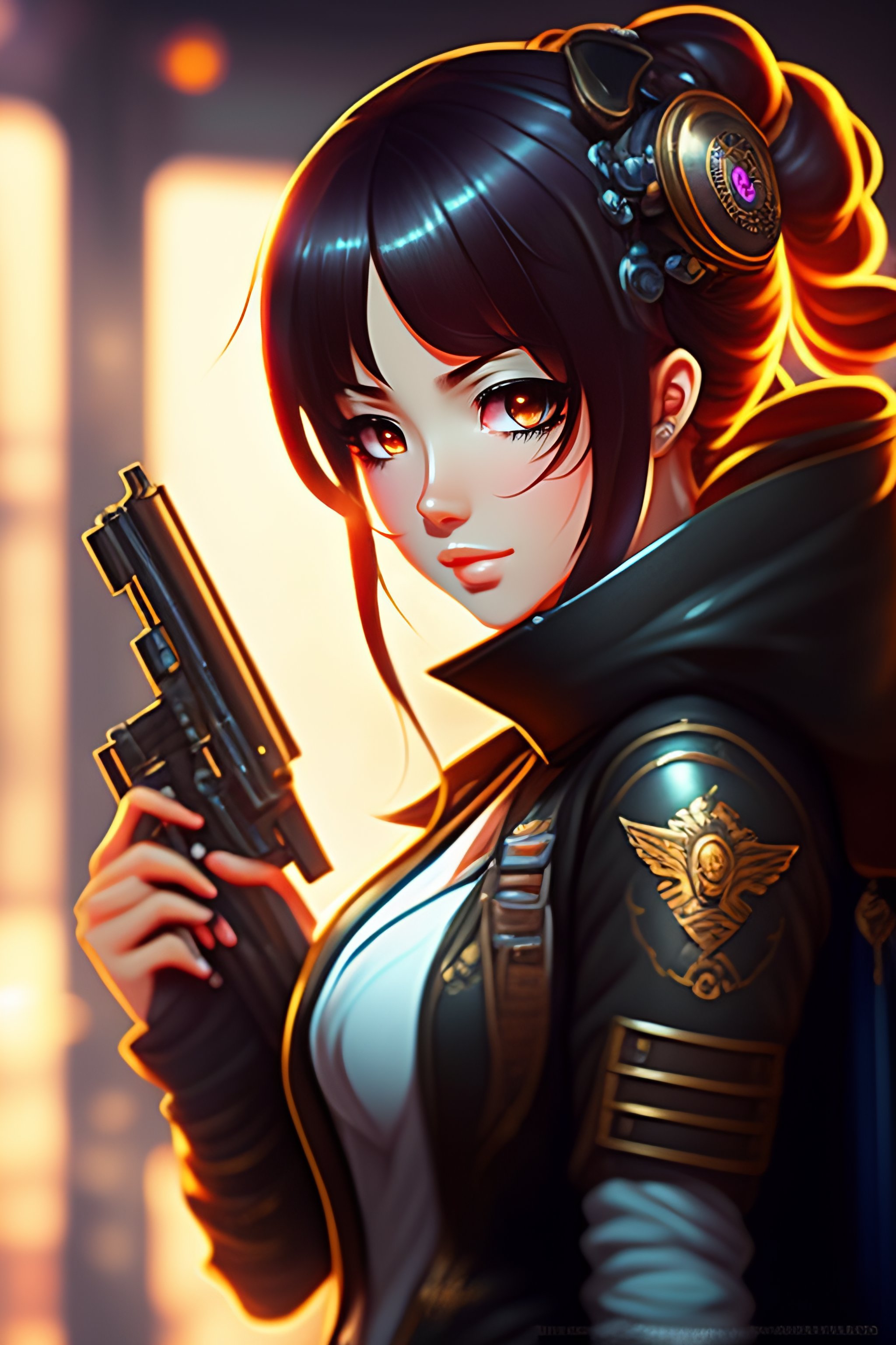 Masterpiece, best quality, ultra detailed, anime illustration, steam punk girl aiming gun to viewer, dynamic angle, cinematic lighting