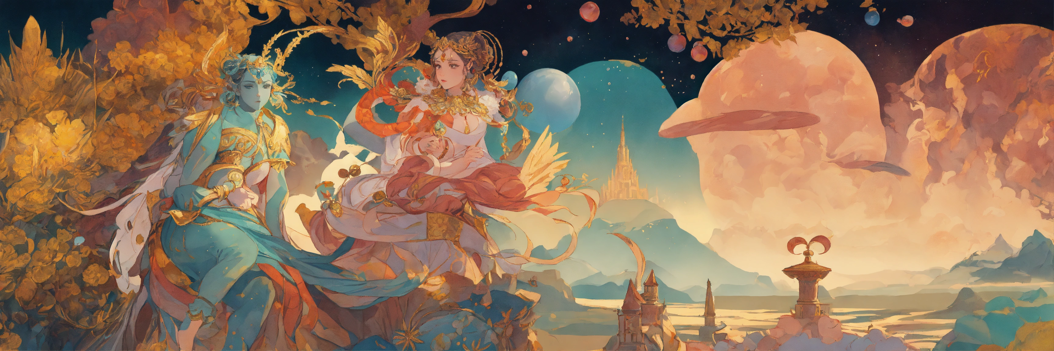 Create an illustration in the enchanting style of the illustrator franck sabatier, depicting the three gods of flyff universe shade, bubble, and iblis. franck sabatier's art is known for its dreamlike designs, captivating details, and captivating details. capture the divine essence of these gods in your artwork, emphasizing their unique characteristics, personalities, and the mystique of the flyff universe. pay close attention to sabatier's signature use of shadows and intricate linework. the image should encapsulate the awe-inspiring presence of these deities and the artistry of franck sabatier, resulting in a visually striking and immersive portrayal of these celestial beings.