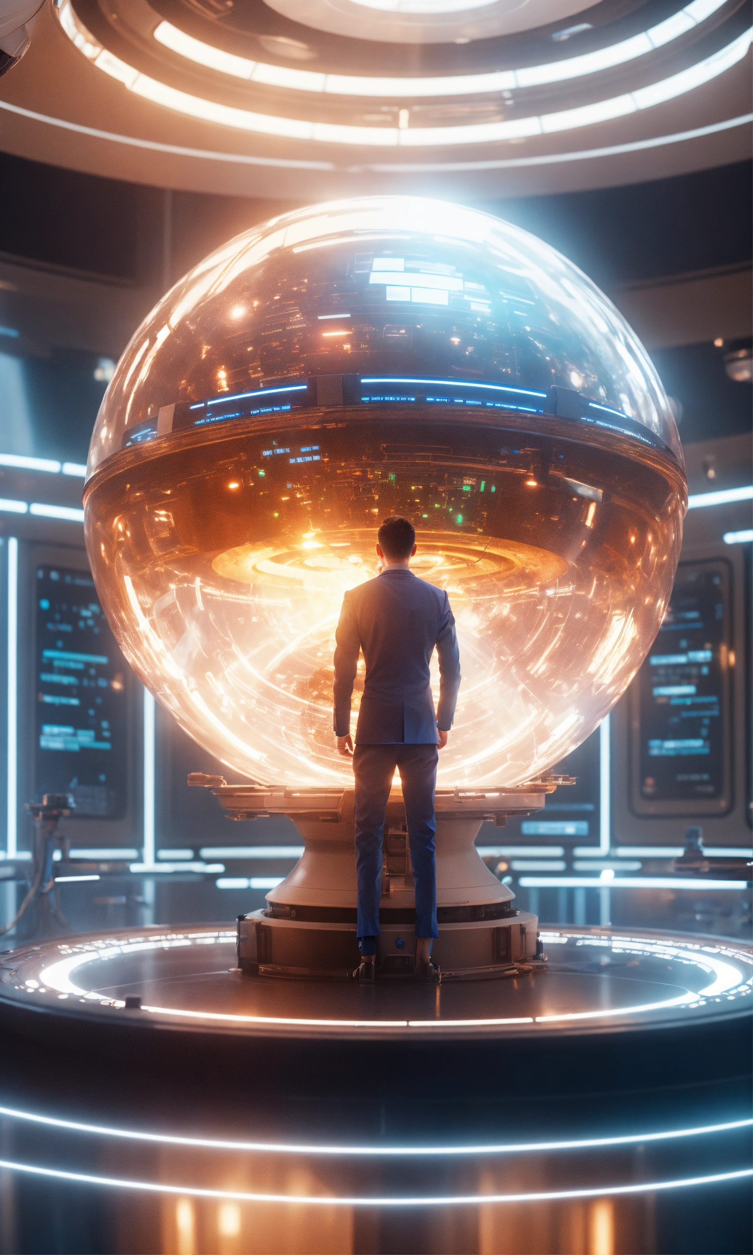 Starship tdoctor in a bright space ship medical lab examining a hi-tech alien orb, realistic, sci-fi, 8k