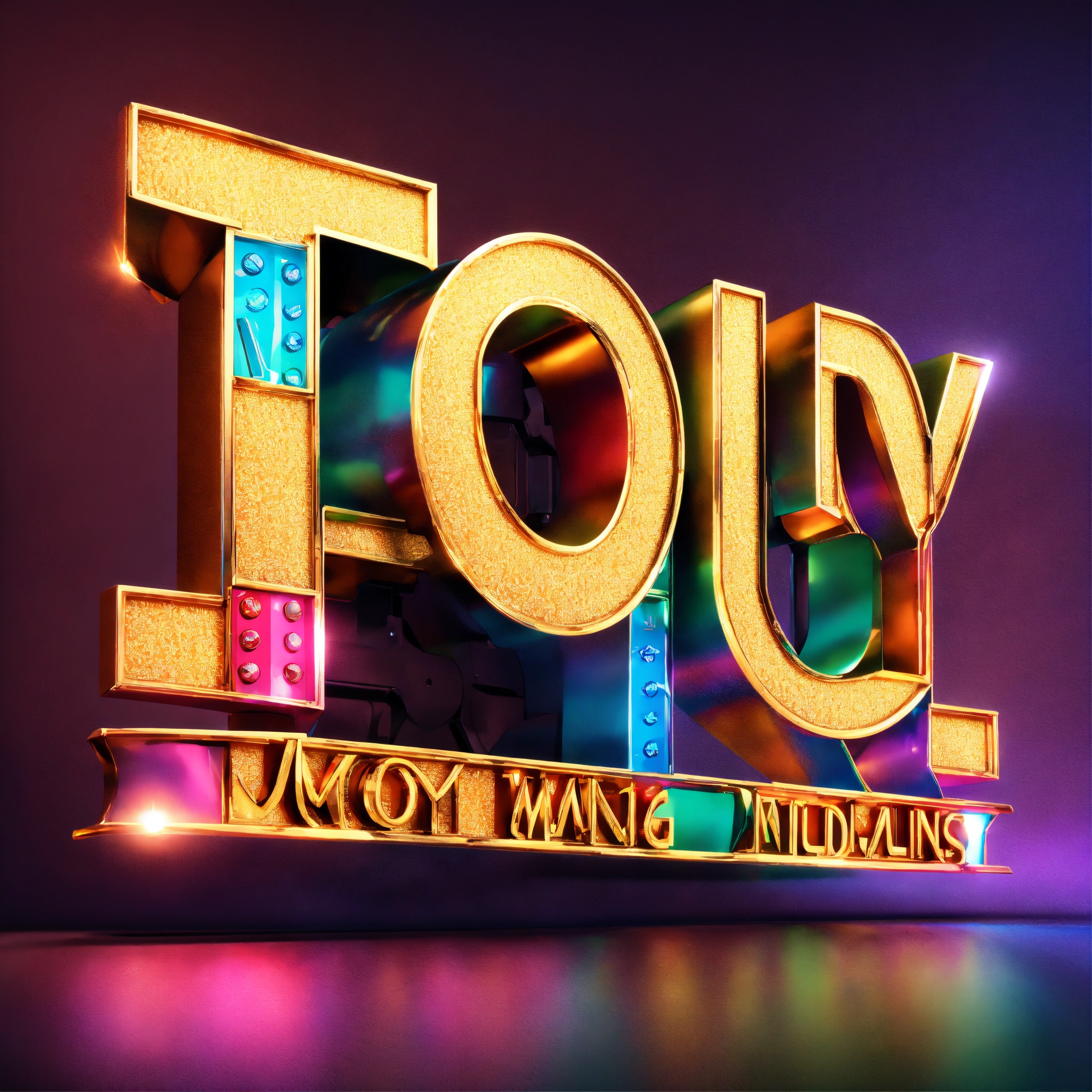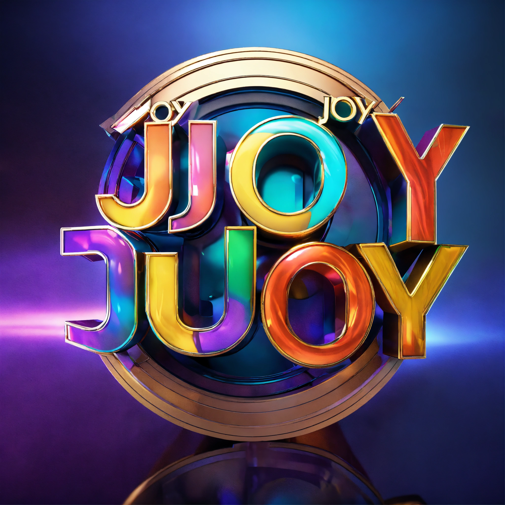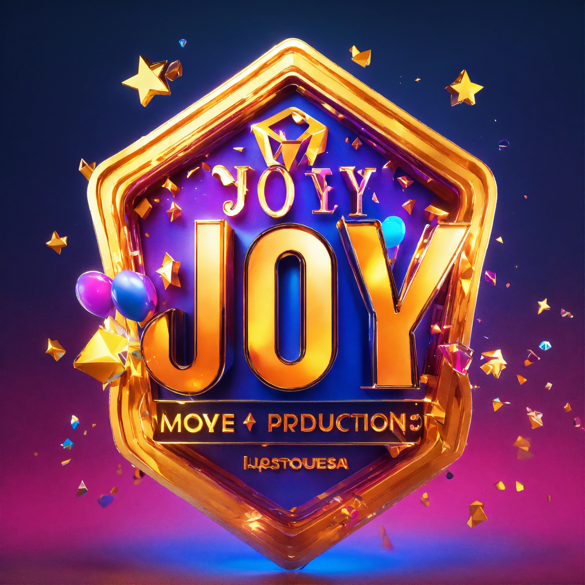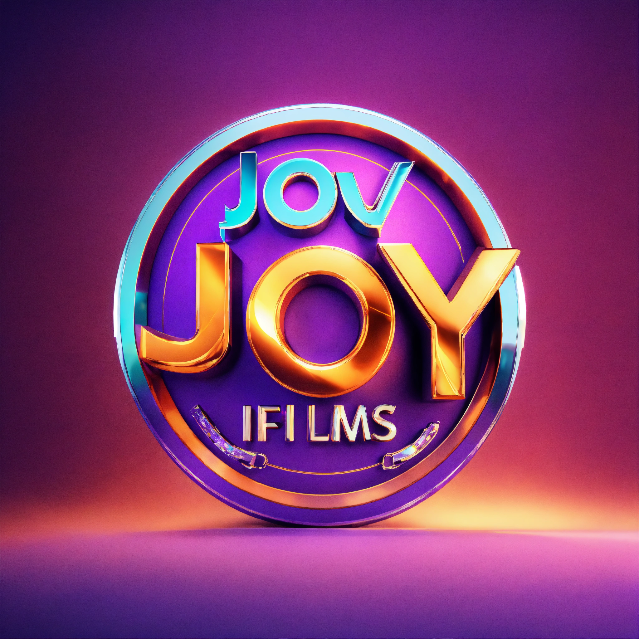 Movie production logo design, text as " joy films ", 3d metallic logo, happiness and joy expressing, octane rendering, cinema 4d render, photorealism, hyper-realistic, colorful, vibrance, beautiful lettering art