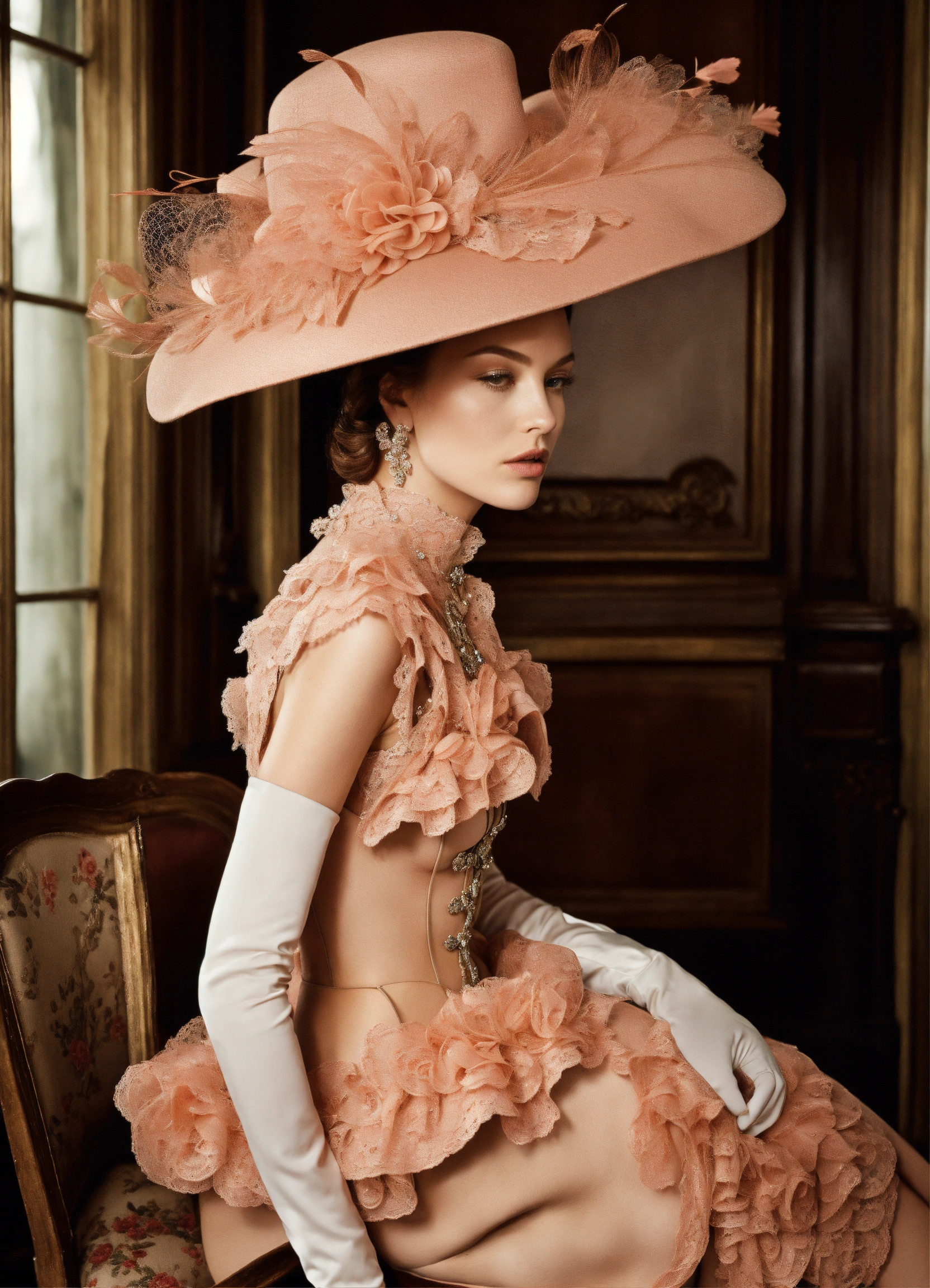 Tailleure 2008 bar-suit suit new look galliano christian dior haute couture 2008 big hat gloves interior undergarment lace flounces