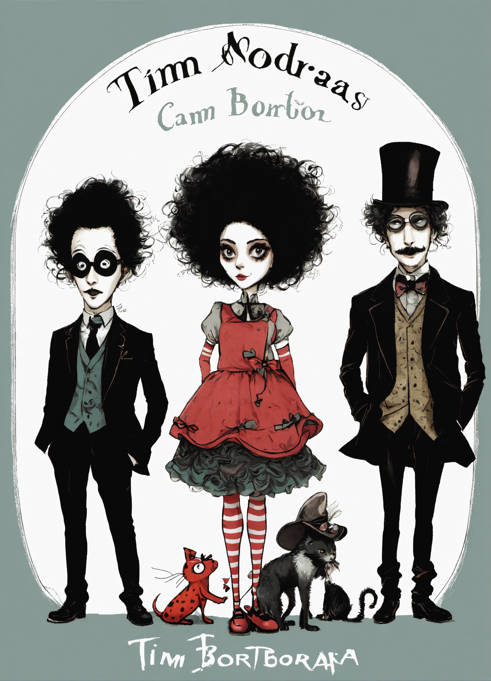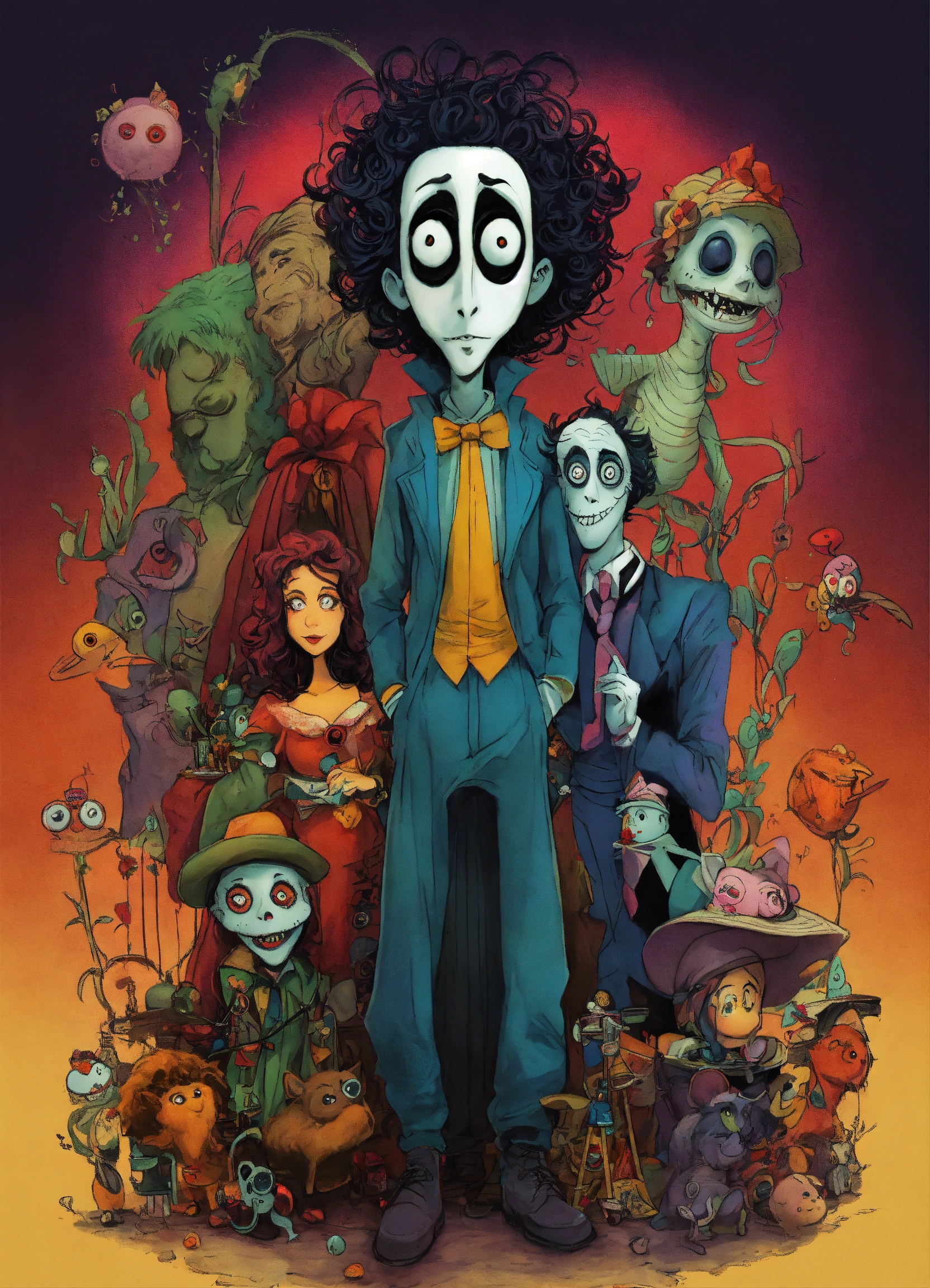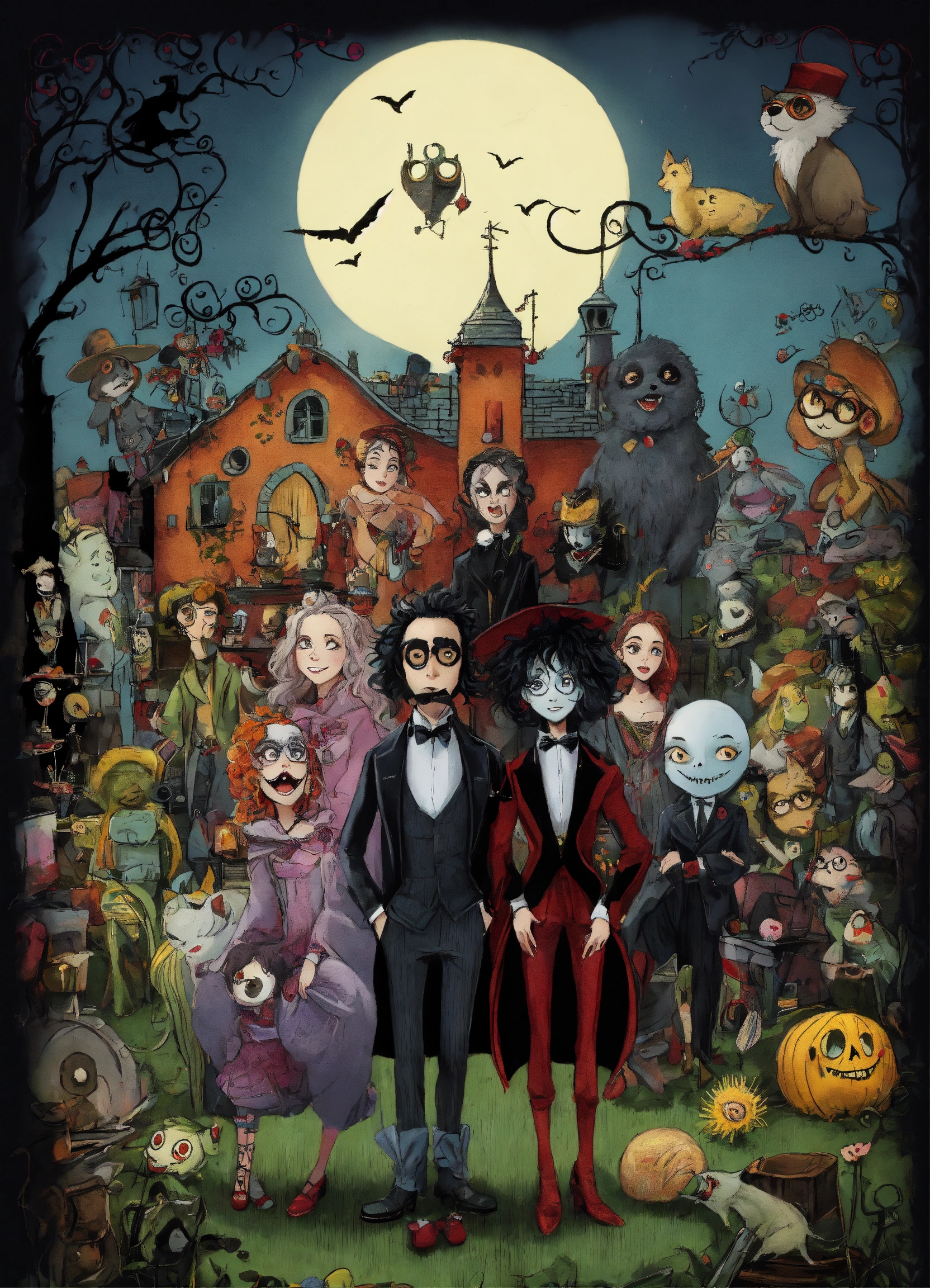 Diseño grafico para estampado de camiseta en el que aparezcan personajes de tim burton eduardo manostijeras