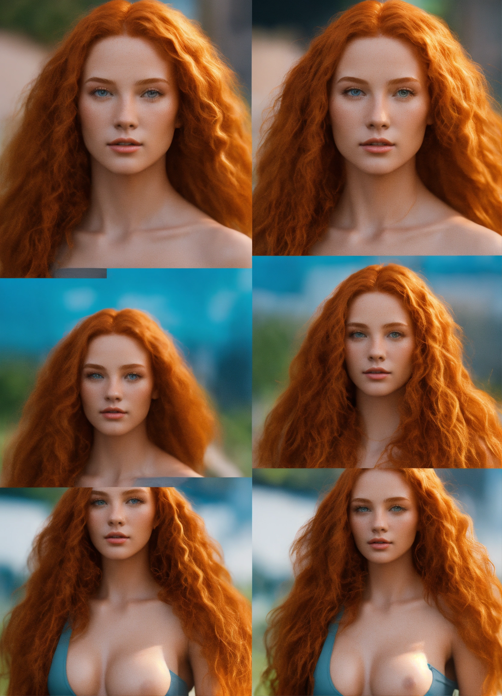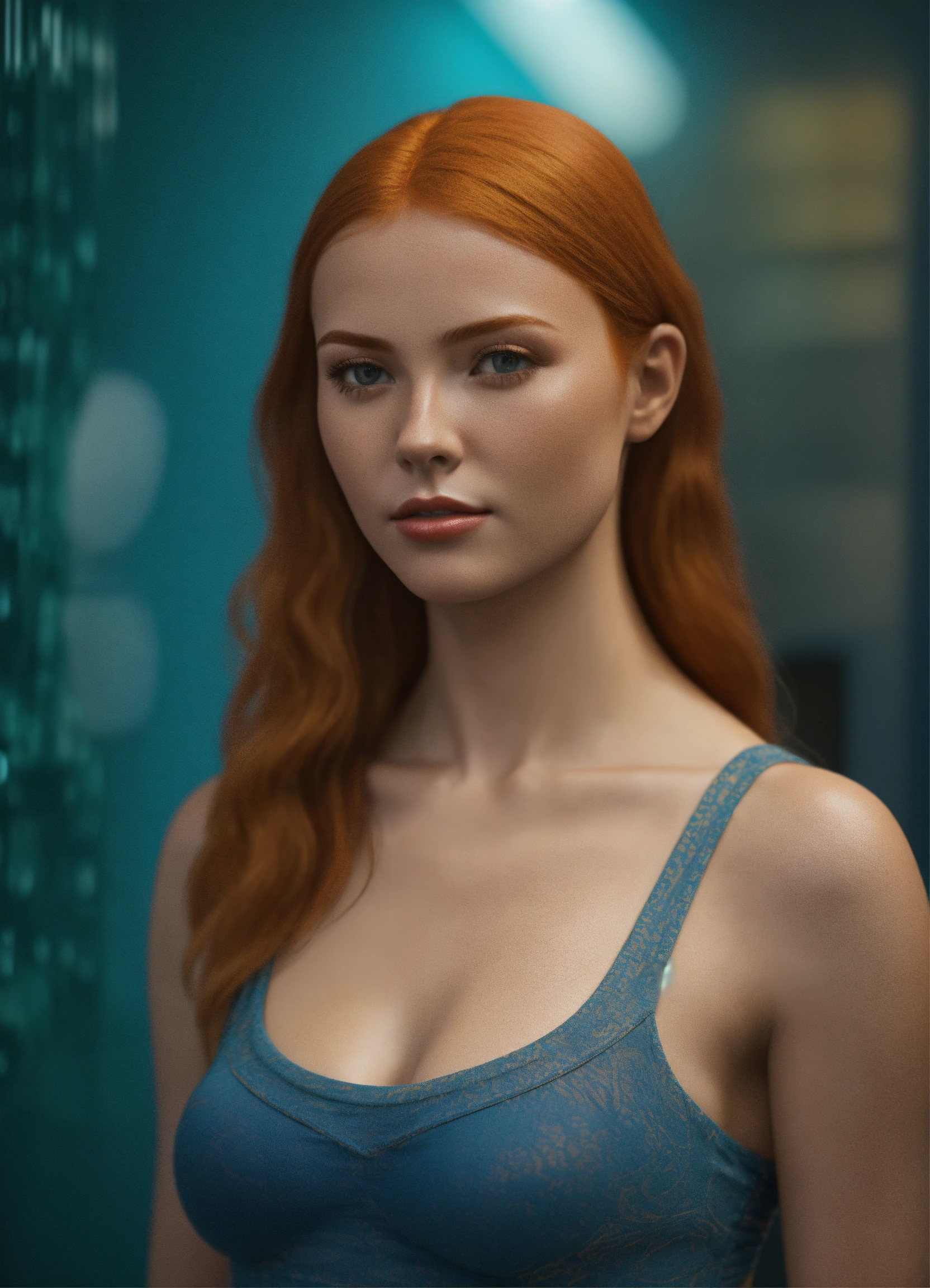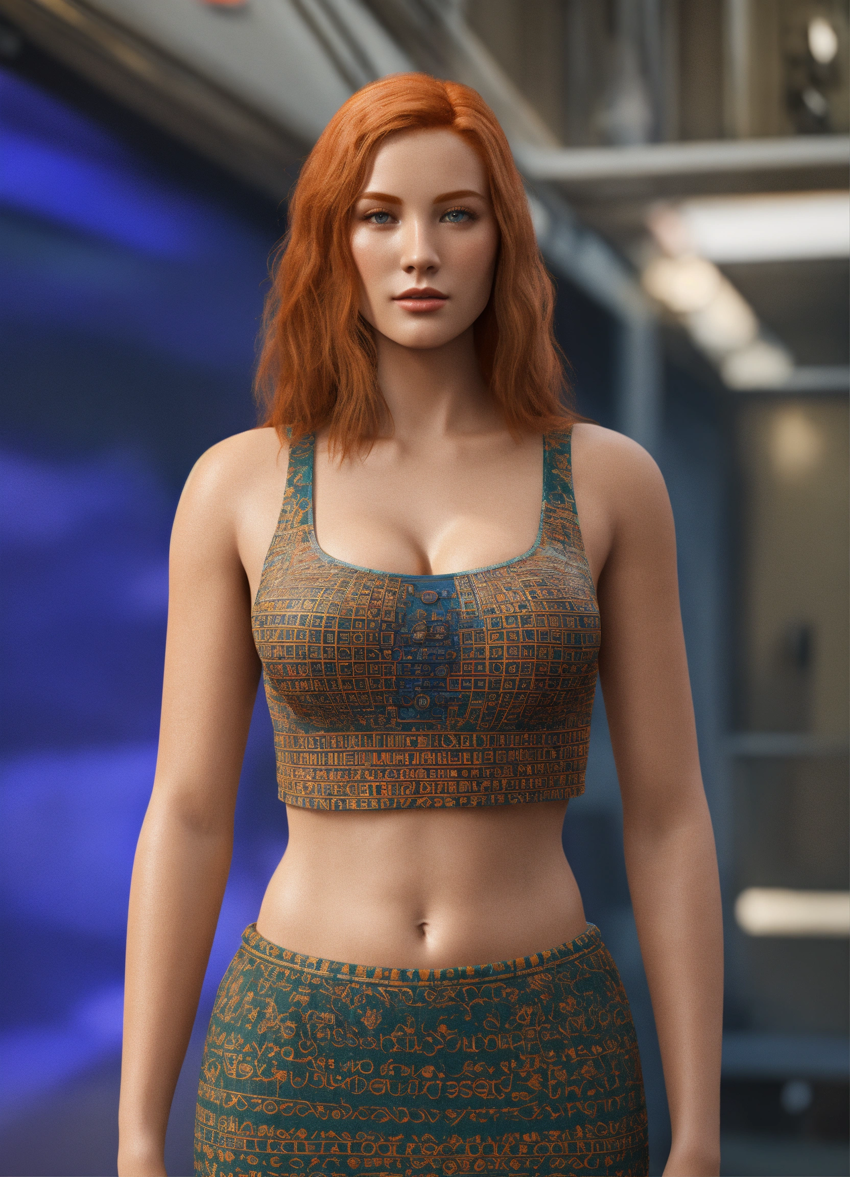 Use machine learning algorithms to generate a 3d model of a ginger woman with big jugs wearing a crop top hyper-realistic textures and lighting to make the image appear like a photograph