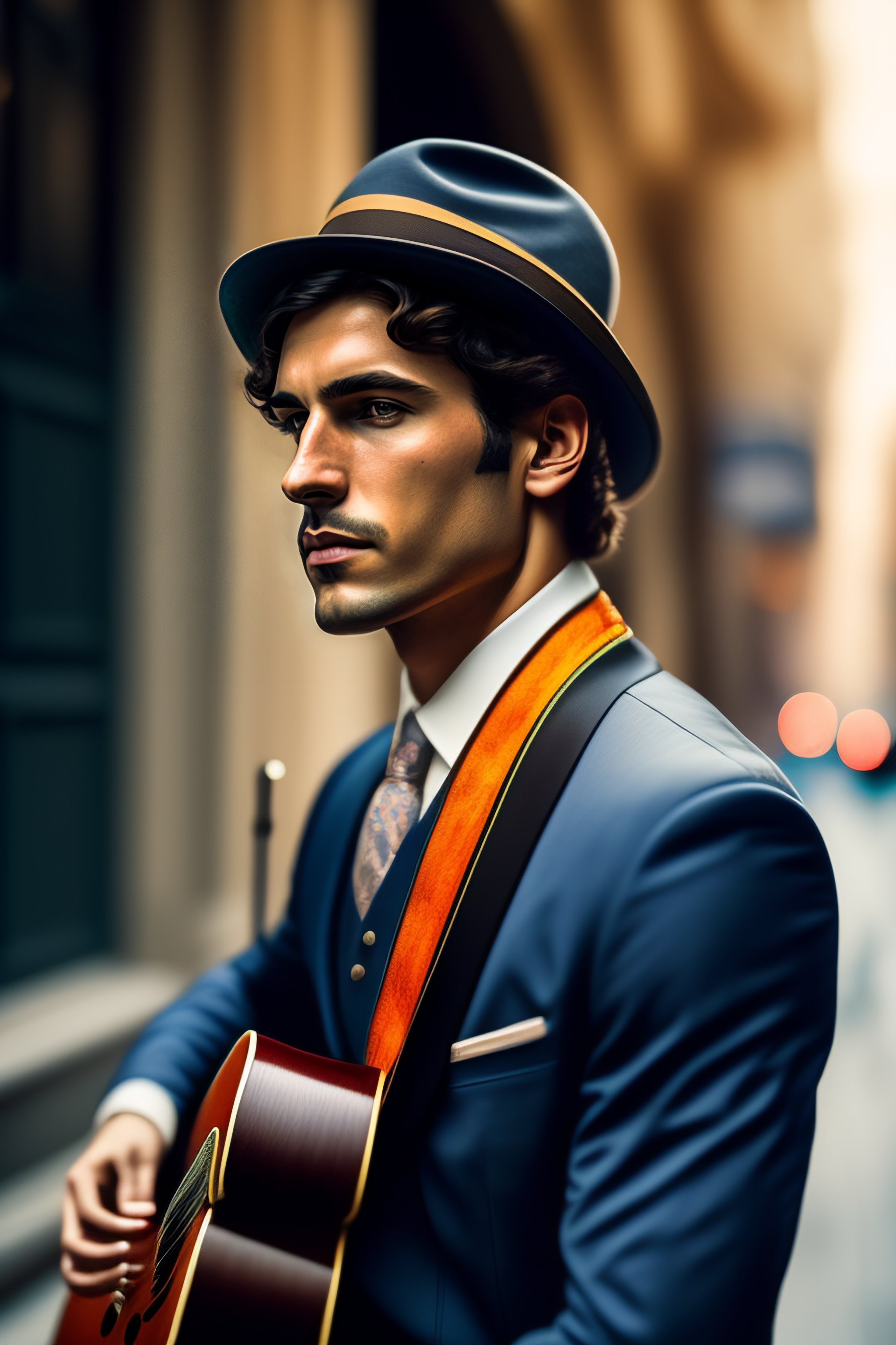 Portrait of a musician in a street