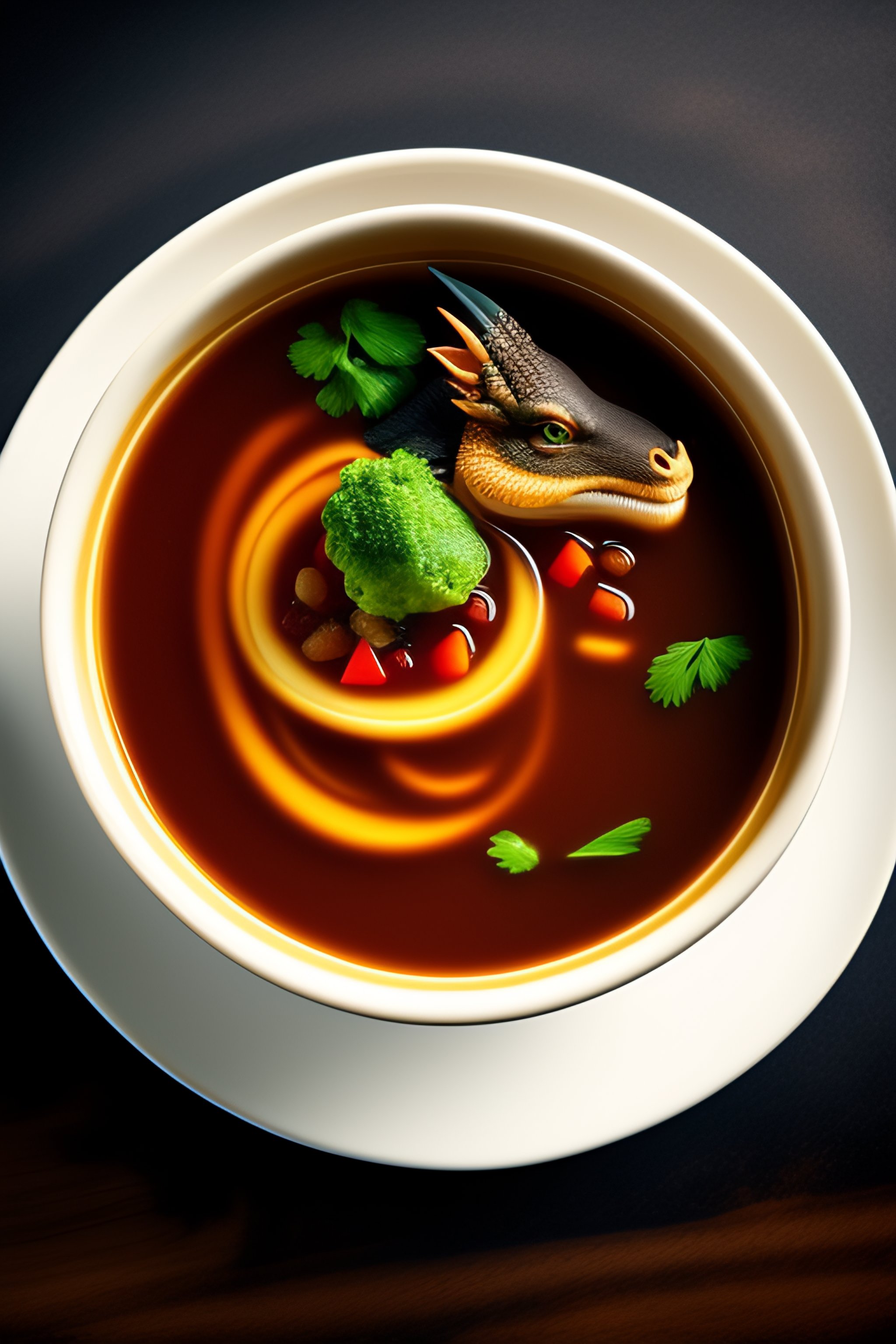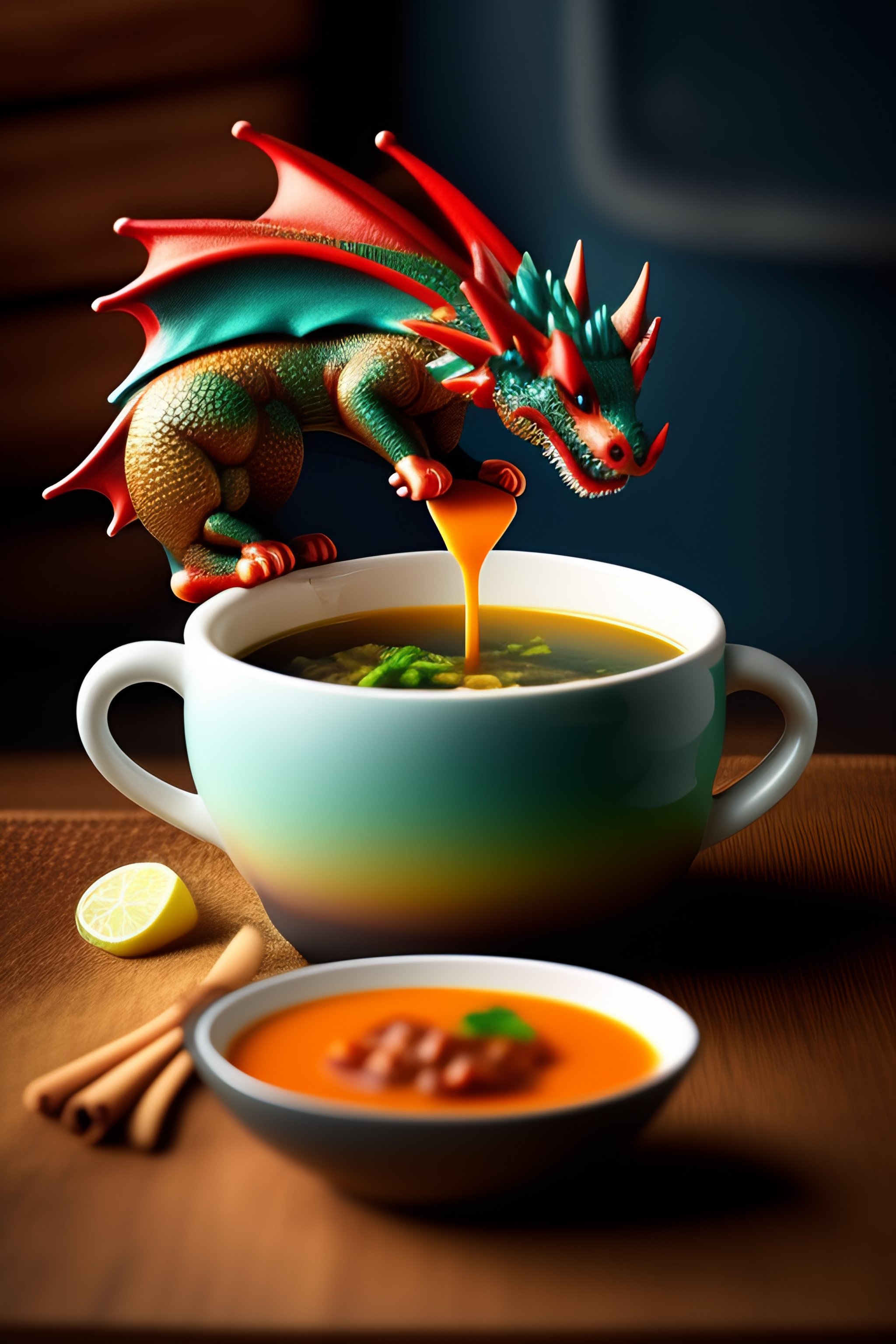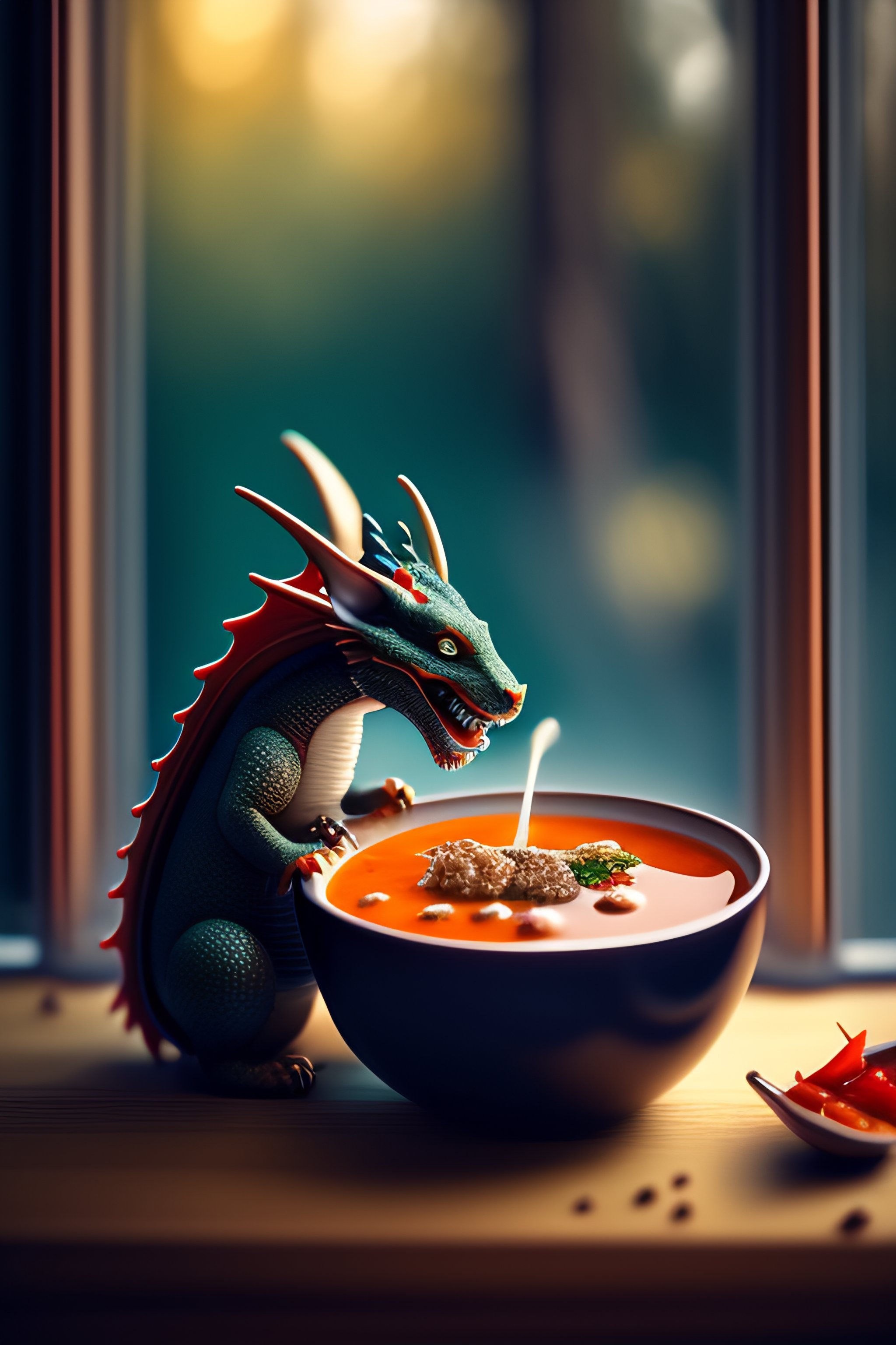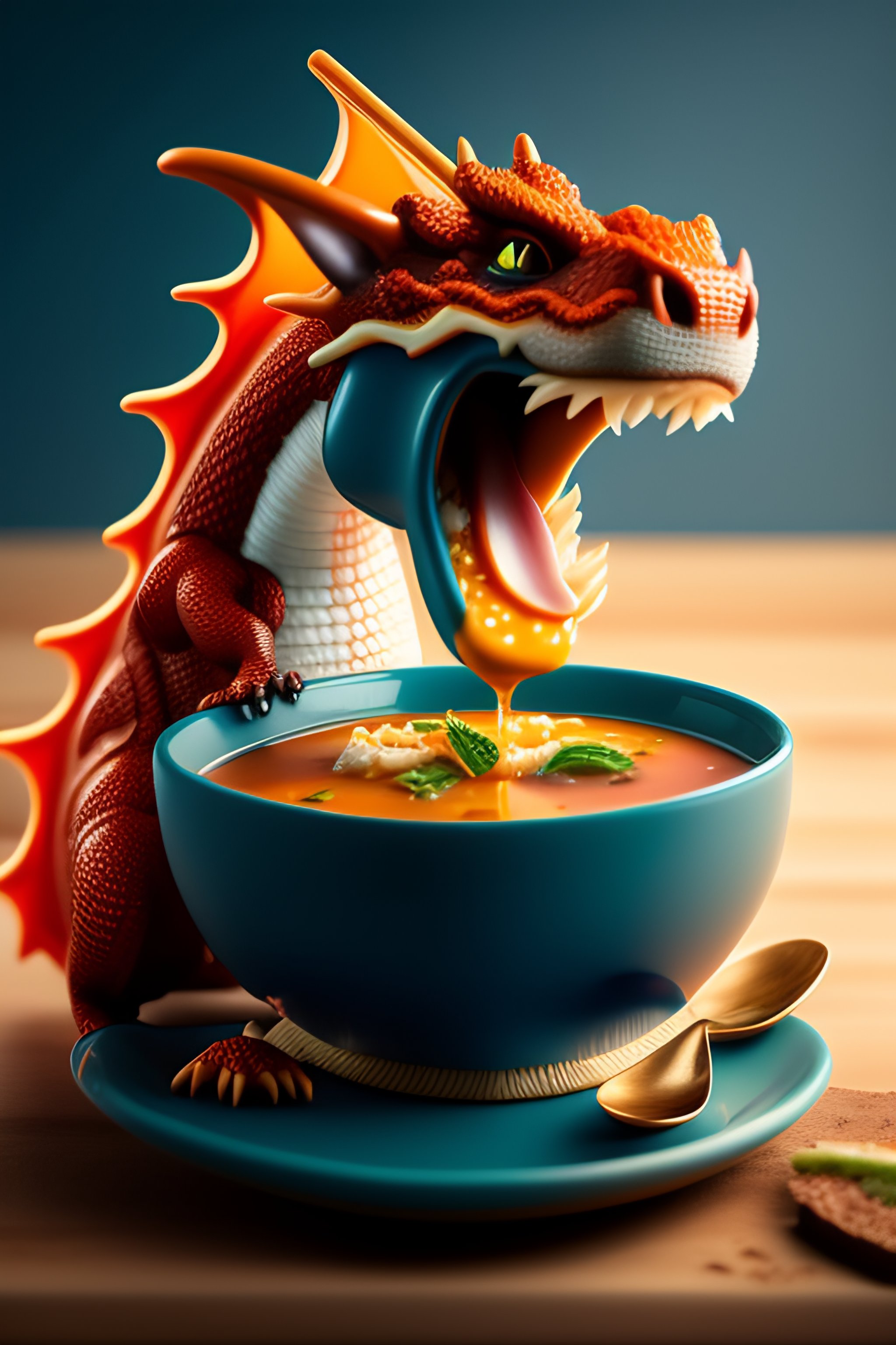 A dragon eating soup