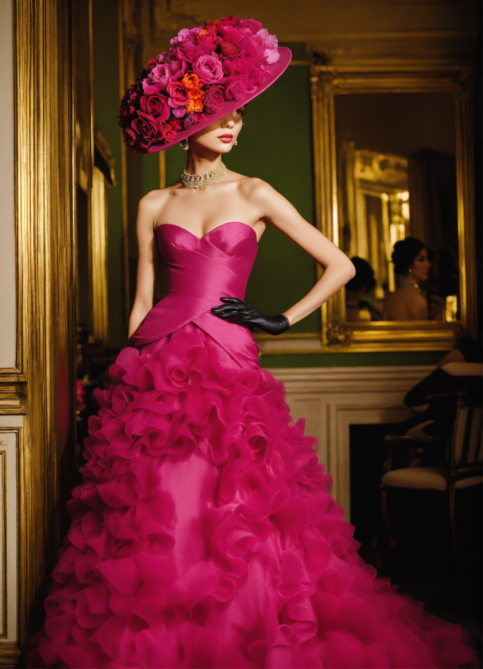 Frills chiffon skirt cloun volumes balloon vulgar fruity fruit fruits floral cictorian country rustic antique chateau old vintage retro cocktail peacock manoir mures stuffy frenchie french gathered gathers skirt castle gold wallpaper loofa flowery rosy colorful walls shabby waves wavy dark ribbons bows fionka satin silk shiny cheap dame madam silhouette big, clustered hat, floral hat, loofa hat, loofa skirt, chiffon skirt, wavy skirt