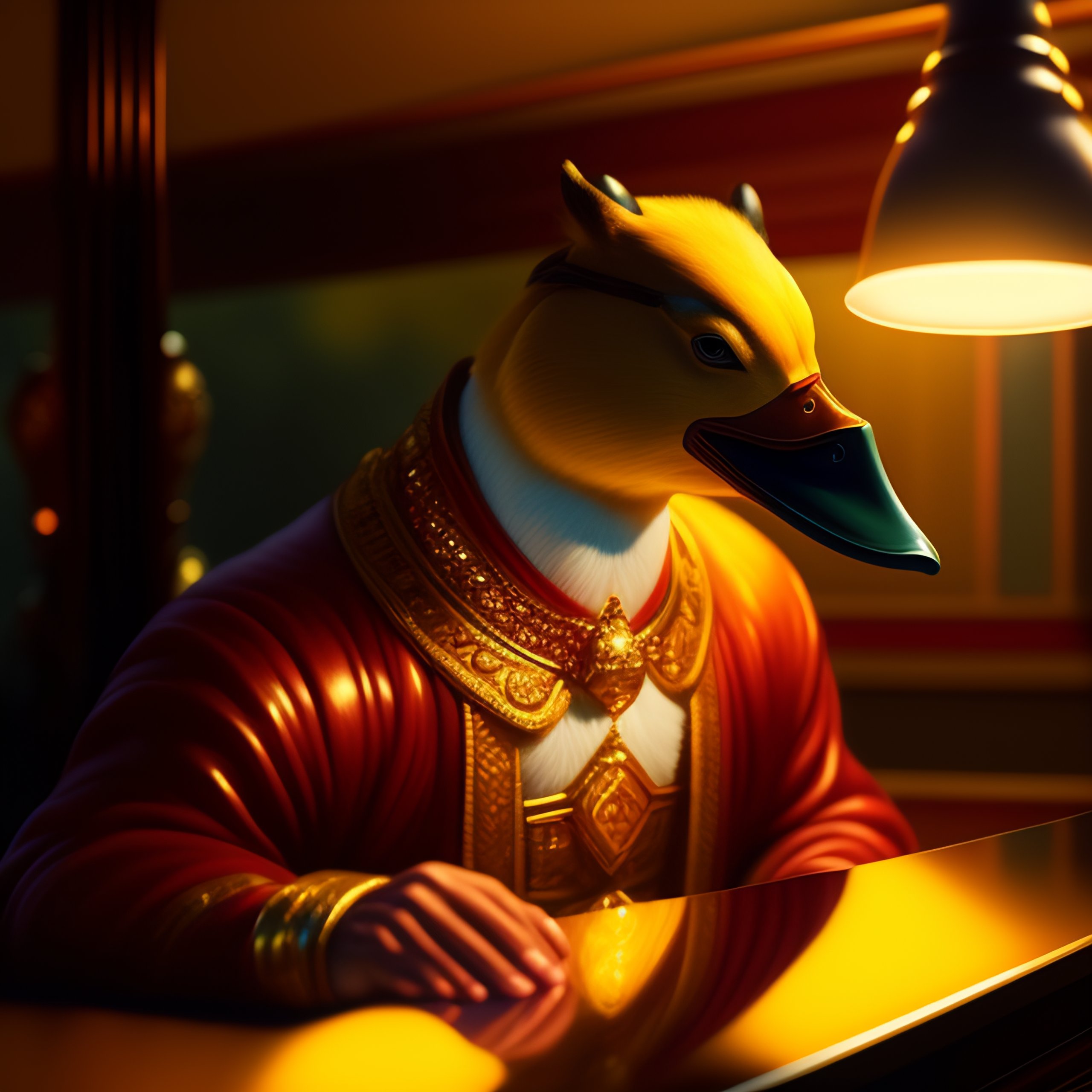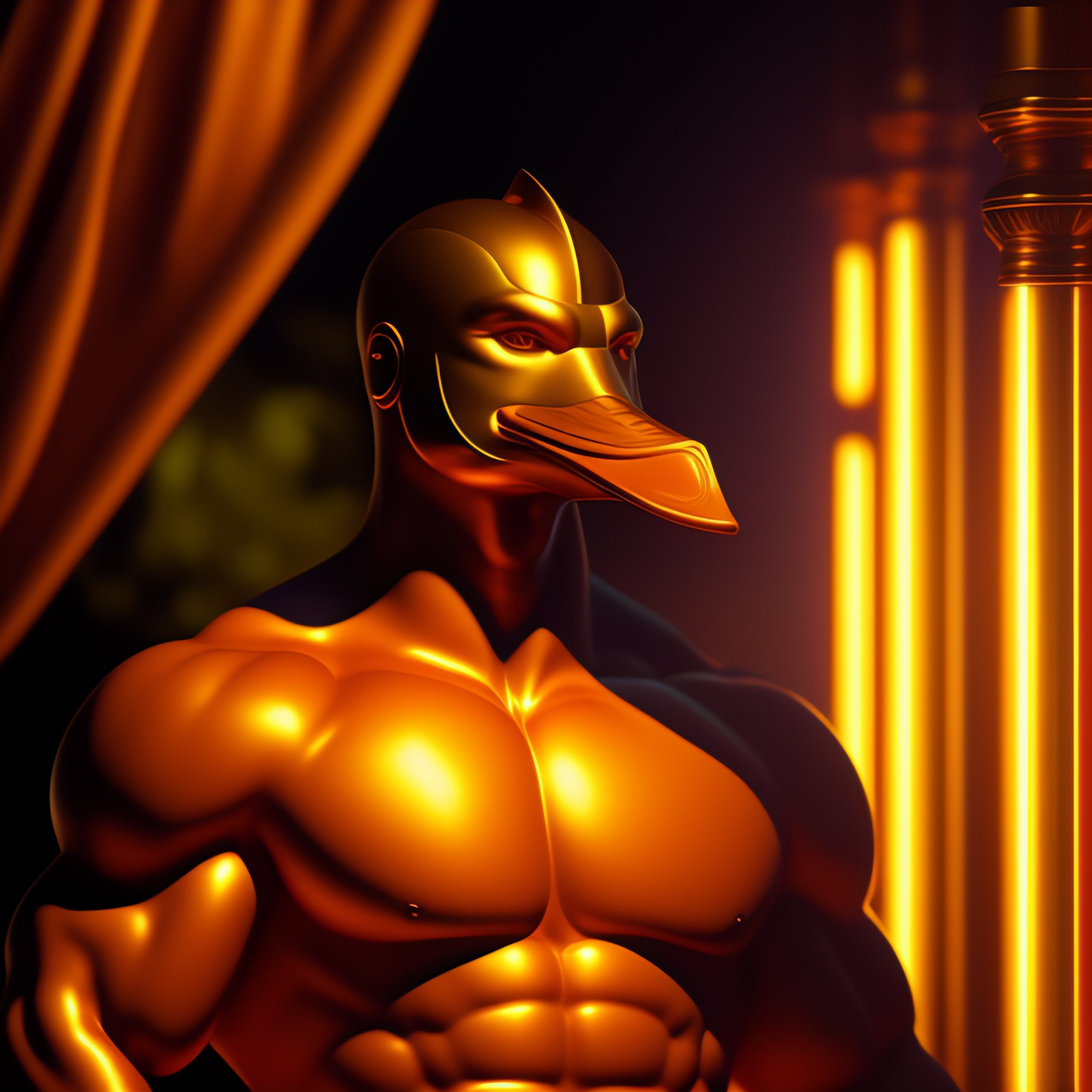 A highly detailed of duck-man epic cinematic concept art cg render digital painting album artwork: a realistic imprint of the inner glow. volumetric lighting open ceiling, highly detailed, painted by francis bacon and edward hopper, painted by james gilliard, surrealism, airbrush, ilya kuvshinov, wlop, stanley artgerm, very coherent, triadic colour scheme