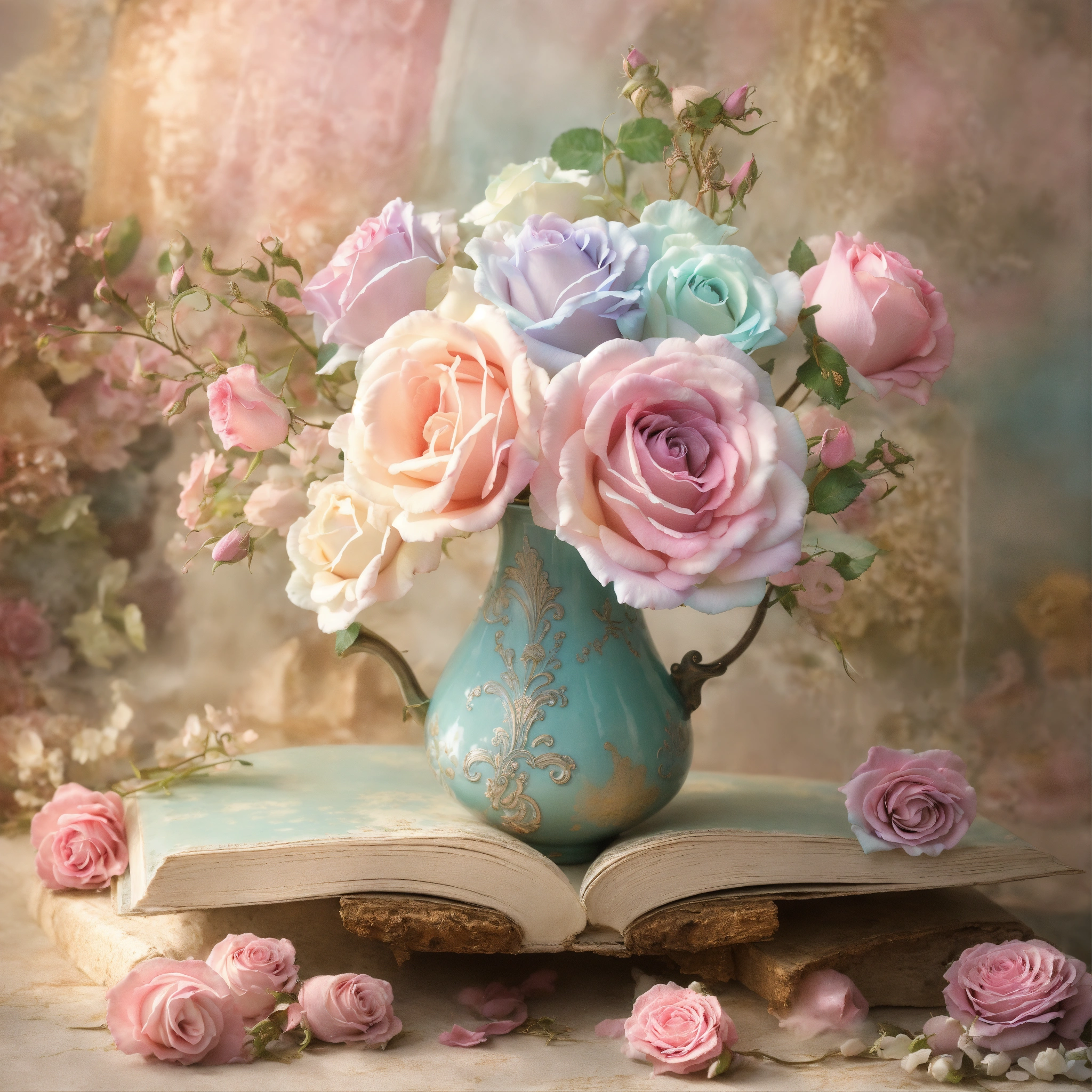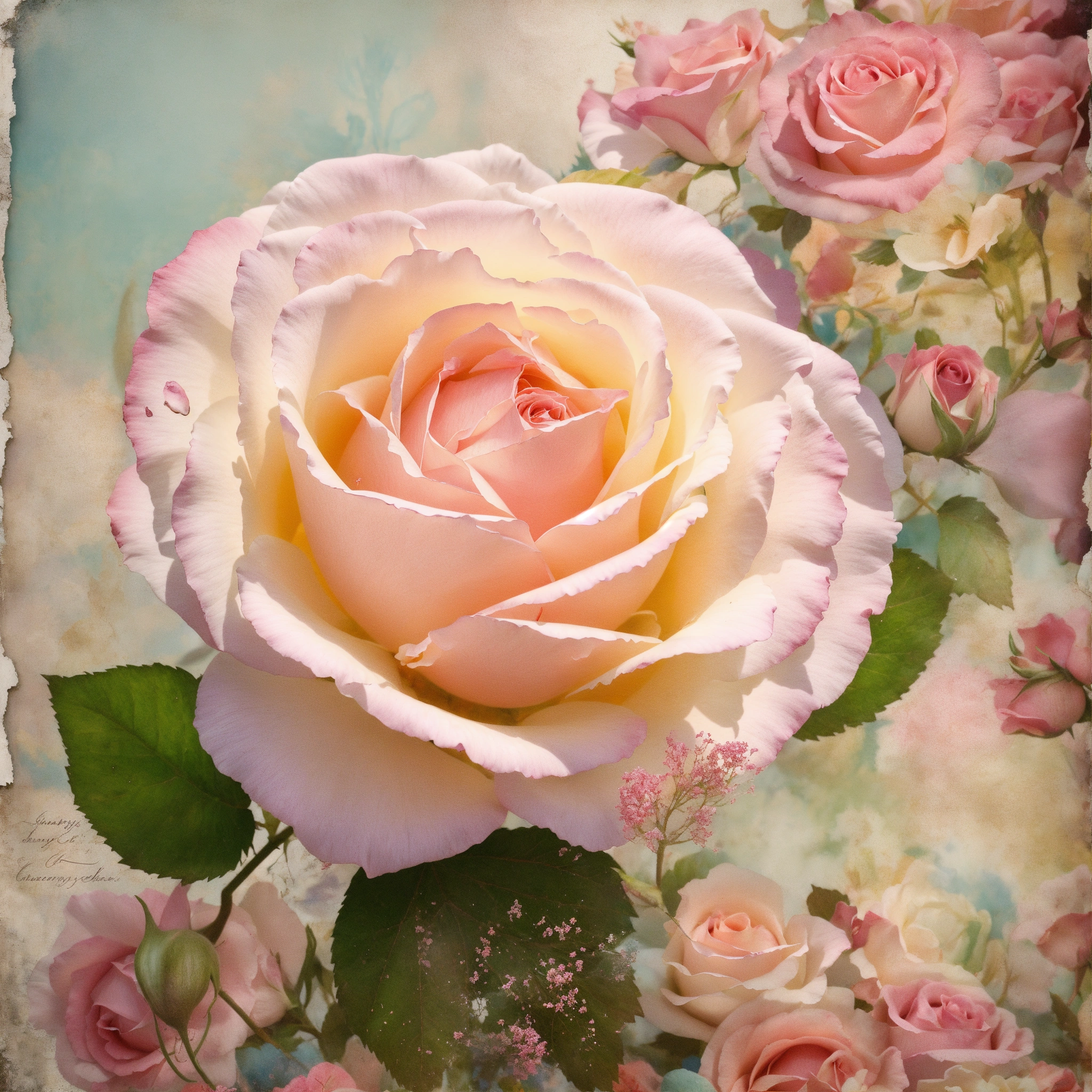 Shabby chic dreamy mist pastel junk journals porcelain rose swirling magical fairytale abstract art style