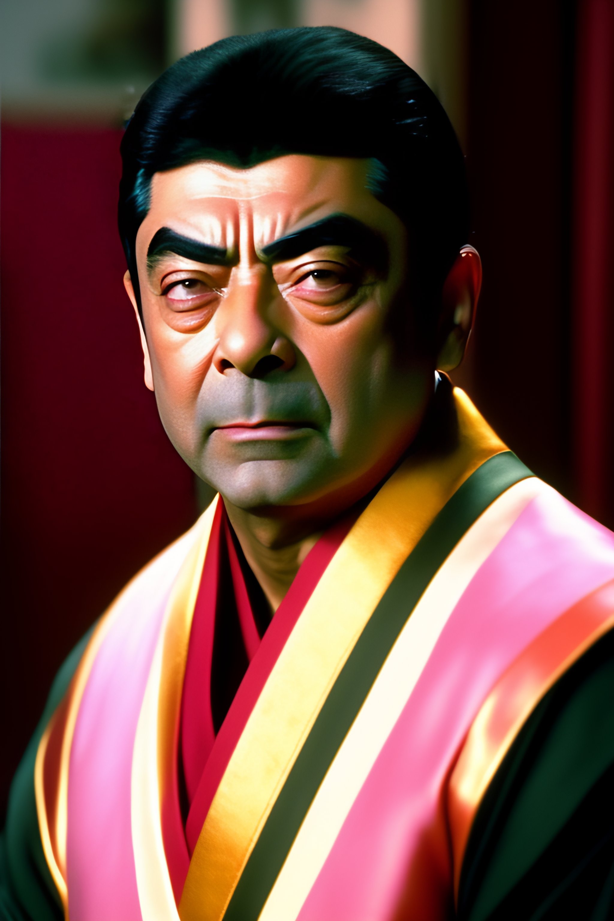 Jiraiya sensei from naruto, live action adaptation, realistic, photograph, played by rowan atkinson, pastel colors