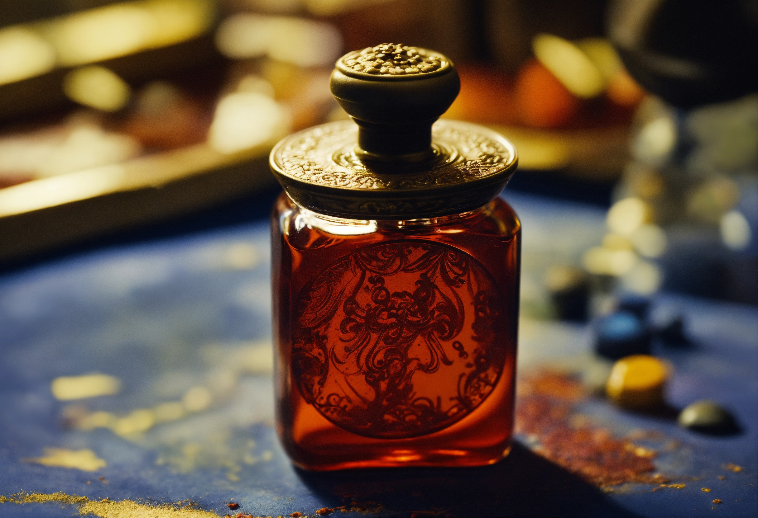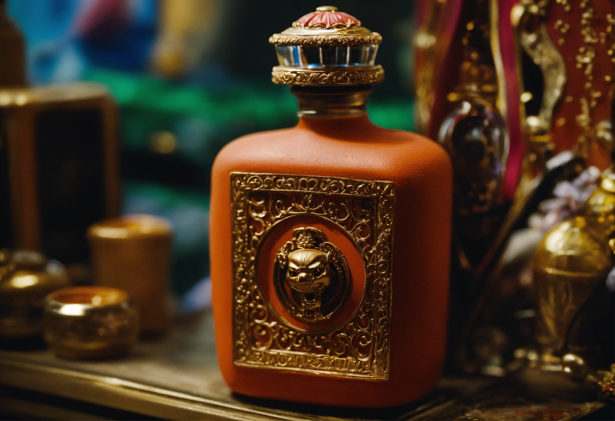 Hand-made modelling clay, close-up view of perfume bottle, terry gilliam, the 12 monkeys movie, universe