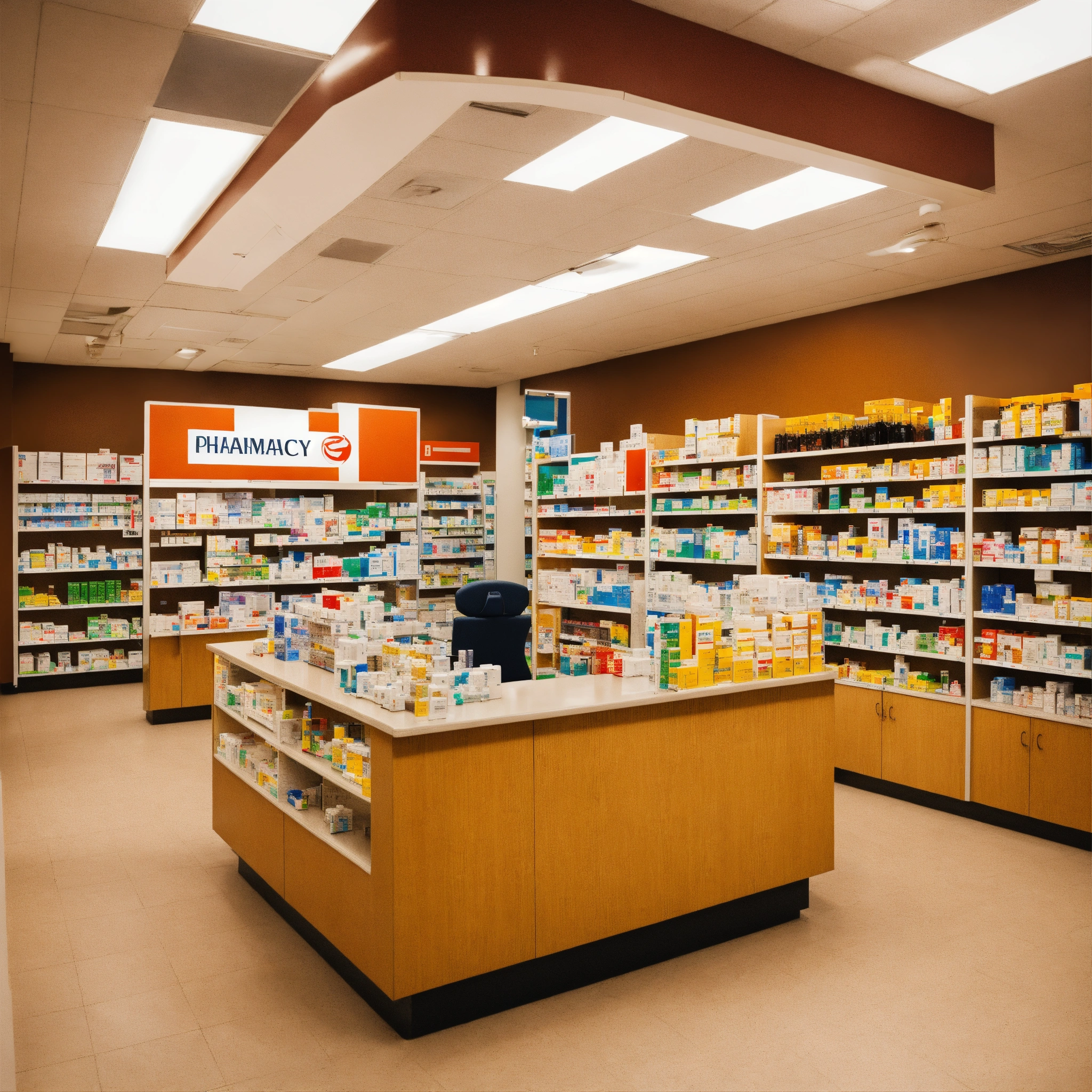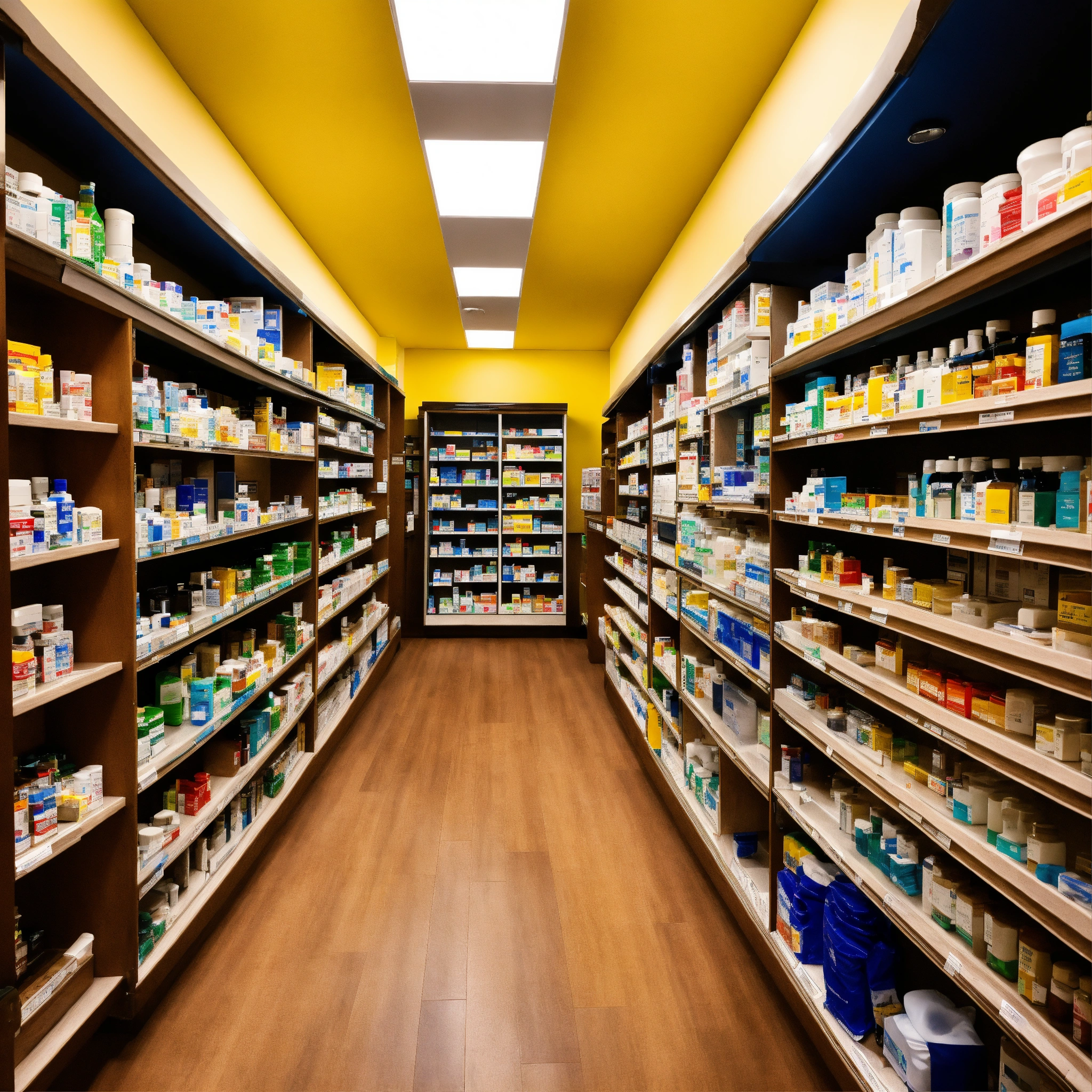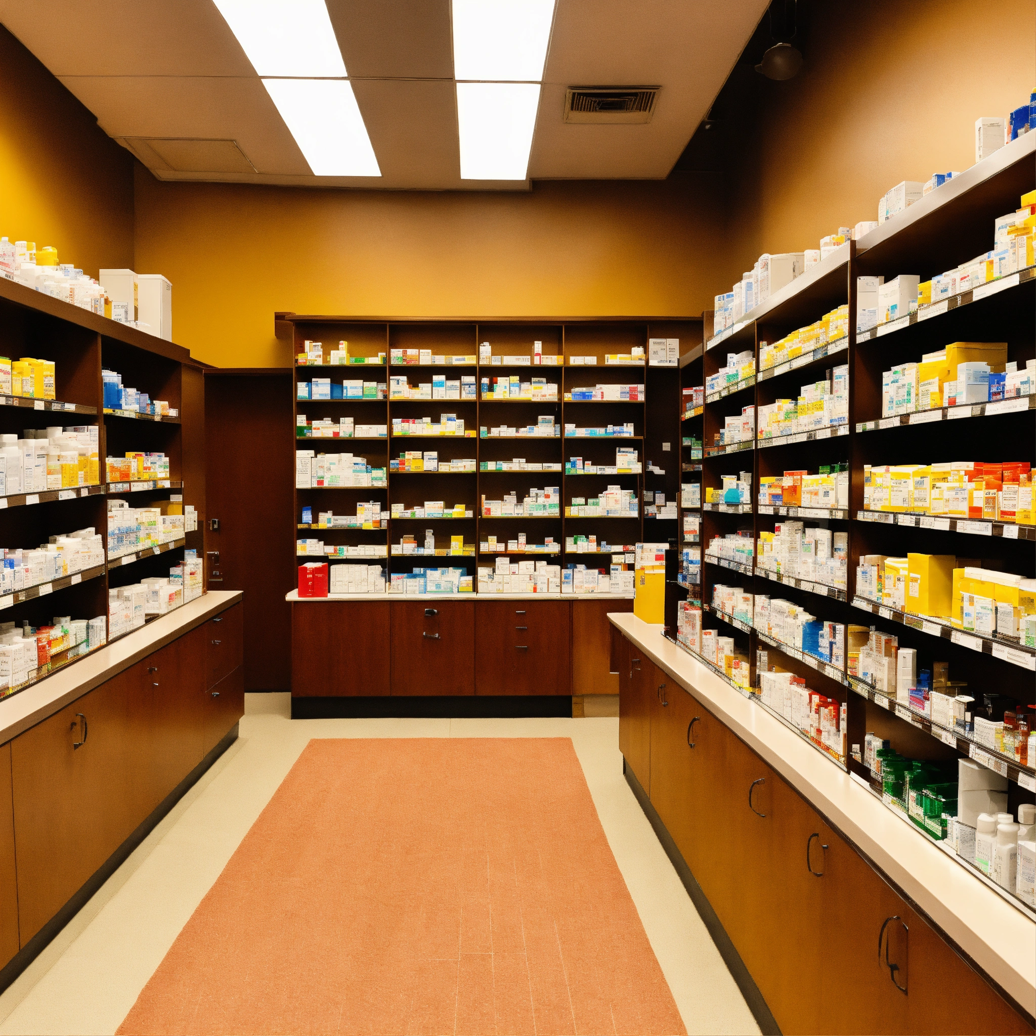 A photo of a pharmacy with a wide range of prescription and non-prescription drugs. the pharmacy is clean and well-organized, and the staff is friendly and helpful.