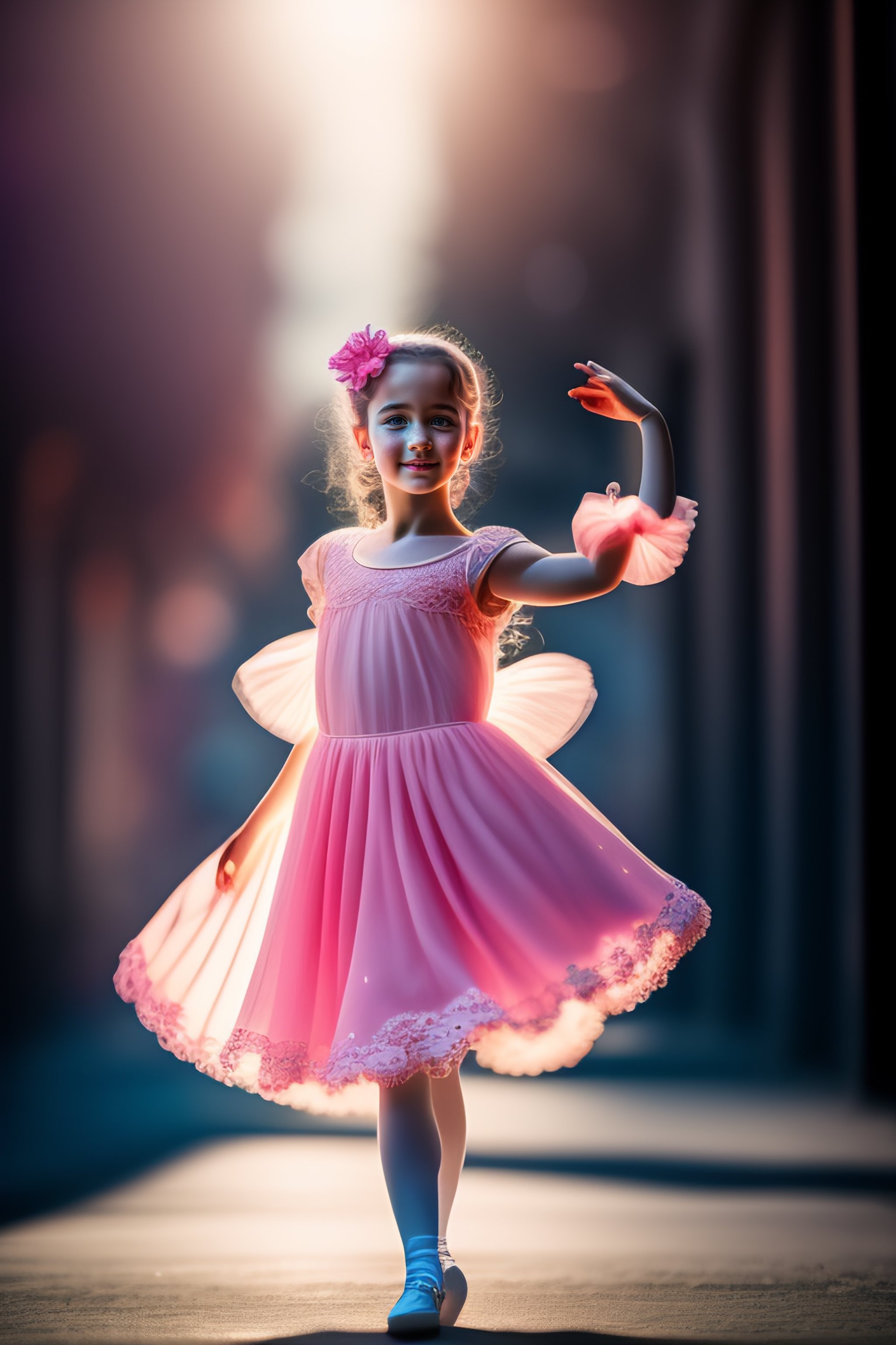 Young balerina dancing, detailed, 35mm, f/2.8, 4k, photojournalism, busy background, volumetric lighting, art photography, real colors, desaturated