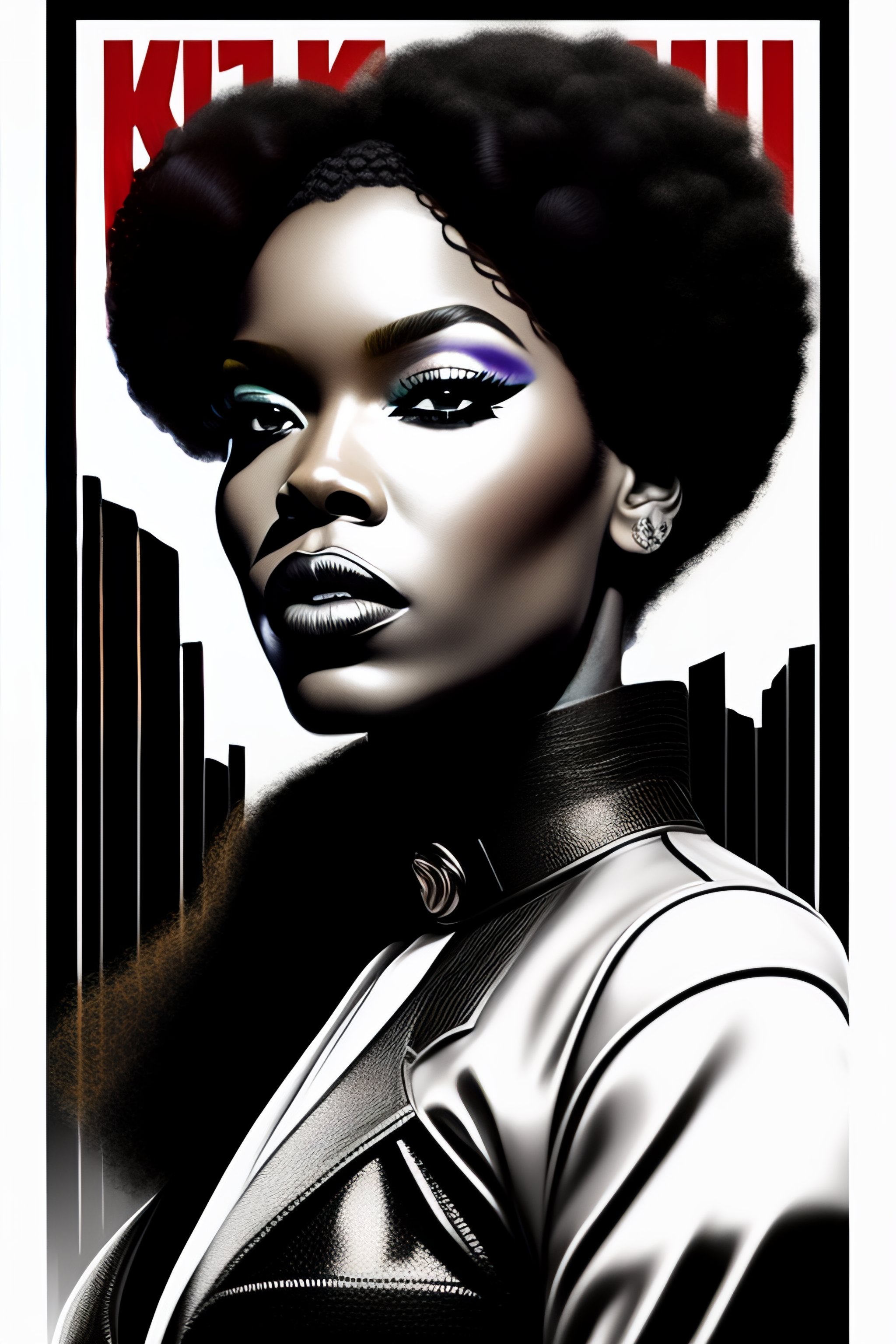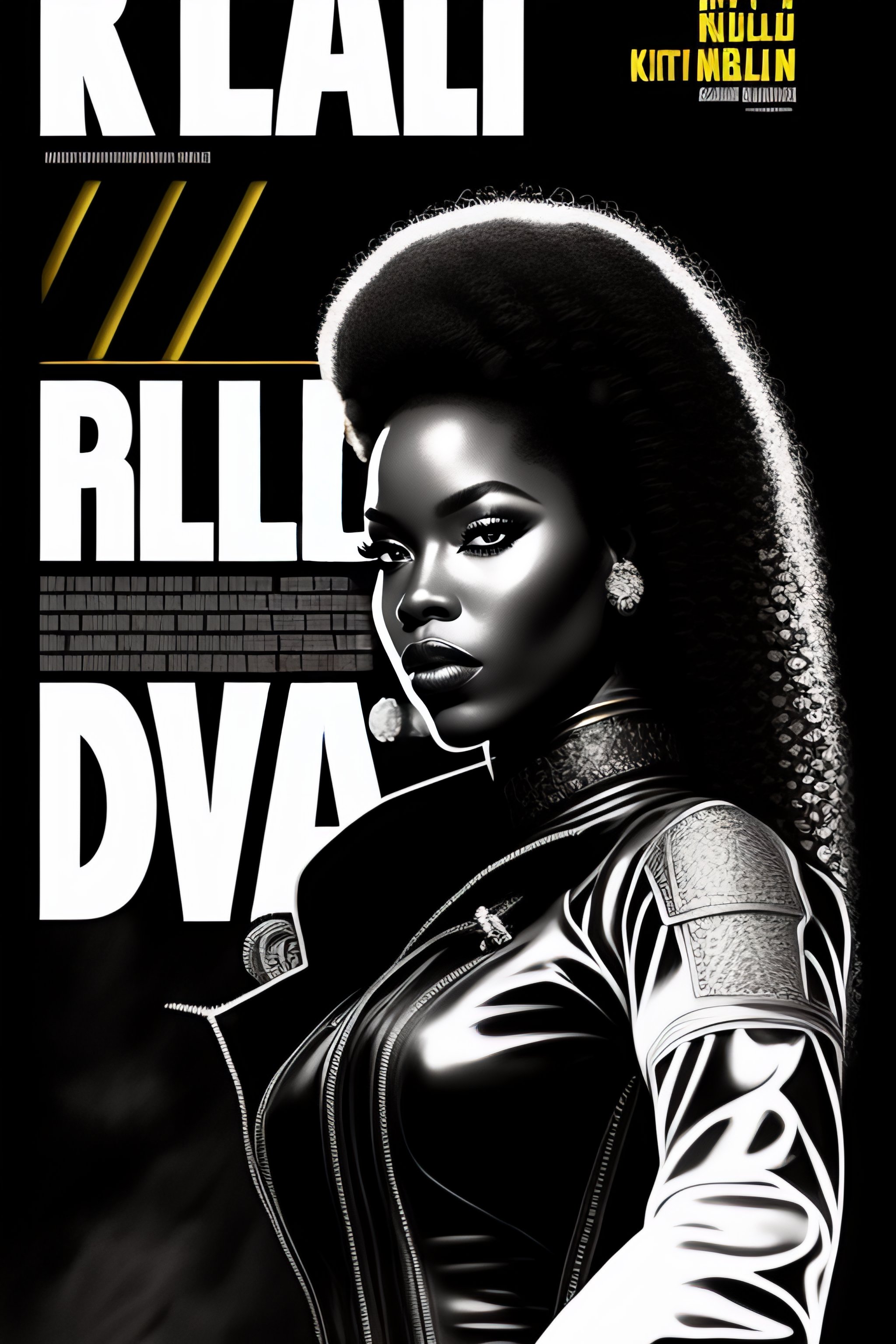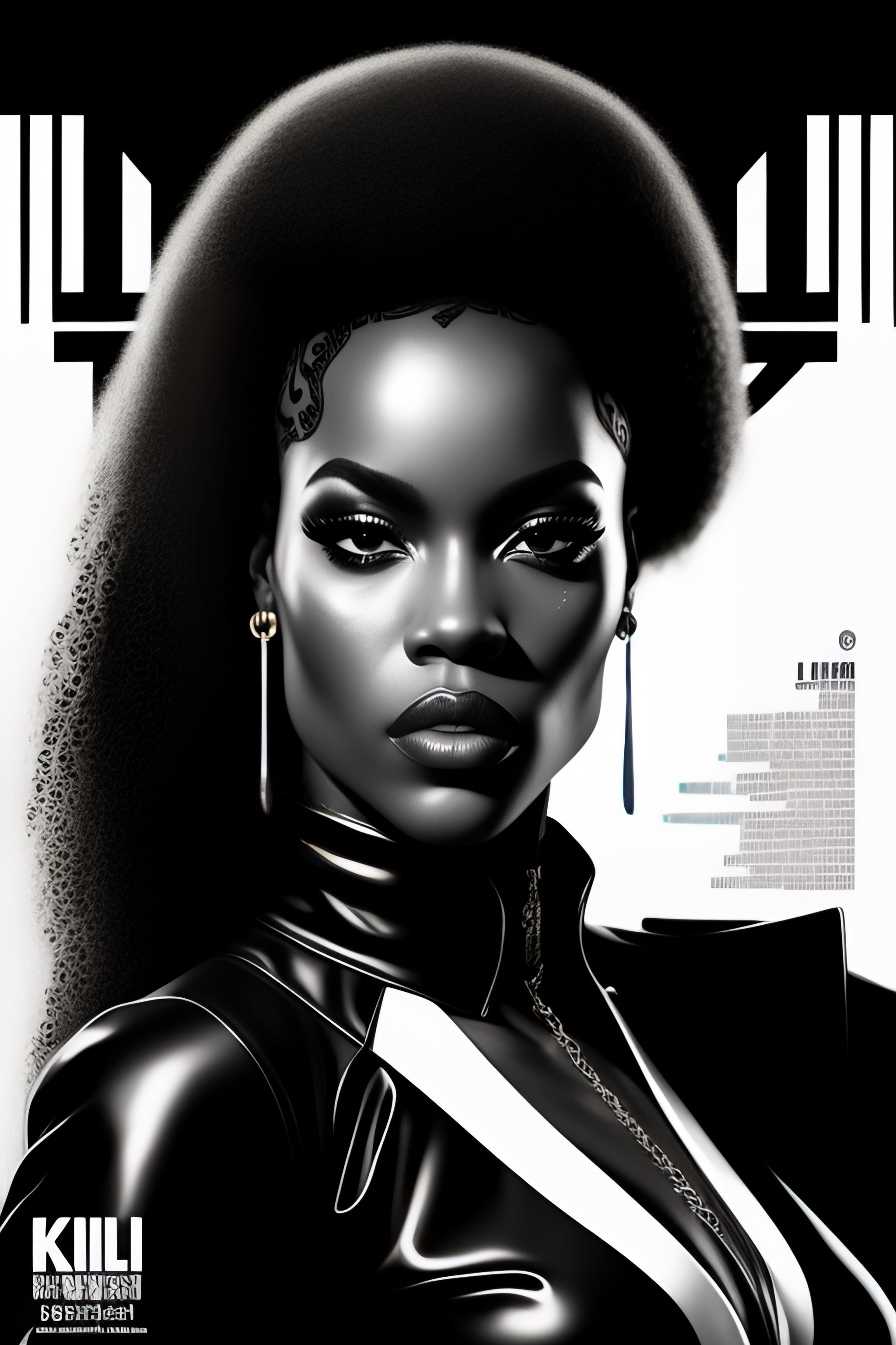 Kill bill inspired, disco club, black woman with afro black panther party, mercenaryu, retro cover, high details, intricate details 60s, inking, black and white color