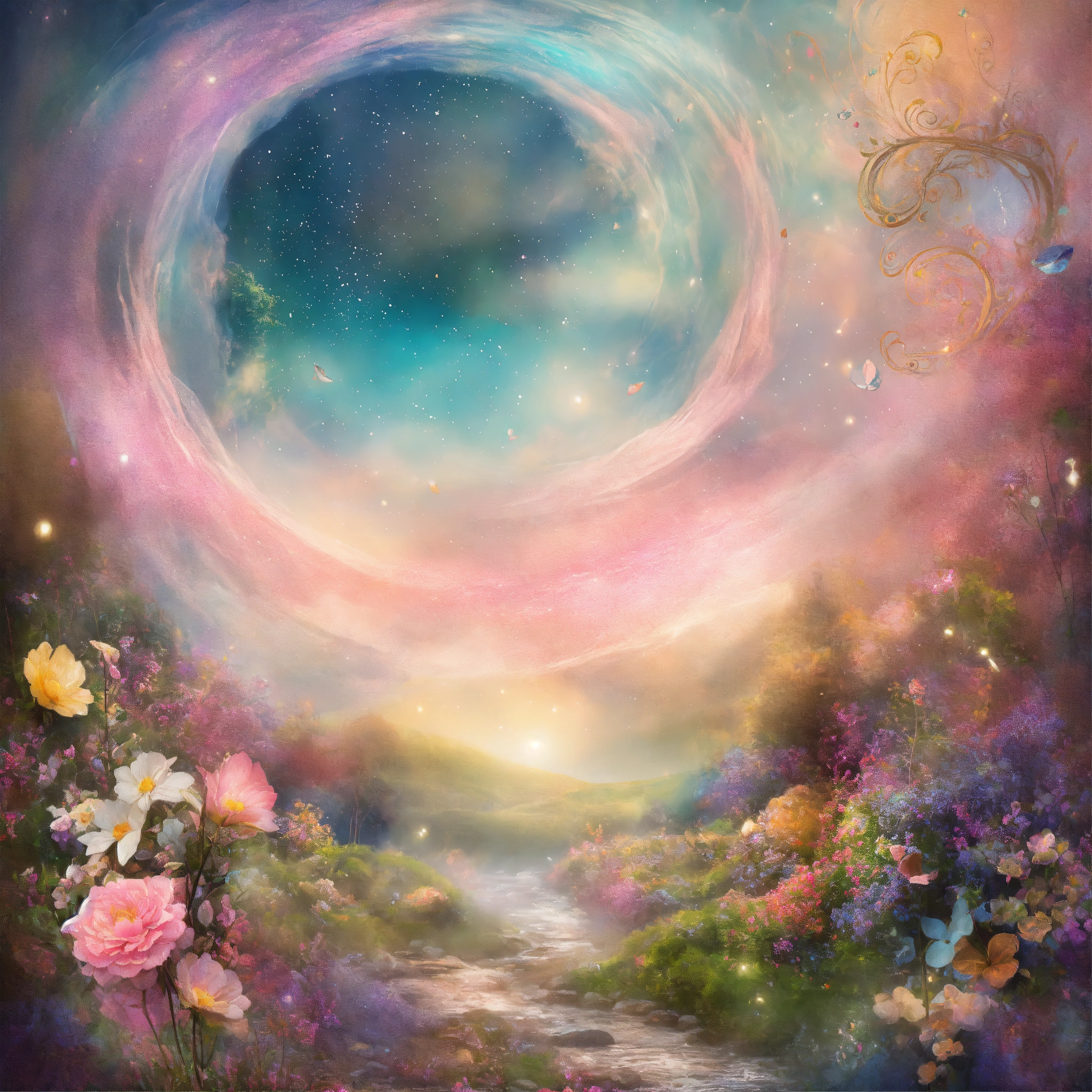 Shabby chic dreamy mist pastel junk journals wormhole swirling magical fairytale abstract art style