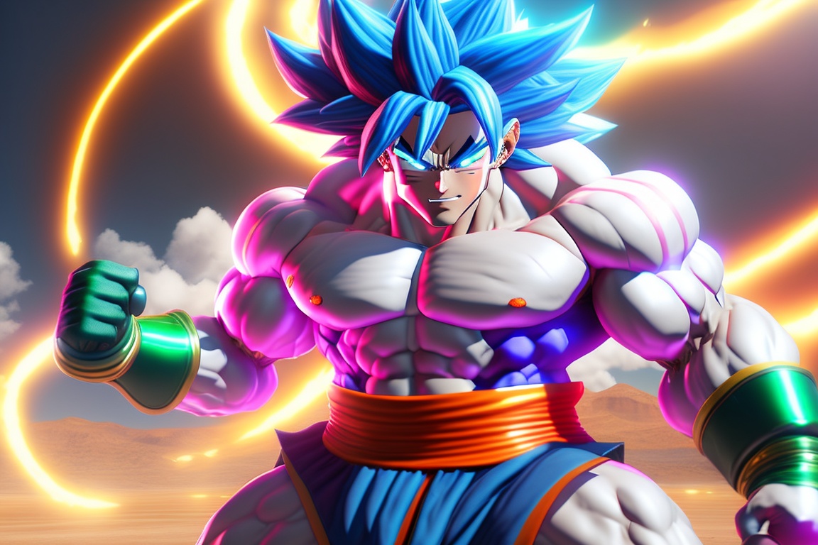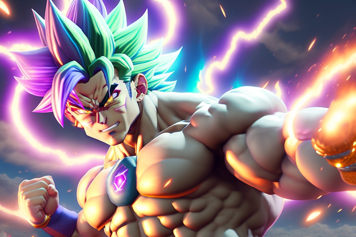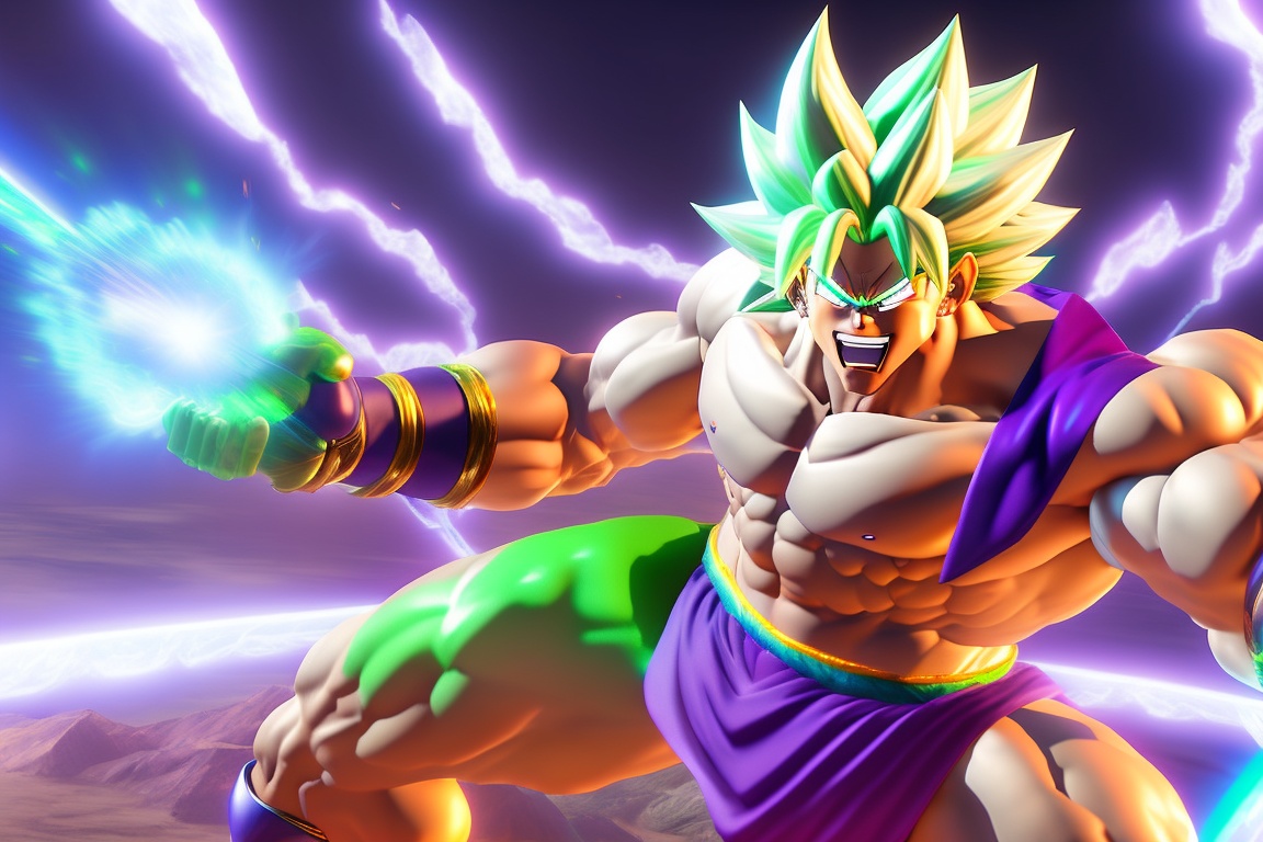 Broly angry and fight goku ultra instinct with kamehameha in planet, anime, insanely detailed, perfect light, hyper-, ultra hd, unreal engine, 8k, white balance --v 4