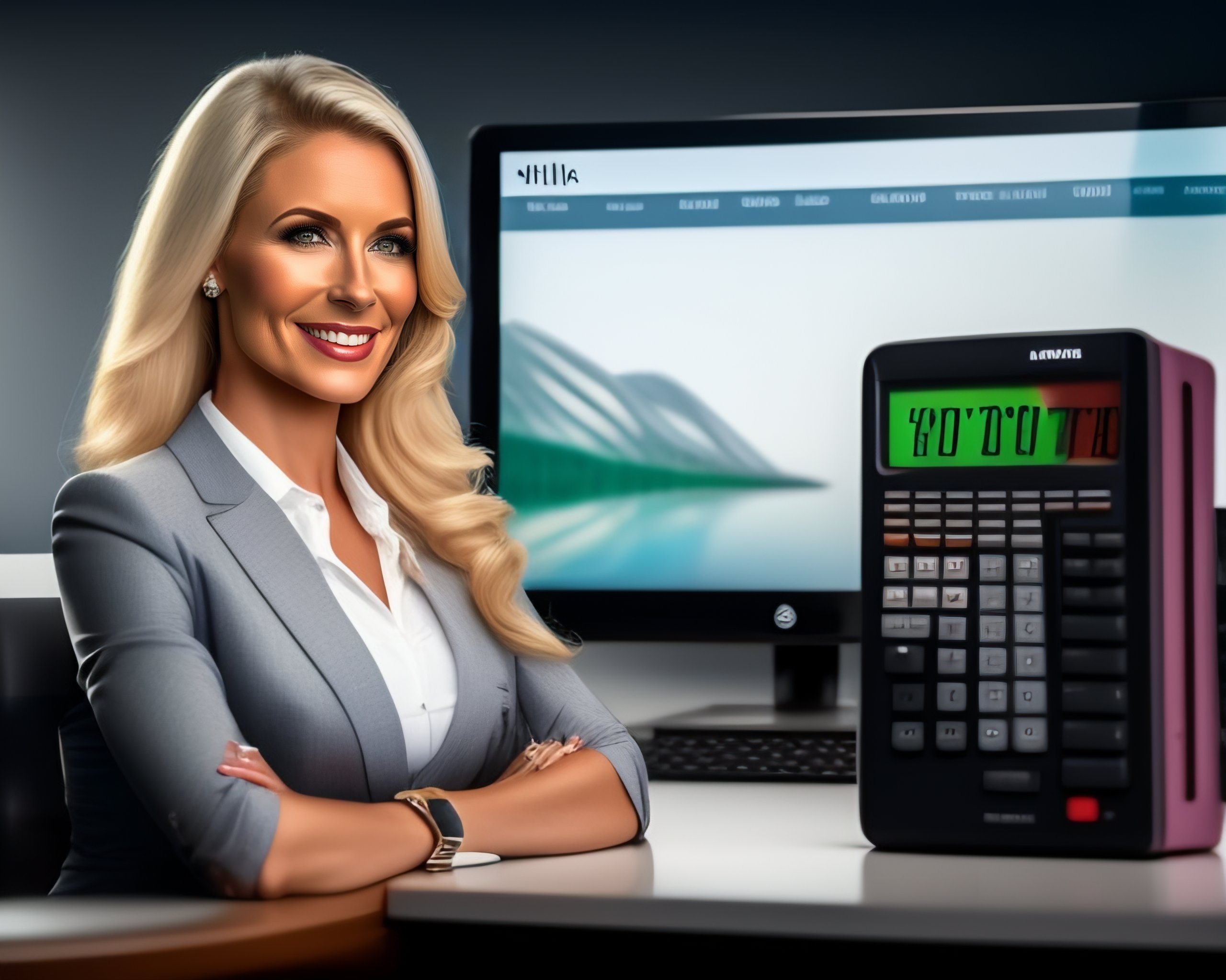 calculator in her right hand