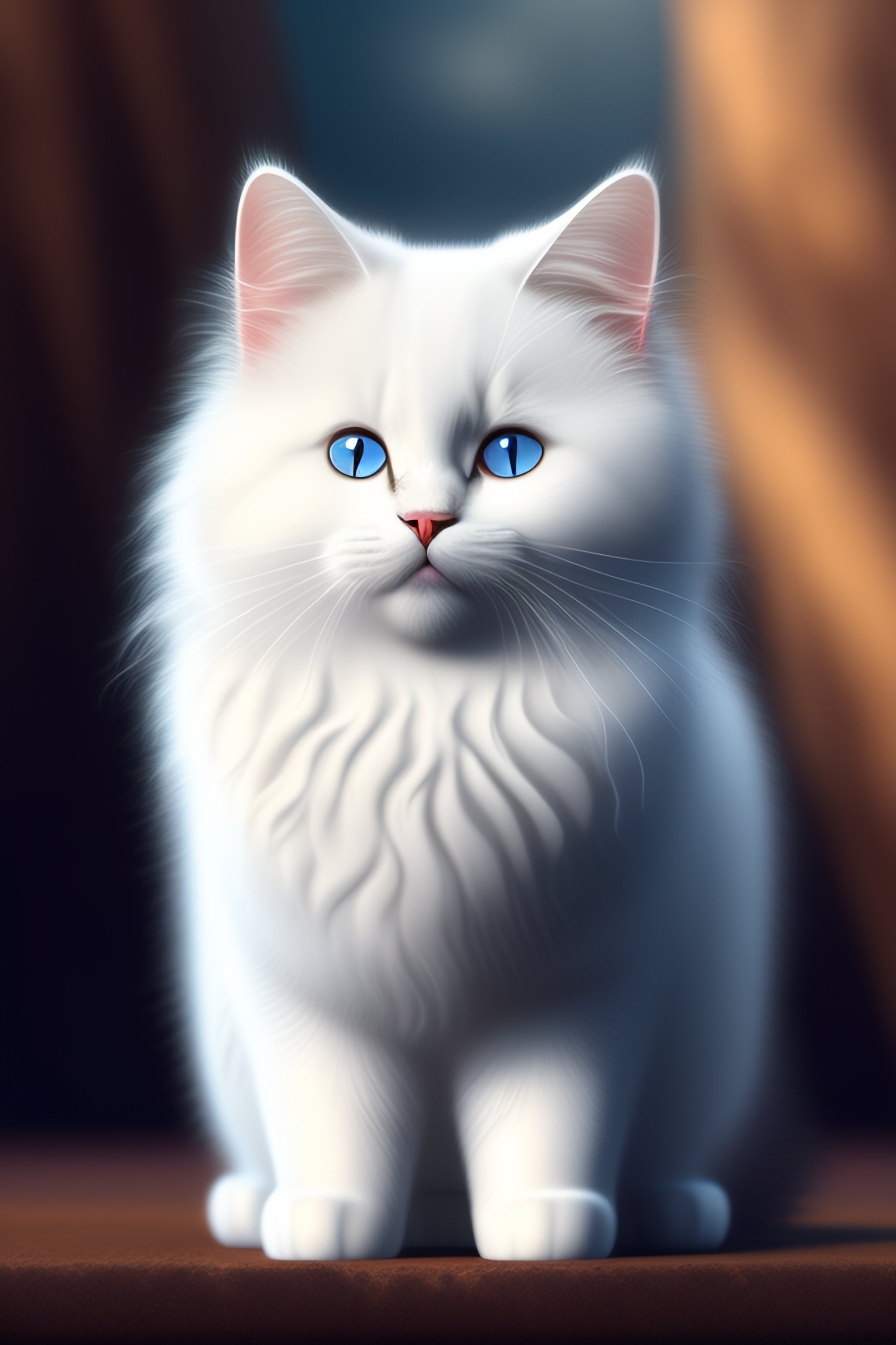 A fluffy cute white cat