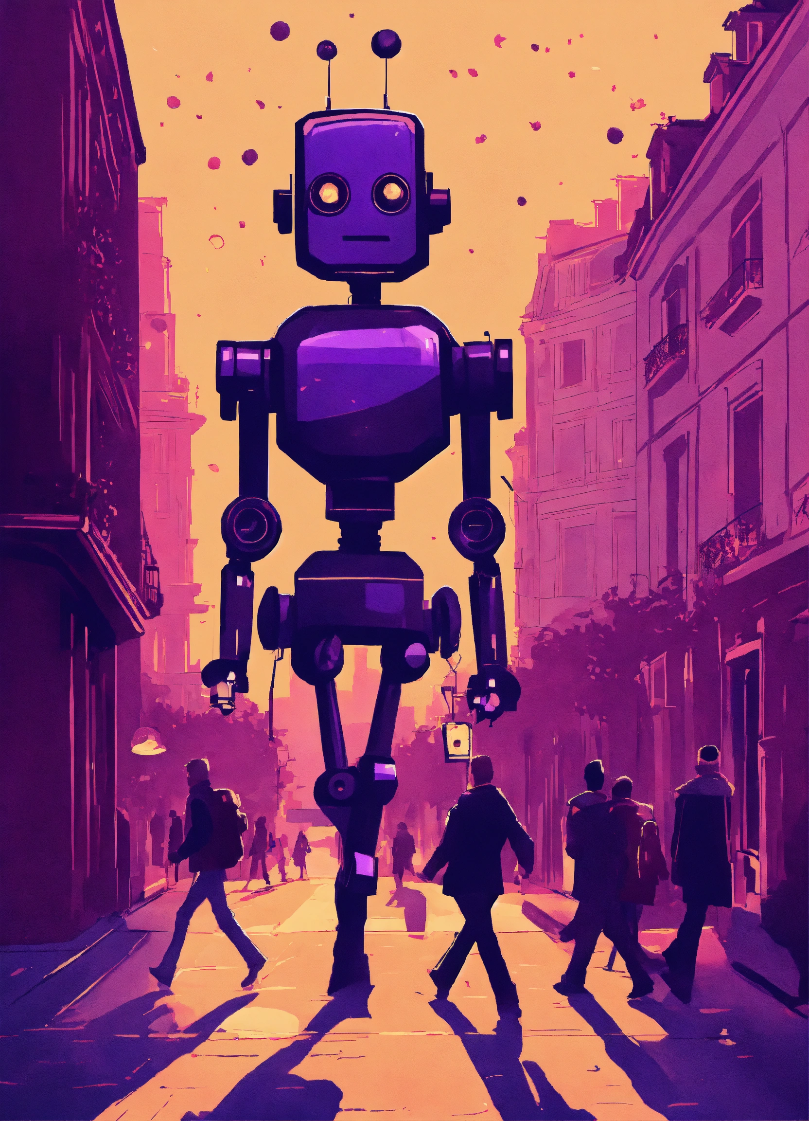 robots walking with humans happy