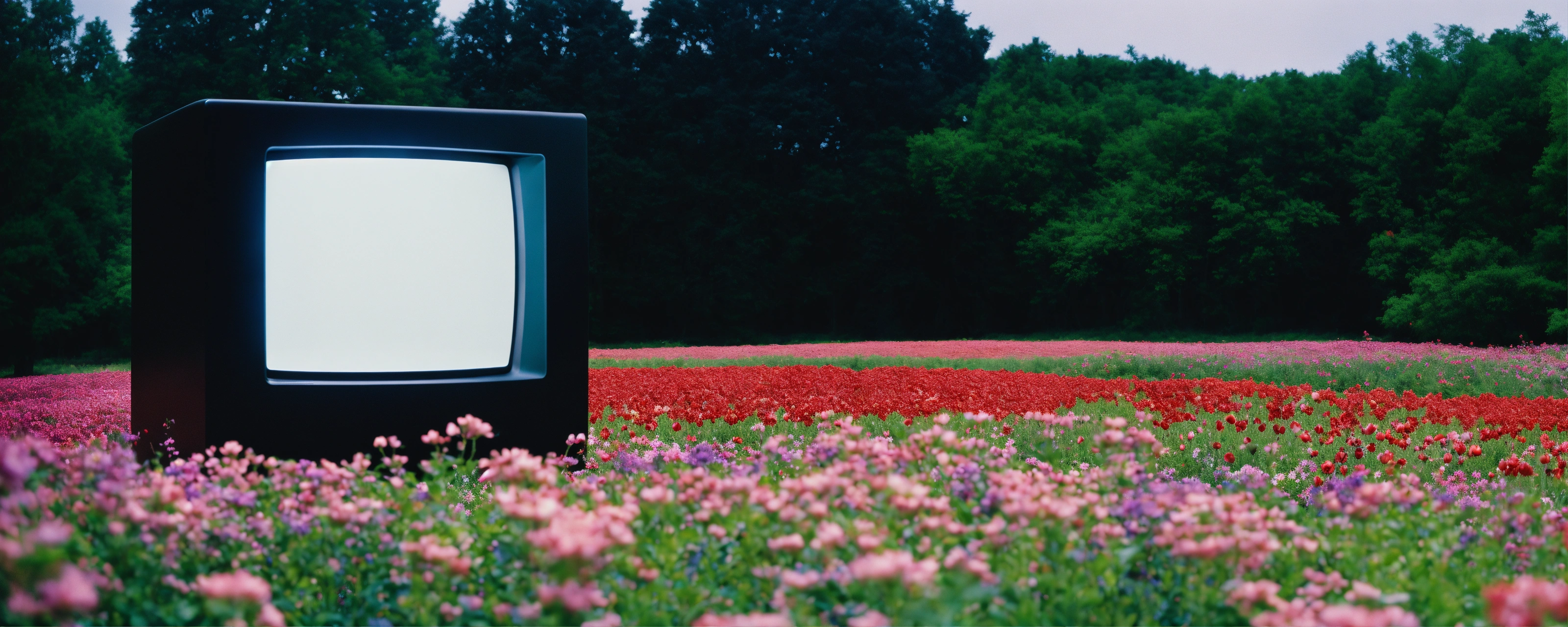 A giant retro apple computer monolith in a field of flowers, wide angle, perfect lighting, leica summicron 35mm f2.0, kodak portra 400, film grain