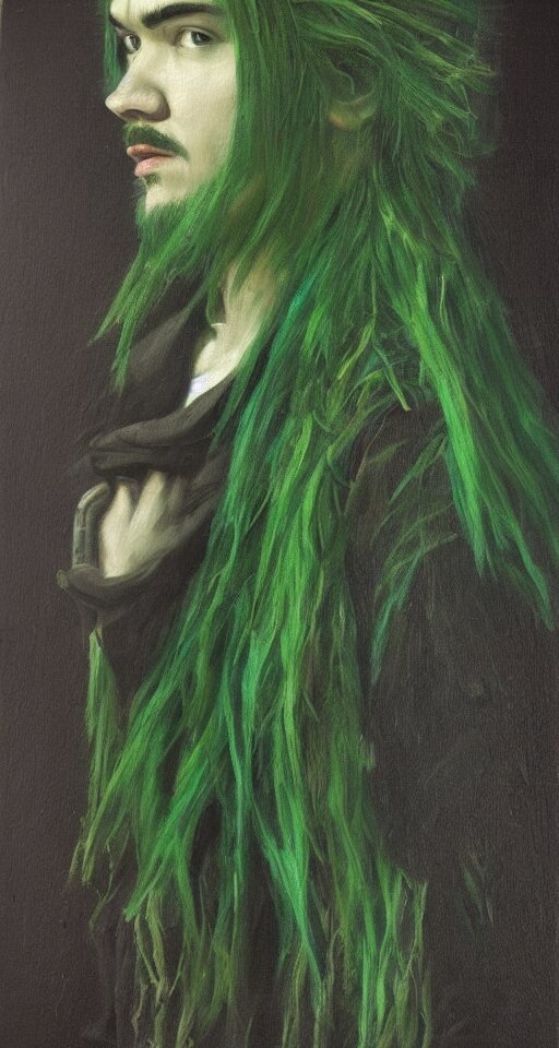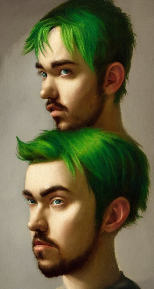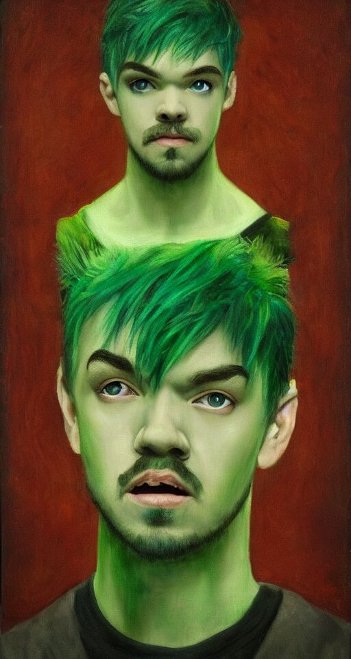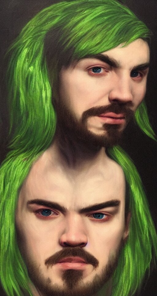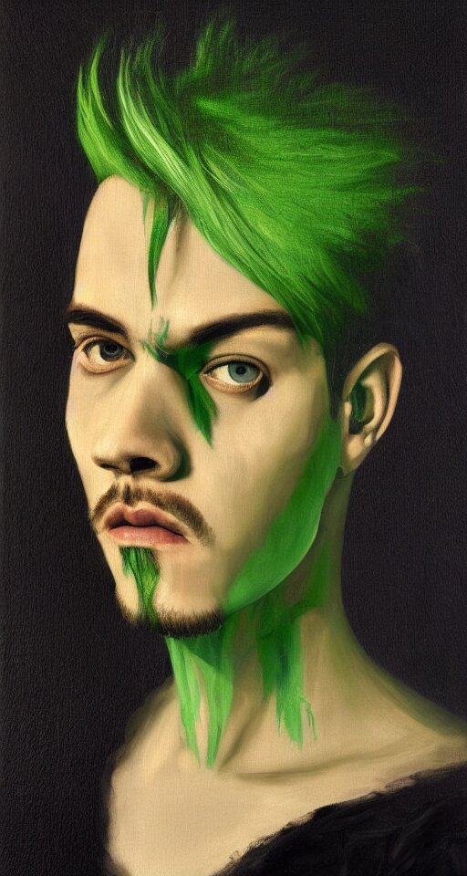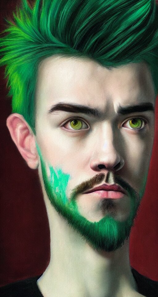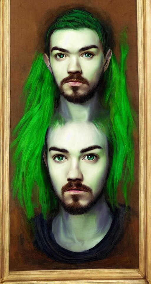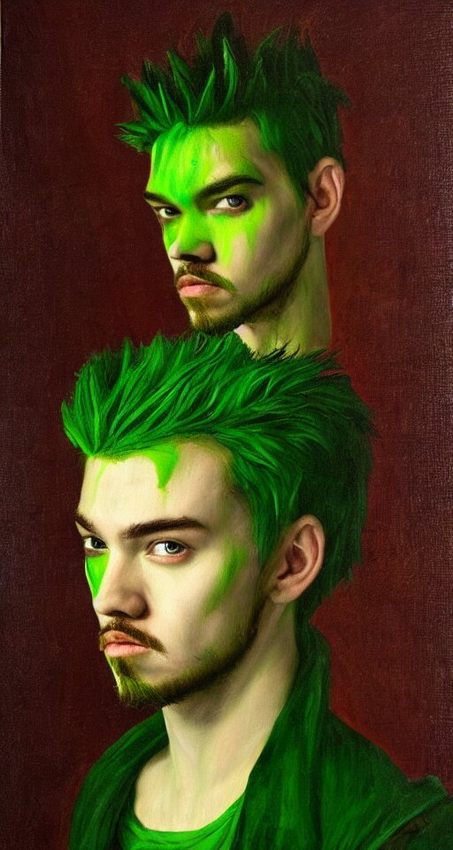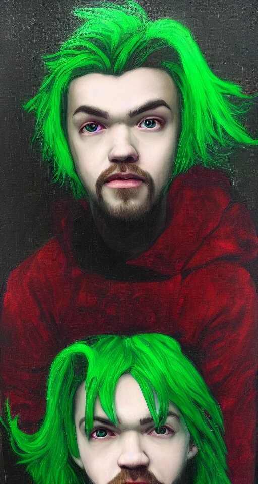Jacksepticeye with dyed green hair renaissance portrait painting
