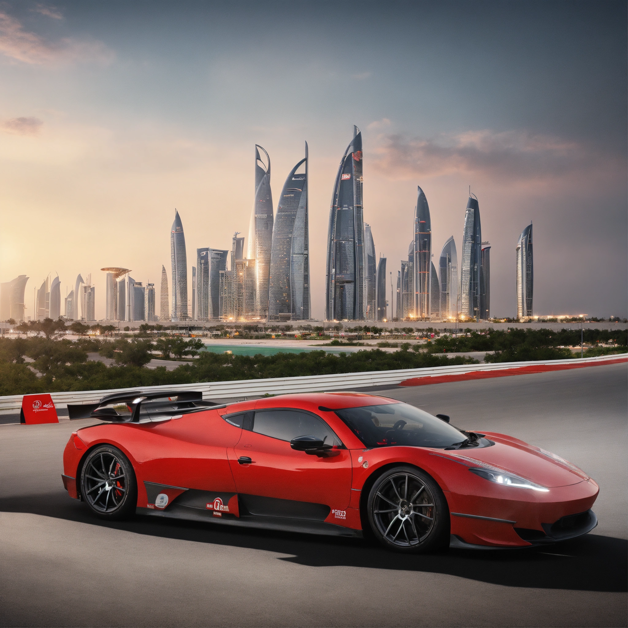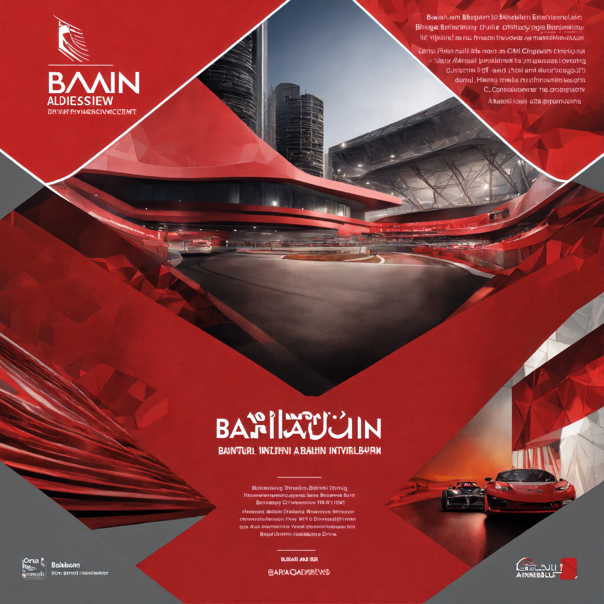 Create a visually captivating cover page for the "bahrain international circuit drive up program" poster, featuring a modern red and gray color scheme. display a bold, white program title at the top, followed by a concise program overview. include the bahrain international circuit, incorporate images of diverse interns students engaged in professional activities, and subtly integrate a bahraini cultural motif. ensure all elements are high-resolution for a professional and enticing design that represents talent development and local community growth.