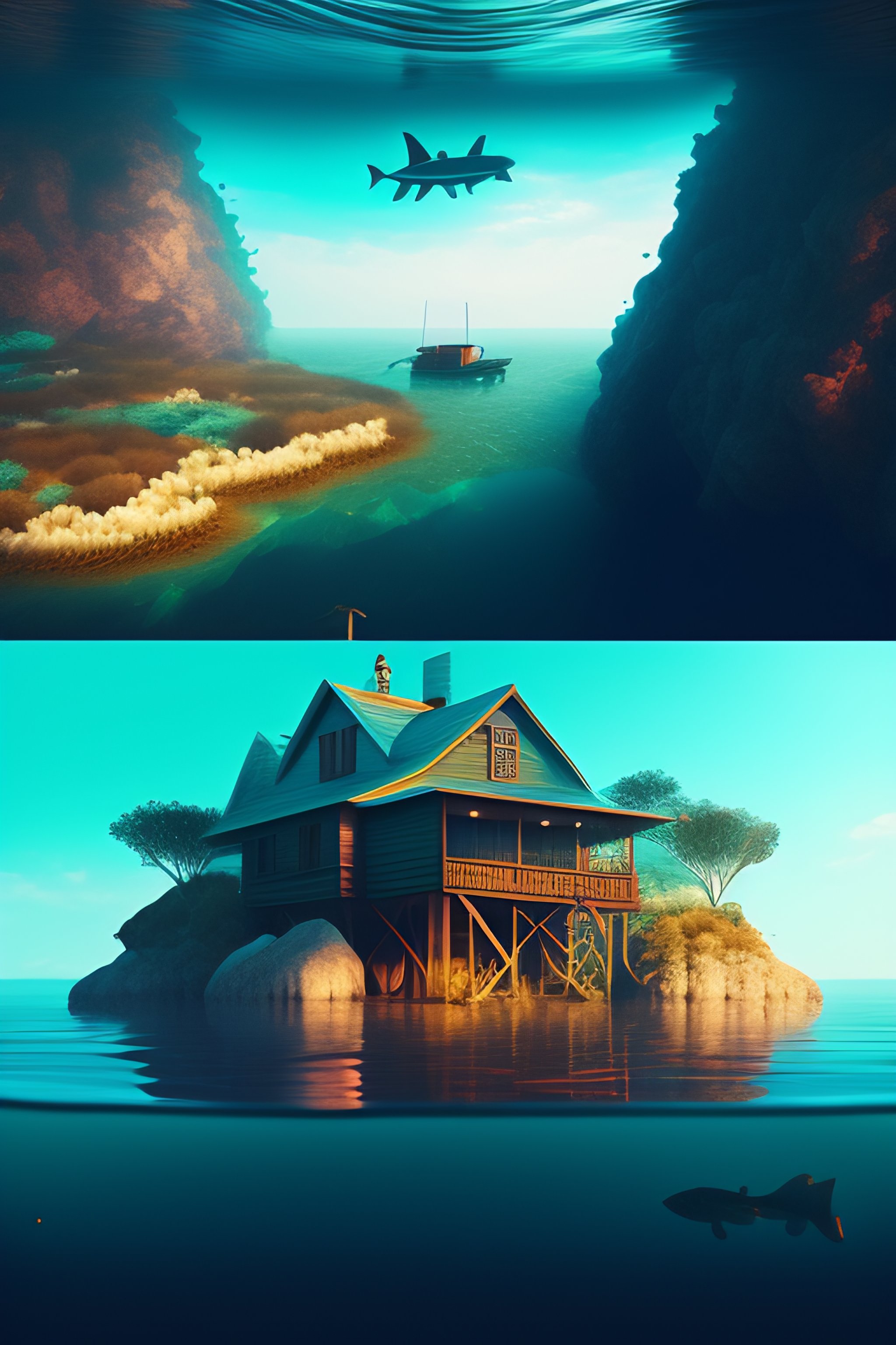 Whole villages submerged under the sea, story telling, historical, high detail, david rudnick detailed behance instagram underground 4k