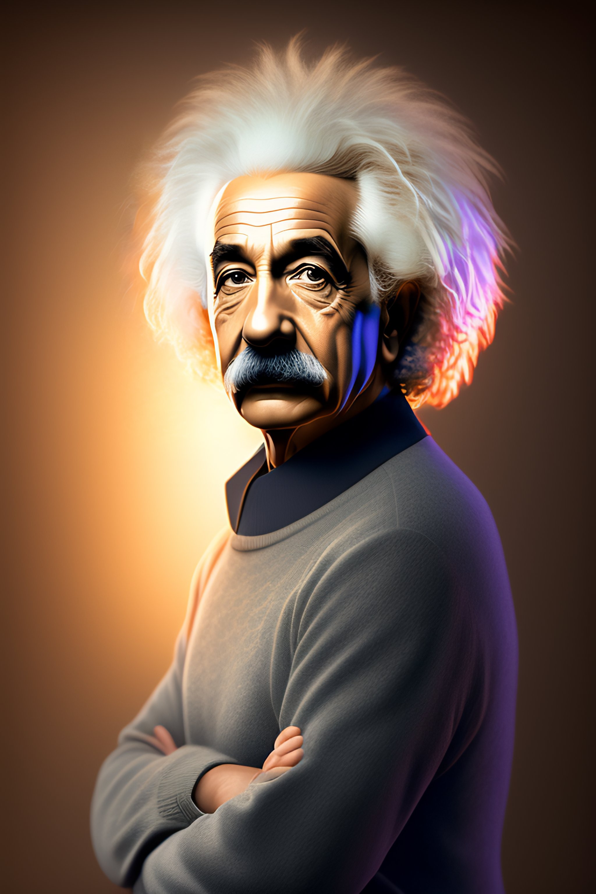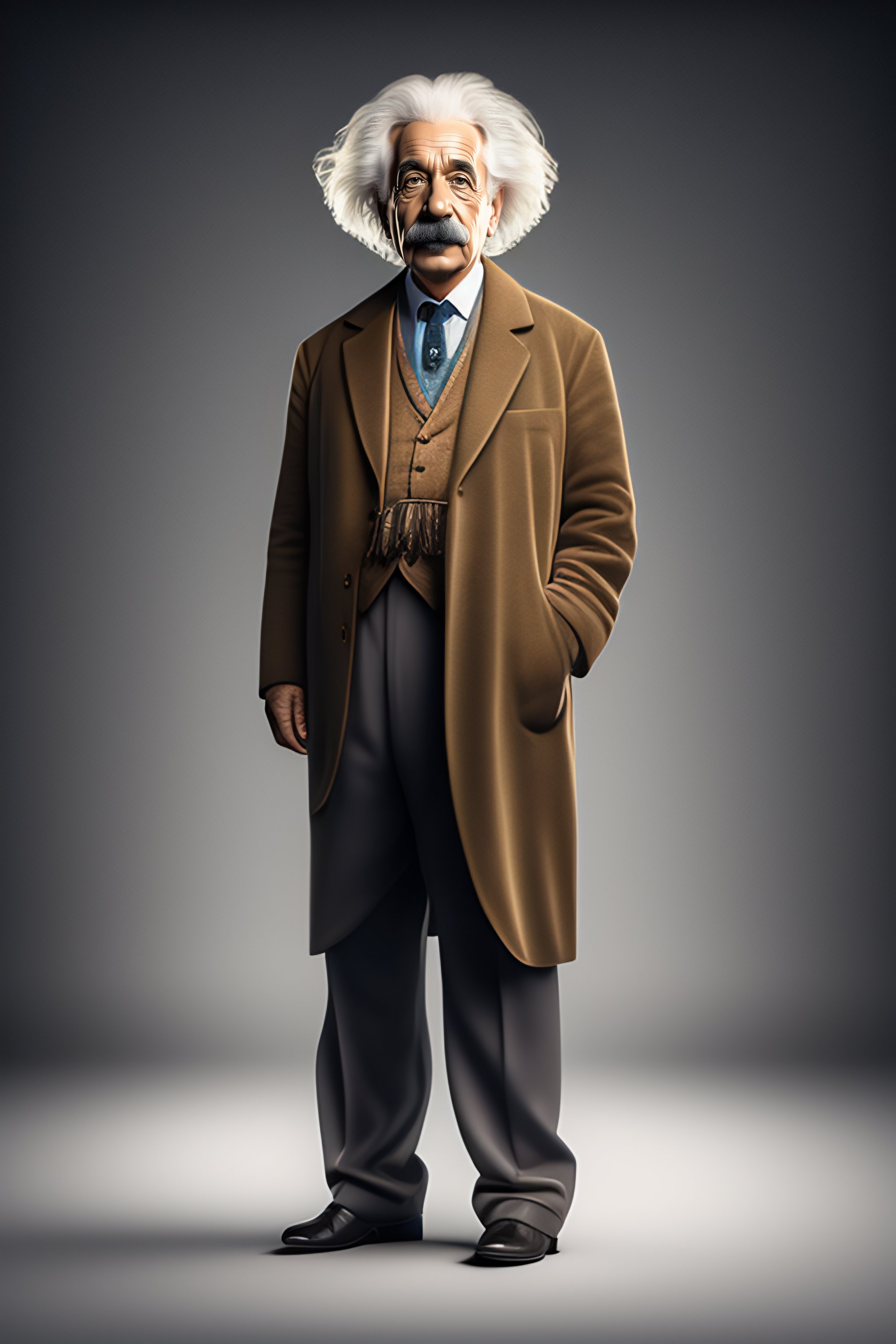 A realistic full body portrait of albert einstein, neutral background, moody, photorealistic, super detailed, hyper realistic, bright lights, 8 k